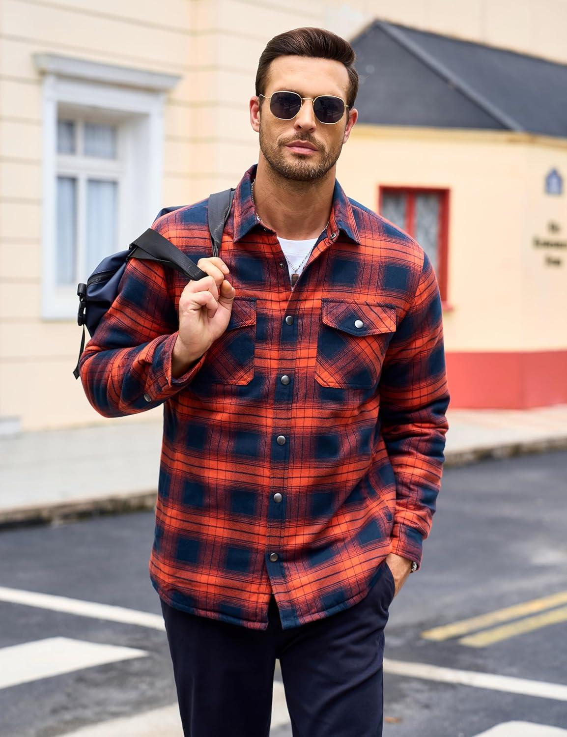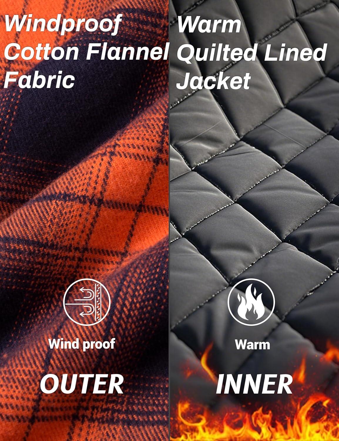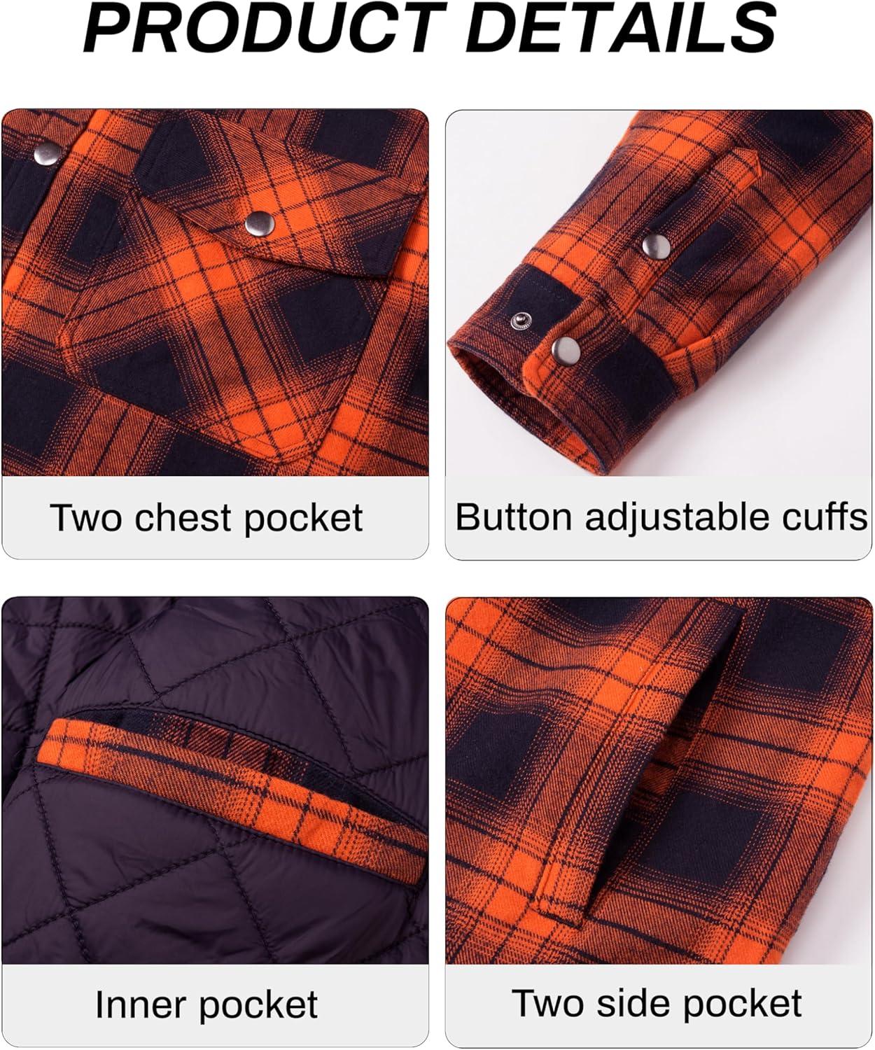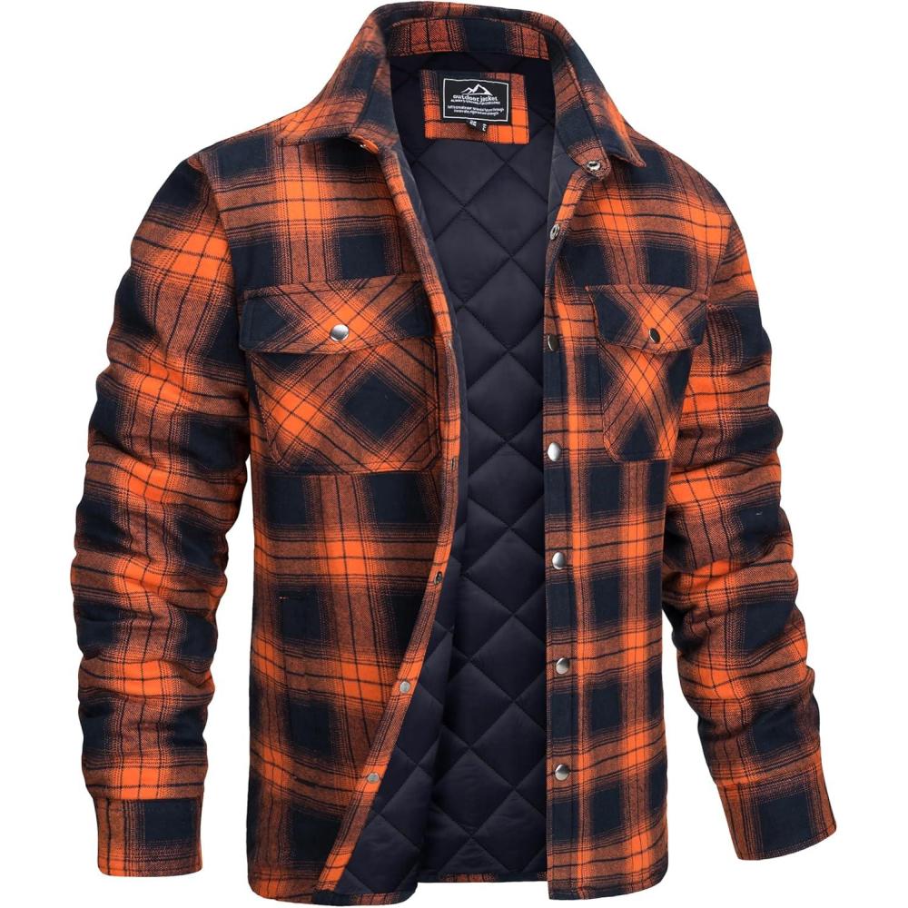 MAGCOMSEN Men’s Flannel Shirts Long Sleeve Quilted Lined Button Down Plaid Flannel Jacket Heavyweight Warm Winter Coat(Orange)