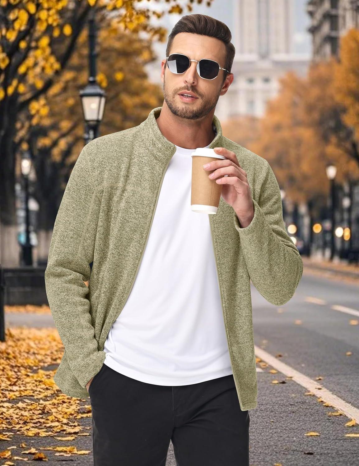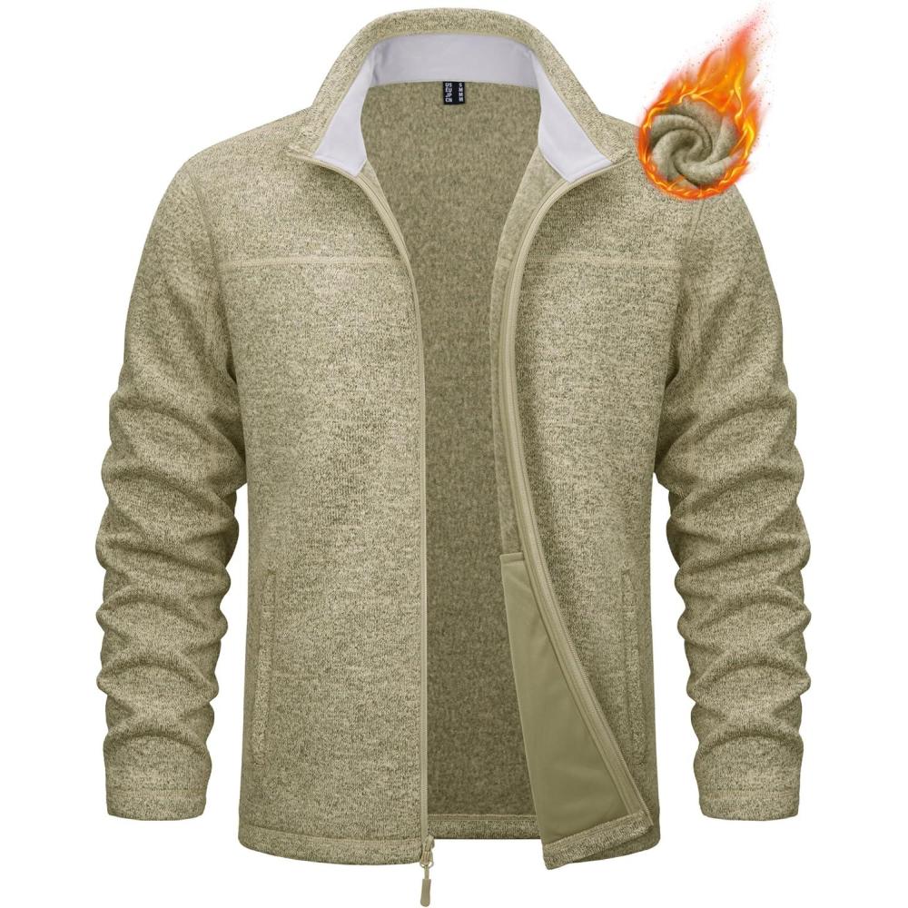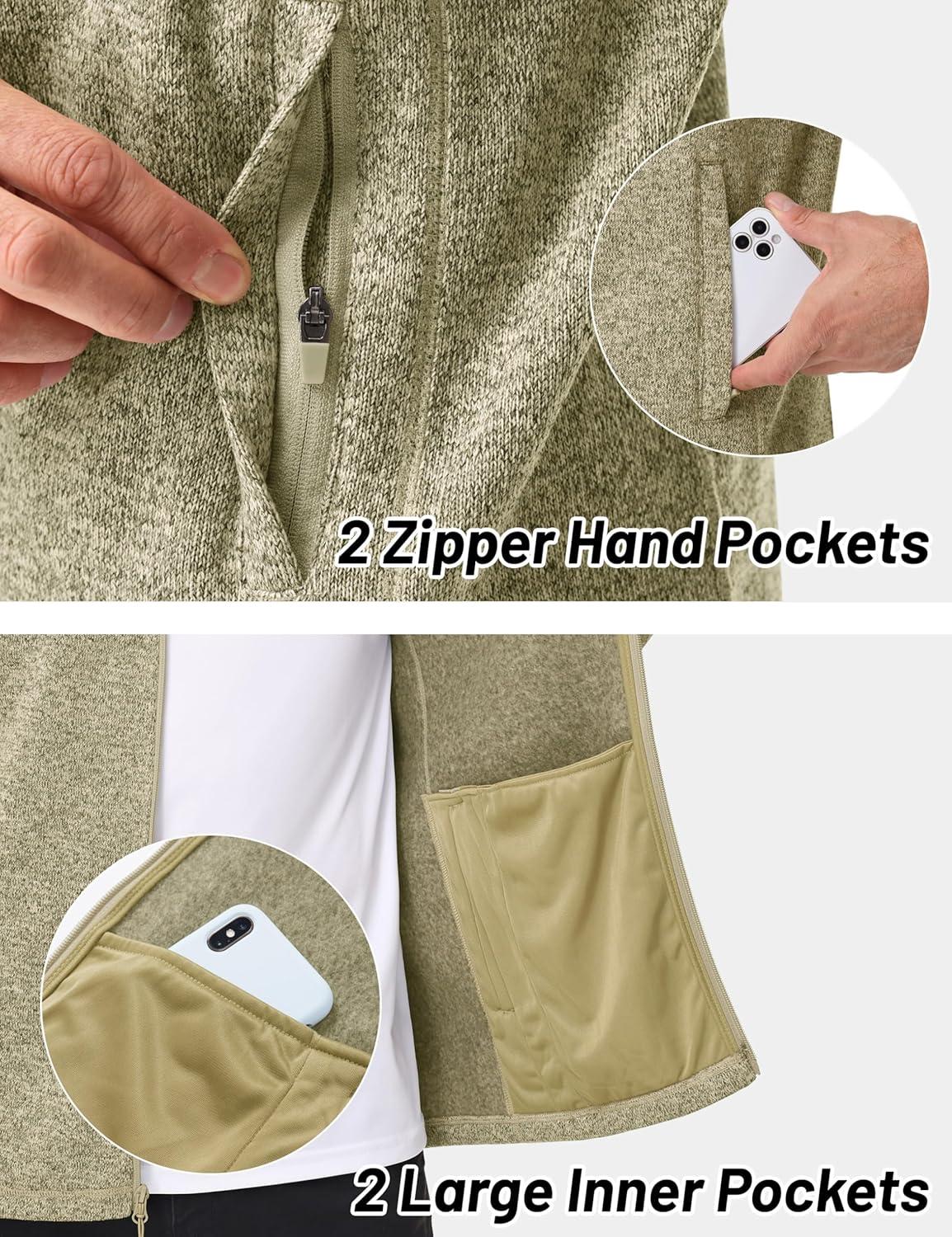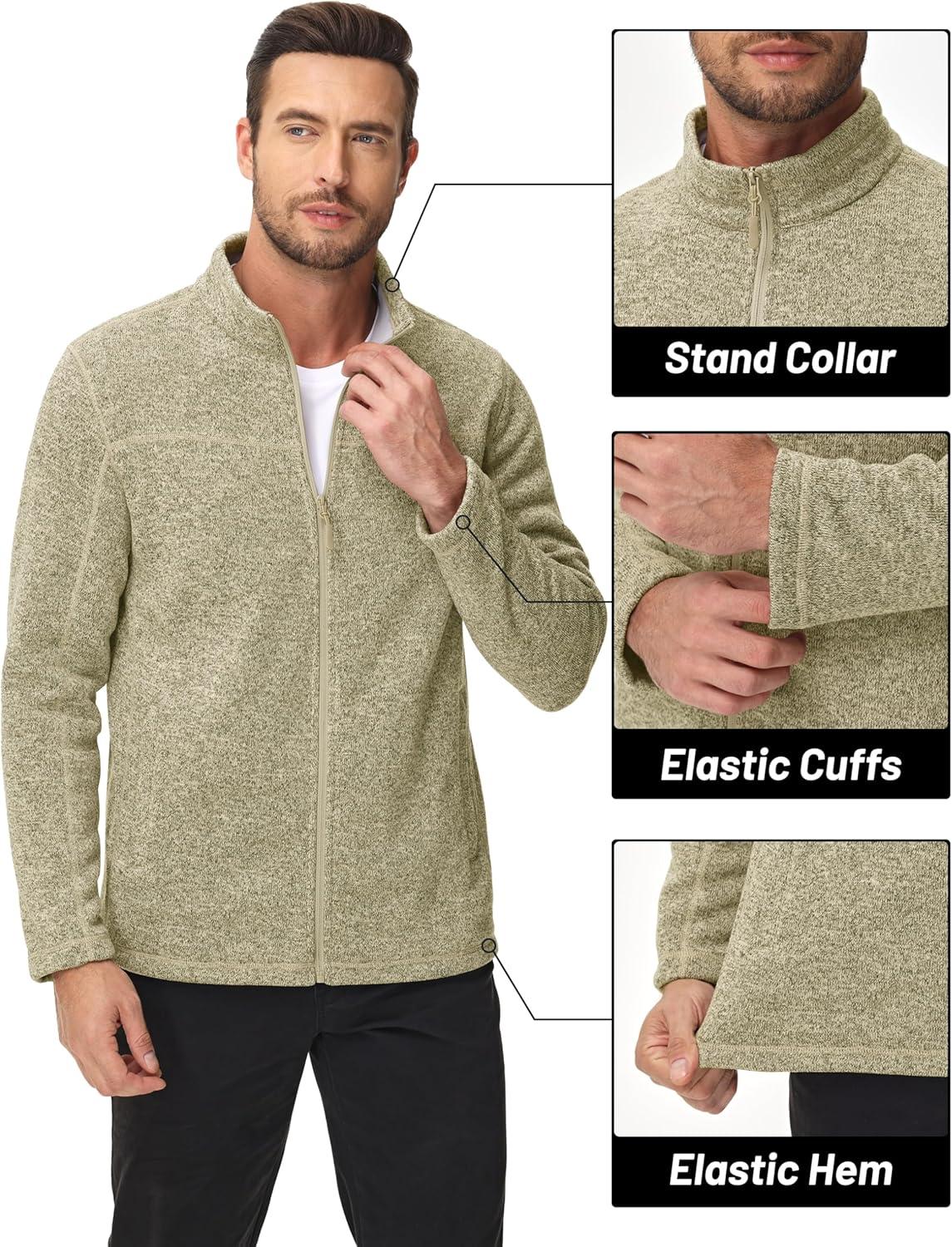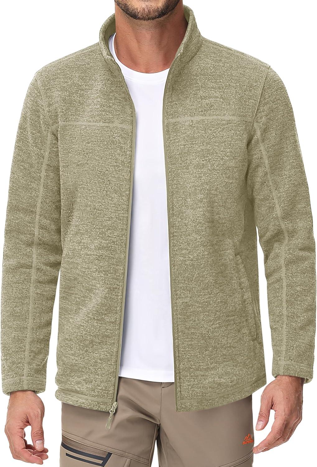 MAGCOMSEN Men’s Fleece Jacket Lightweight Full Zip Jackets Casual Soft Warm Winter Coats Zip Up Sweater with Pockets(Khaki Heather)