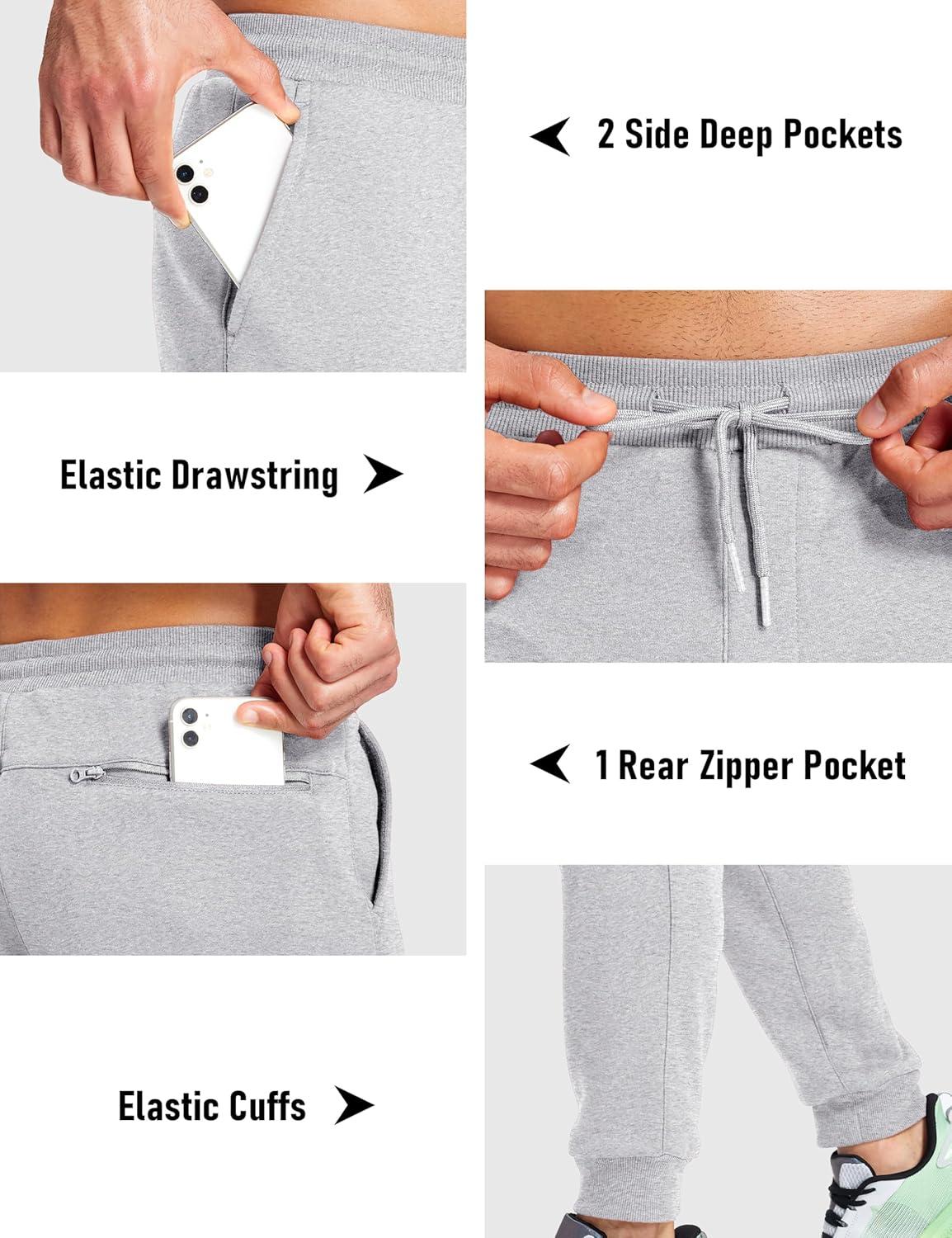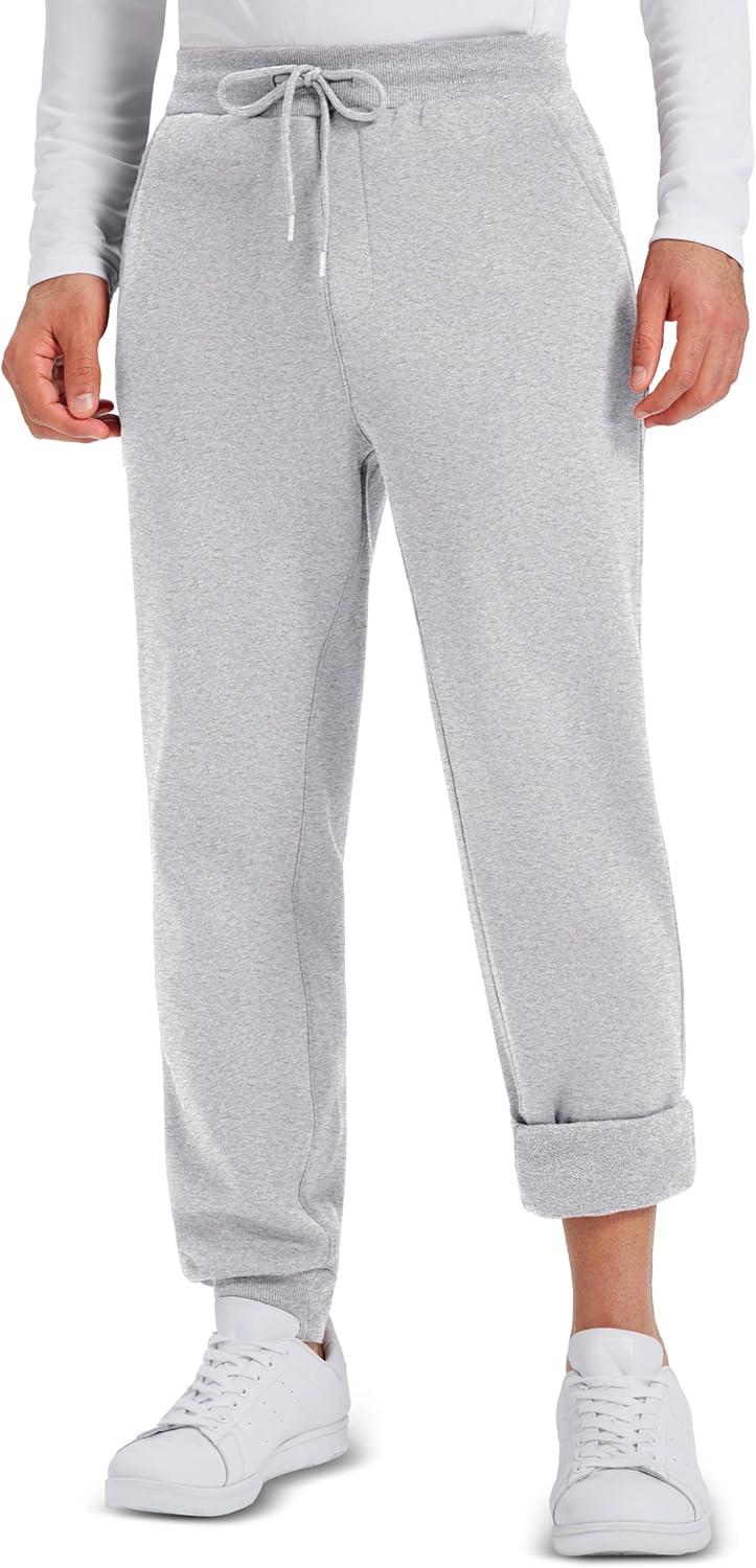 MAGCOMSEN Men’s Fleece Joggers Winter Thermal Warm Pants Thicken Fleece Lined Athletic Casual Sweatpants with 3 Pockets(Lightgrey)