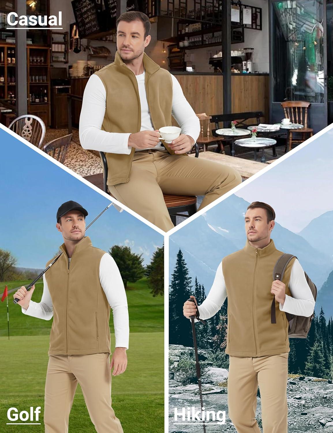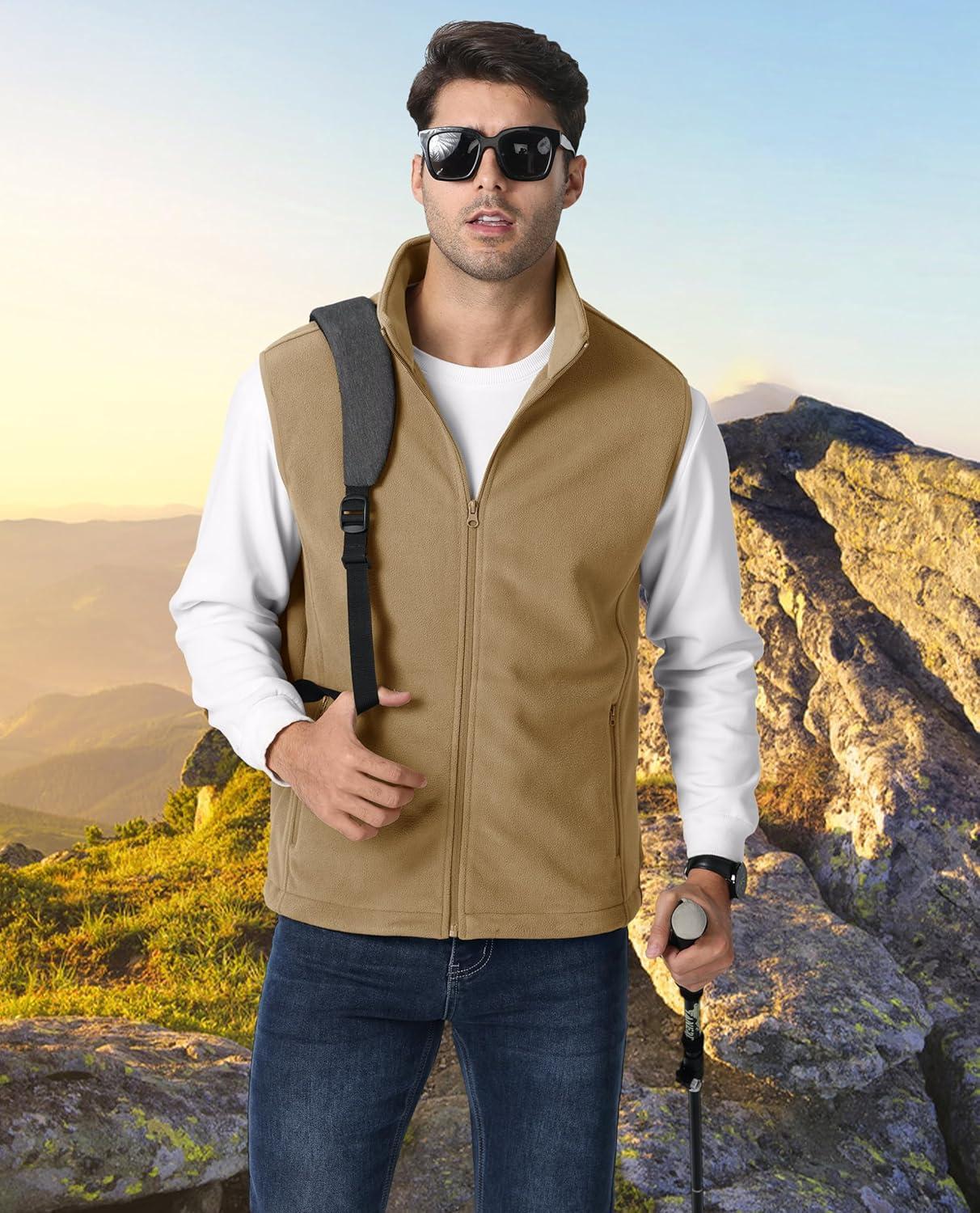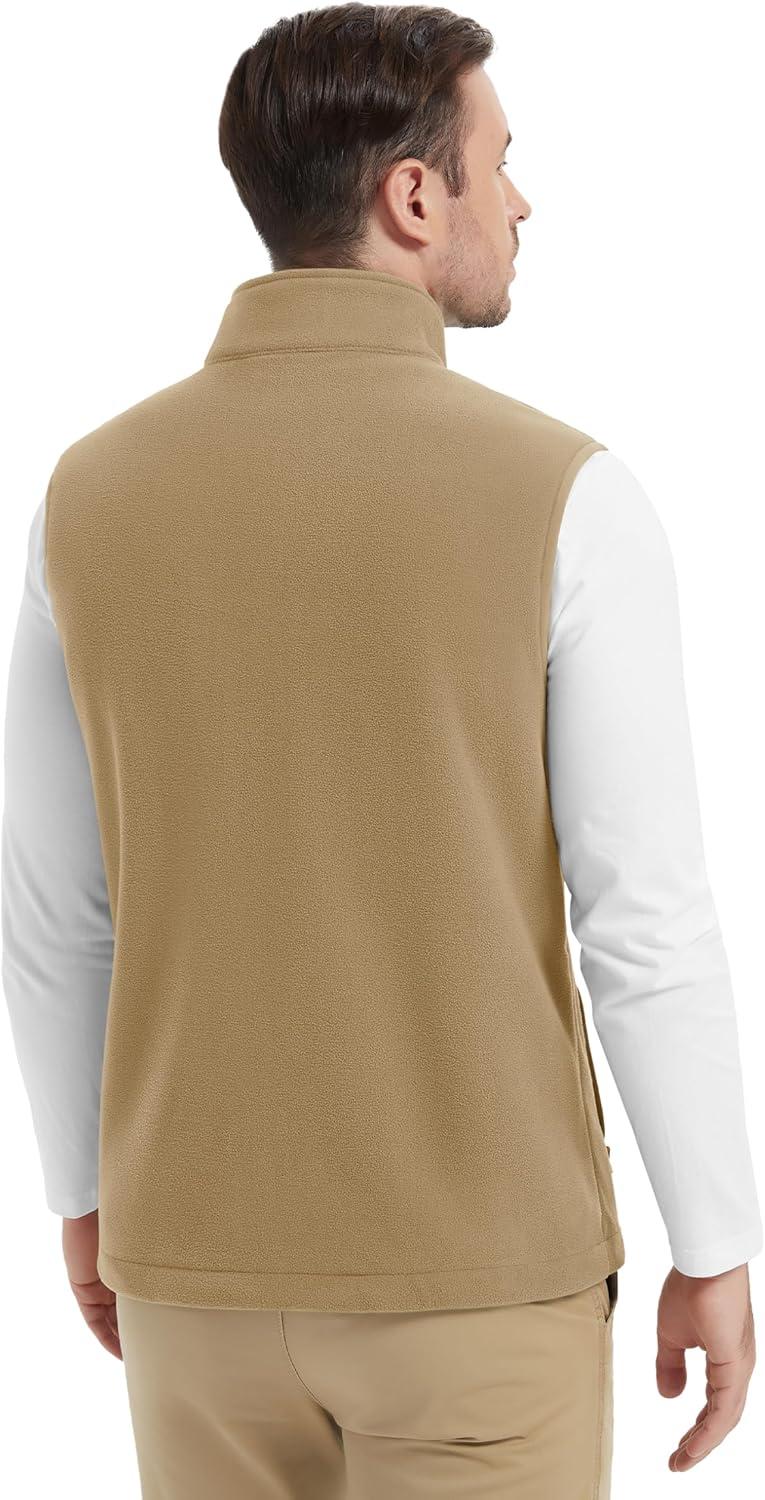 MAGCOMSEN Men’s Fleece Vest Lightweight Zip Up Winter Vests Outerwear Warm Polar Sleeveless Jacket with Pockets Casual Golf(Khaki)