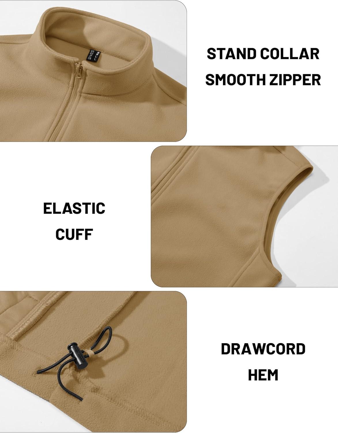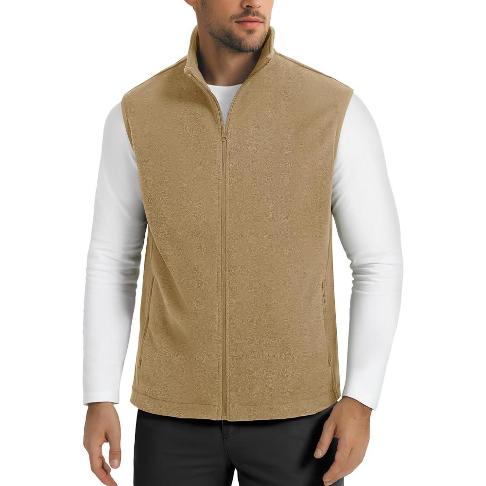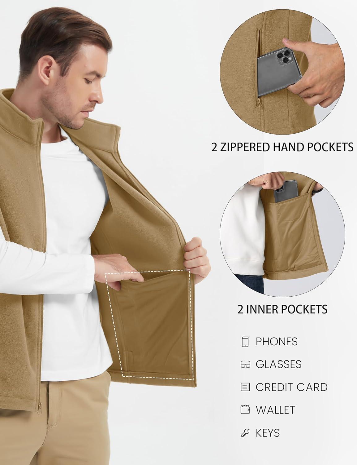 MAGCOMSEN Men’s Fleece Vest Lightweight Zip Up Winter Vests Outerwear Warm Polar Sleeveless Jacket with Pockets Casual Golf(Khaki)