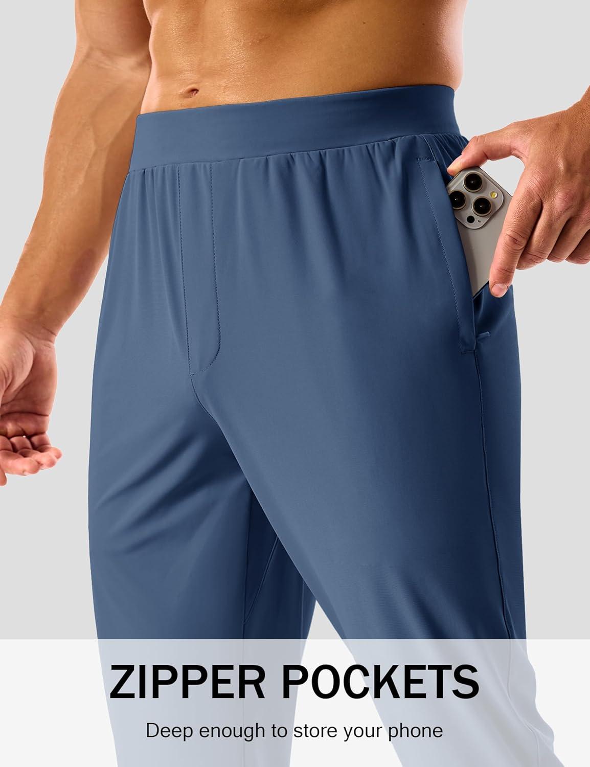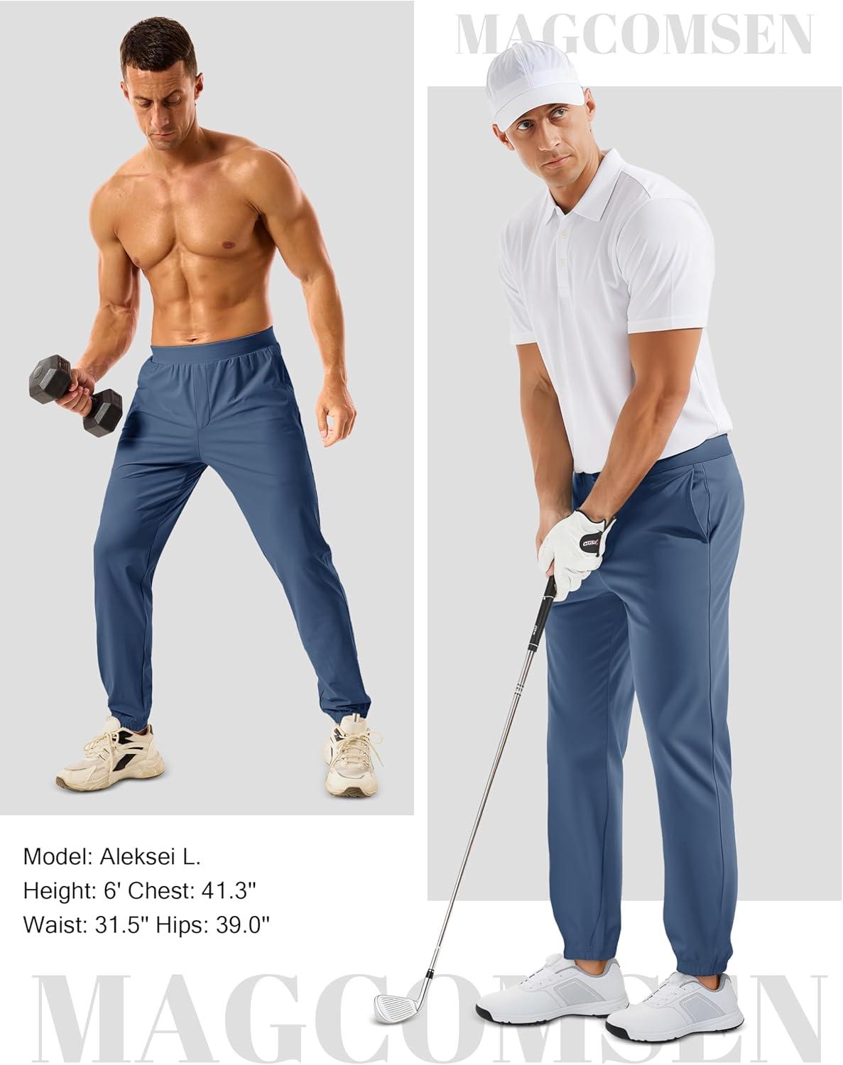 MAGCOMSEN Men’s Golf Pants Stretch Joggers with Zipper Pockets Work Casual Slack for Men(Blue Grey)
