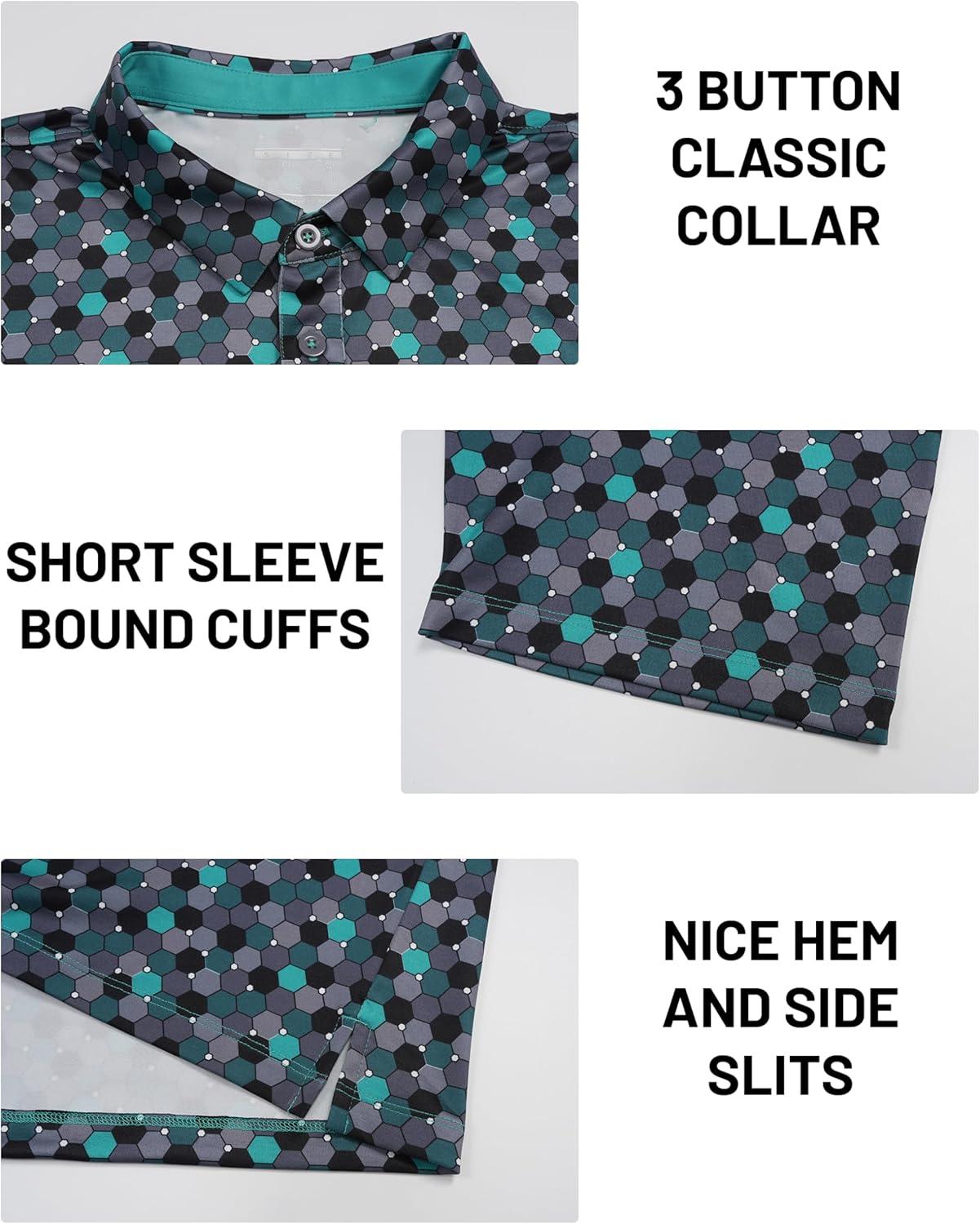 The men's polo shirt is designed for performance and style. Crafted from polyester and spandex, These golf shirts for men offer a soft, lightweight, stretch and comfort feel. As moisture wicking shirts for men with quick dry capabilities, they efficiently pull sweat away from your skin to maintain a cool, dry feel during any activity. Featuring a classic collar, three buttons' placket, and dual side slits, these short sleeve polo shirts offer a modern silhouette with enhanced mobility. Available in various colors and fashionable prints, they serve as versatile collared shirts for men that effortlessly blend style with functionality.Ideal as performance polo shirts for men, they excel in diverse settings including golf, tennis, hiking, camping, travel, commuting, and business casual environments. Whether you need a reliable work shirt, a comfortable summer shirt, or as sharp dress polo shirts for men, this men's polo adapts seamlessly to sports, professional, and social occasions, making it an essential addition to your casual shirts collection.