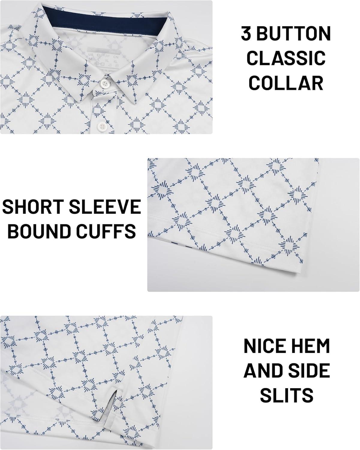 The men's polo shirt is designed for performance and style. Crafted from polyester and spandex, These golf shirts for men offer a soft, lightweight, stretch and comfort feel. As moisture wicking shirts for men with quick dry capabilities, they efficiently pull sweat away from your skin to maintain a cool, dry feel during any activity. Featuring a classic collar, three buttons' placket, and dual side slits, these short sleeve polo shirts offer a modern silhouette with enhanced mobility. Available in various colors and fashionable prints, they serve as versatile collared shirts for men that effortlessly blend style with functionality.Ideal as performance polo shirts for men, they excel in diverse settings including golf, tennis, hiking, camping, travel, commuting, and business casual environments. Whether you need a reliable work shirt, a comfortable summer shirt, or as sharp dress polo shirts for men, this men's polo adapts seamlessly to sports, professional, and social occasions, making it an essential addition to your casual shirts collection.
