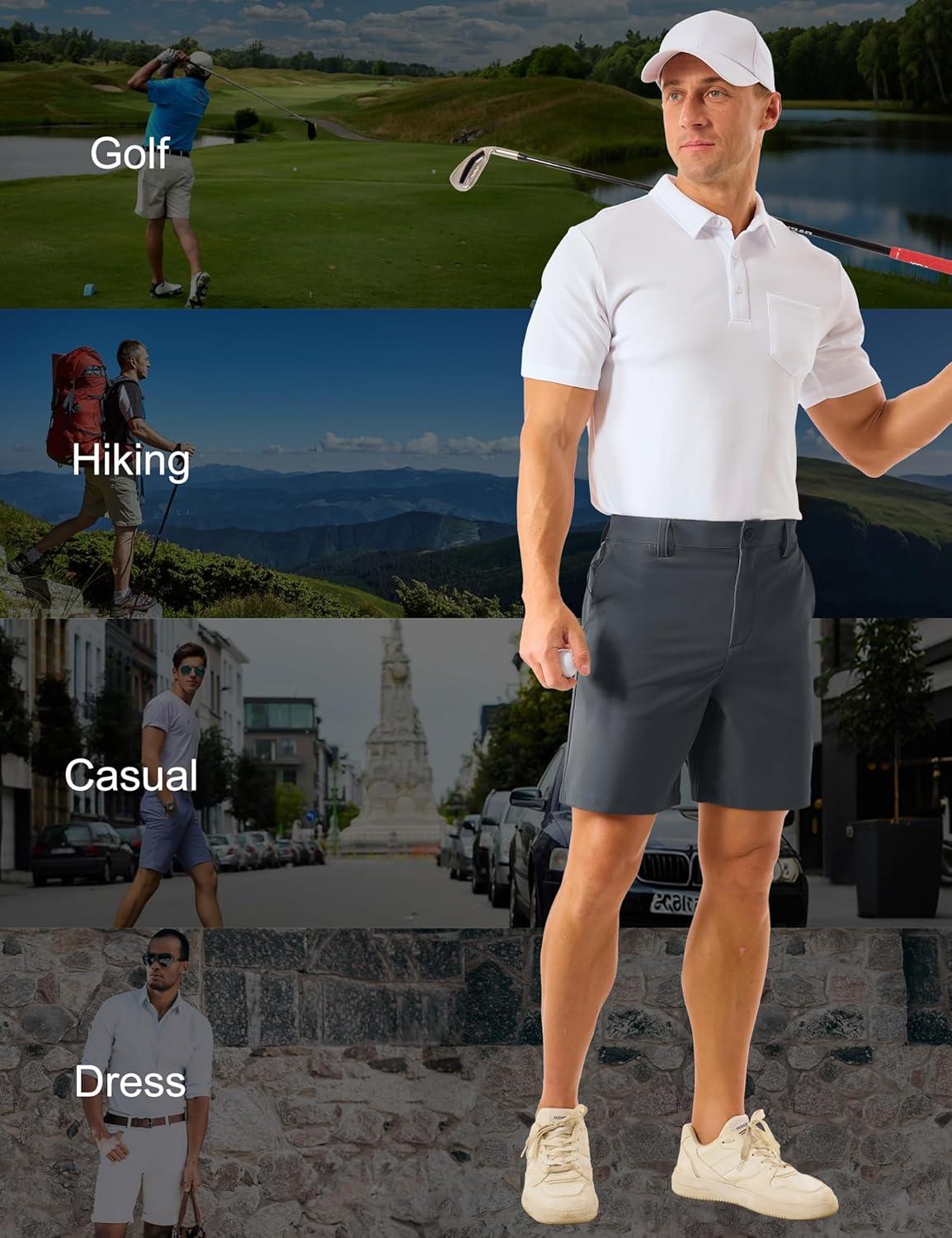 MAGCOMSEN Men’s Golf Shorts 7″ Quick Dry Lightweight Stretch Casual Shorts with 6 Pockets Dress Work Hiking(Dark Grey)