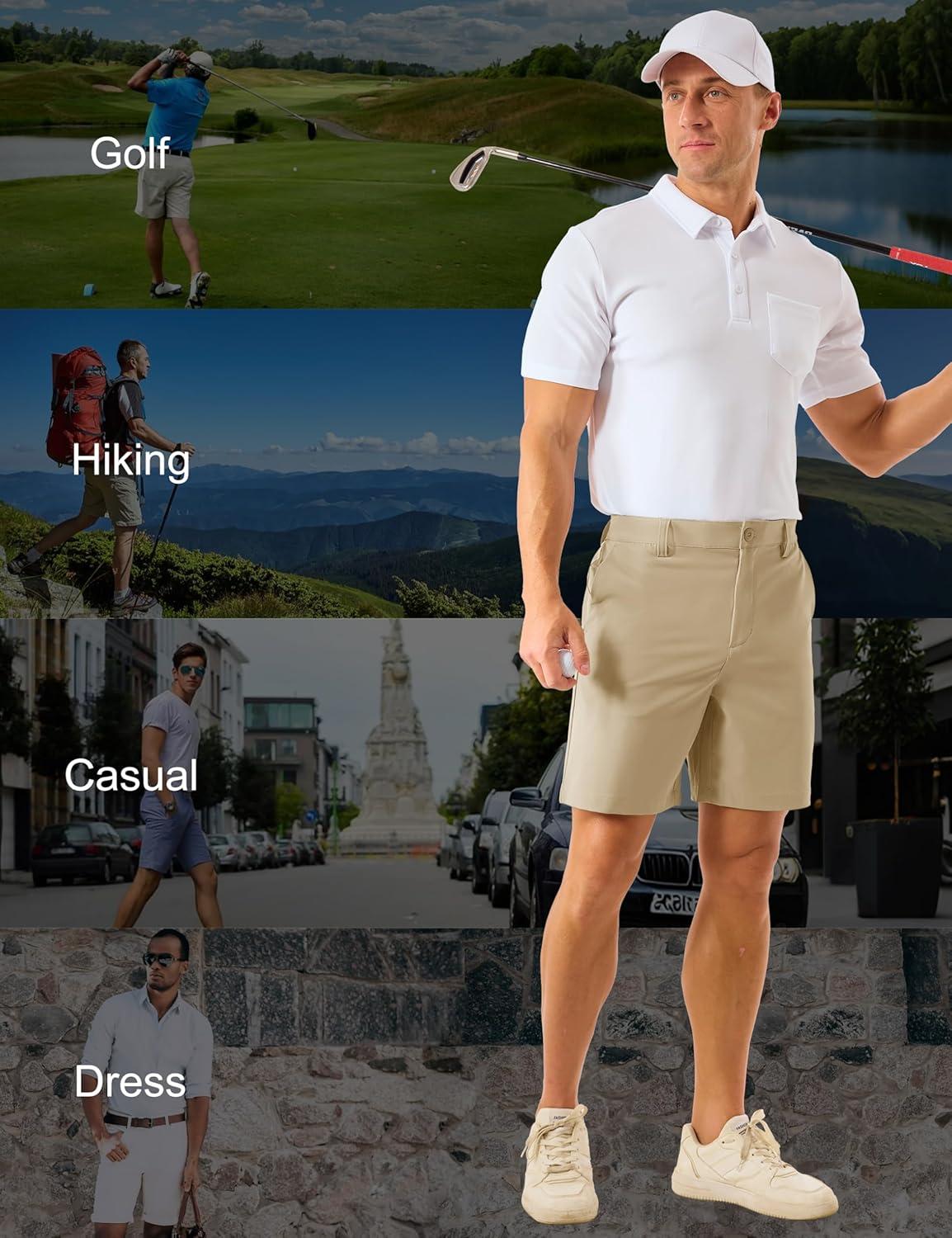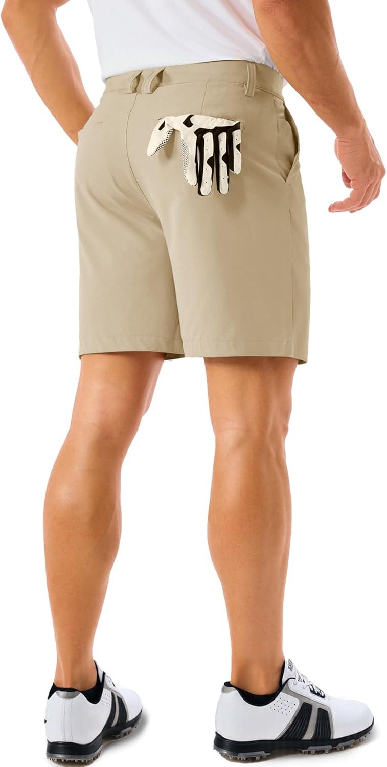MAGCOMSEN Men’s Golf Shorts 7″ Quick Dry Lightweight Stretch Casual Shorts with 6 Pockets Dress Work Hiking(Khaki)
