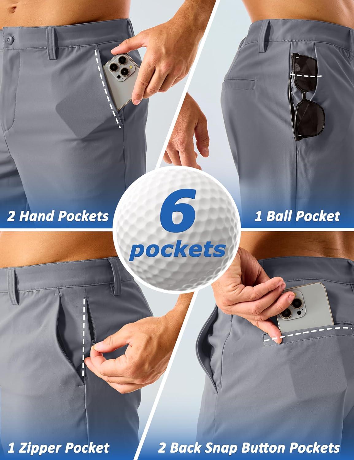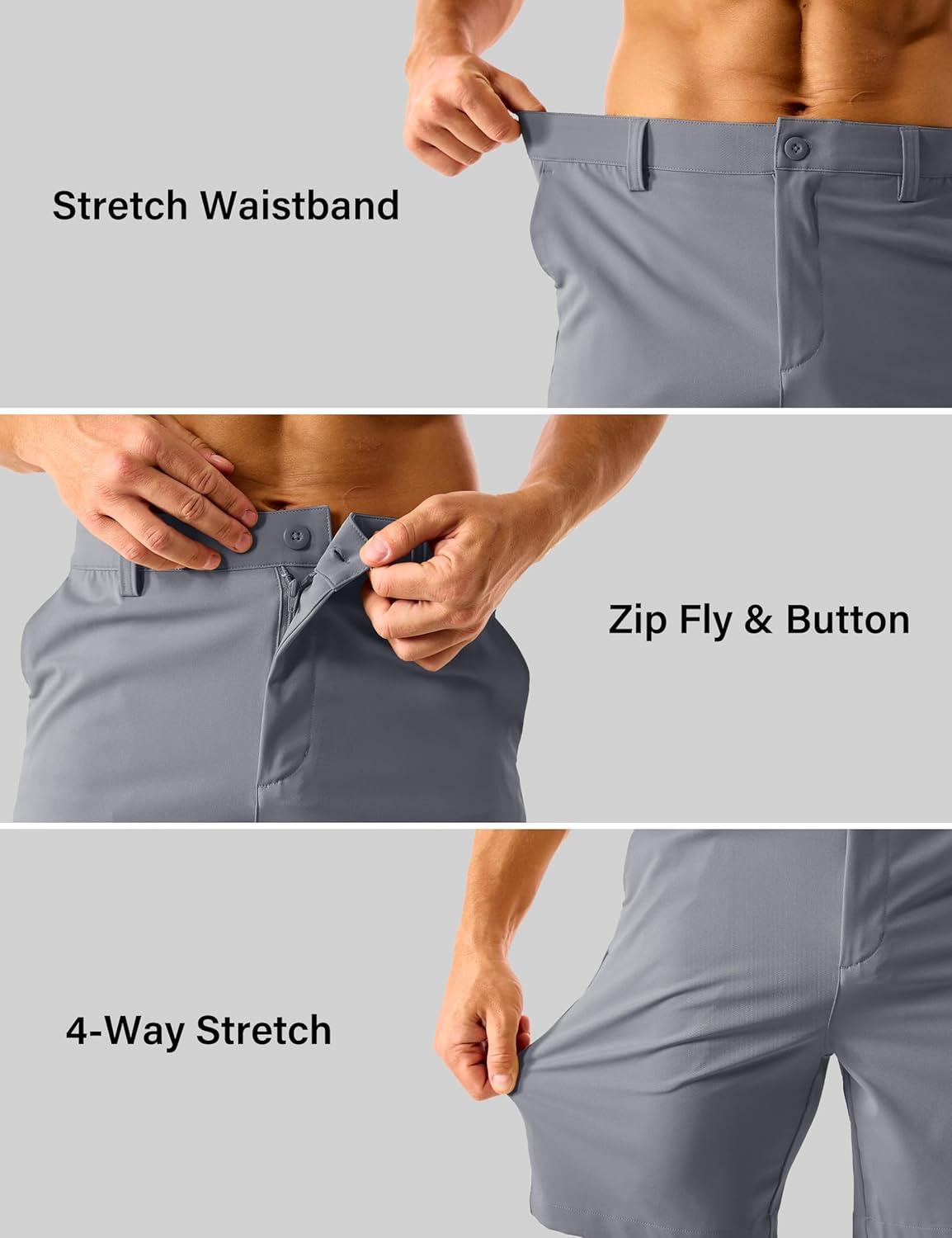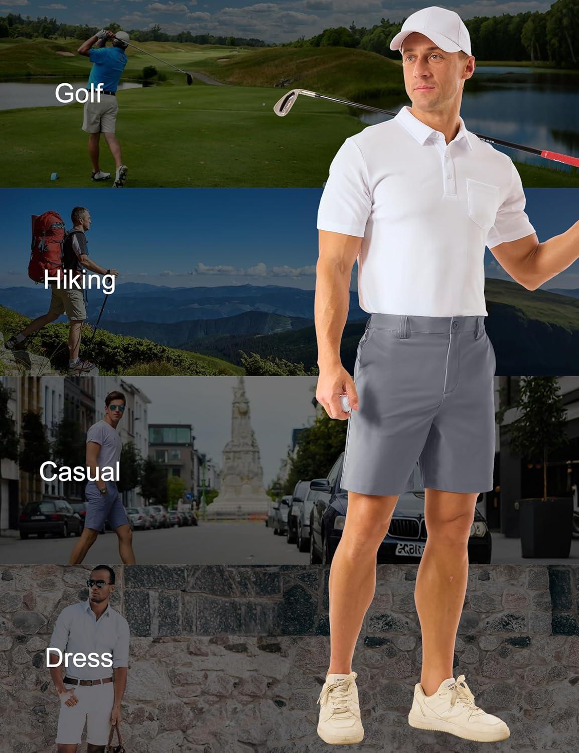 MAGCOMSEN Men’s Golf Shorts 7″ Quick Dry Lightweight Stretch Casual Shorts with 6 Pockets Dress Work Hiking(Light Grey)
