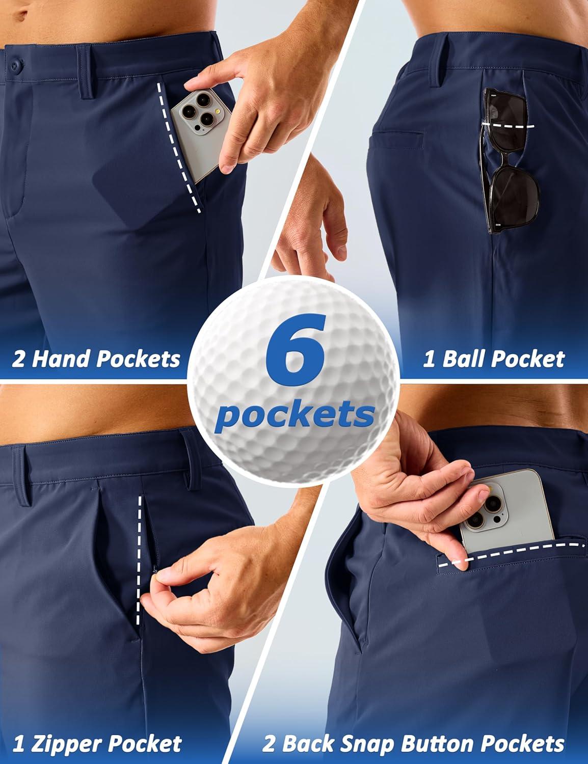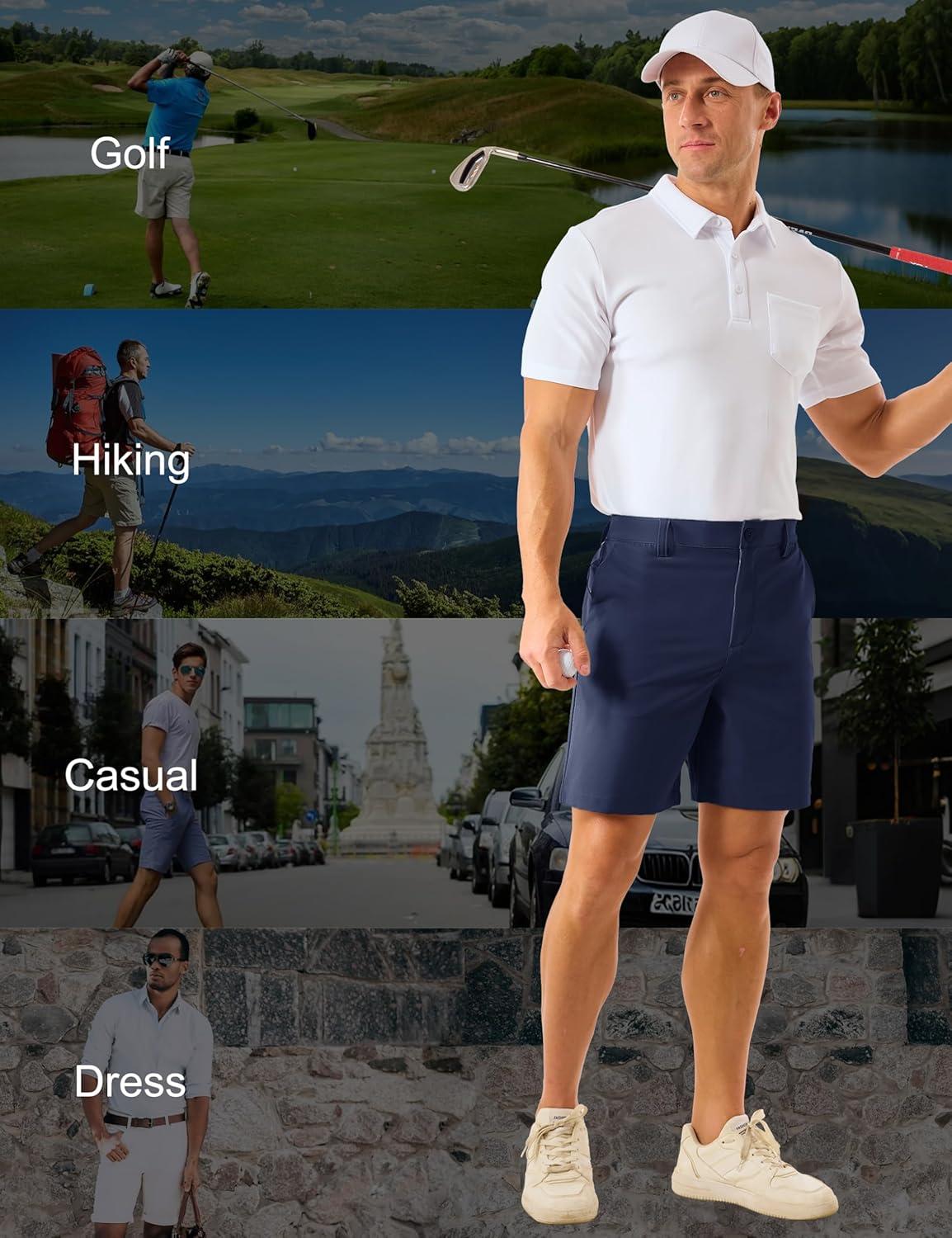 MAGCOMSEN Men’s Golf Shorts 7″ Quick Dry Lightweight Stretch Casual Shorts with 6 Pockets Dress Work Hiking(Navy)