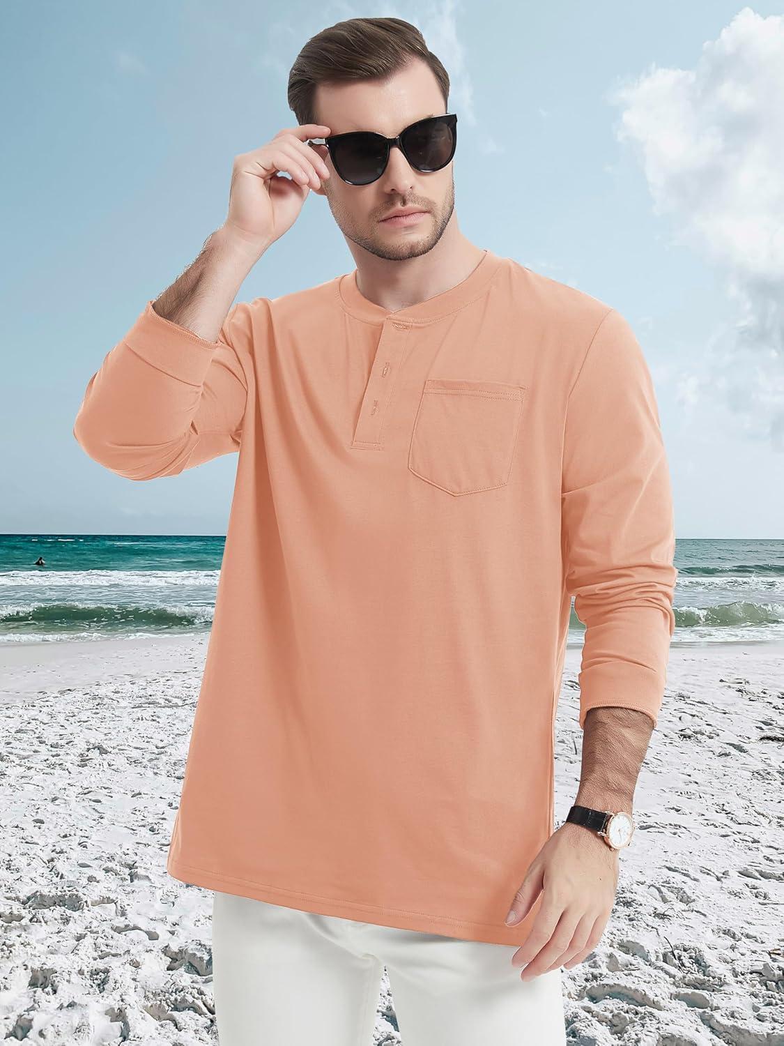MAGCOMSEN Men’s Henley Long Sleeve Shirt Cotton Lightweight Tee Shirts Casual Basic Tees with Pocket(Apricot)
