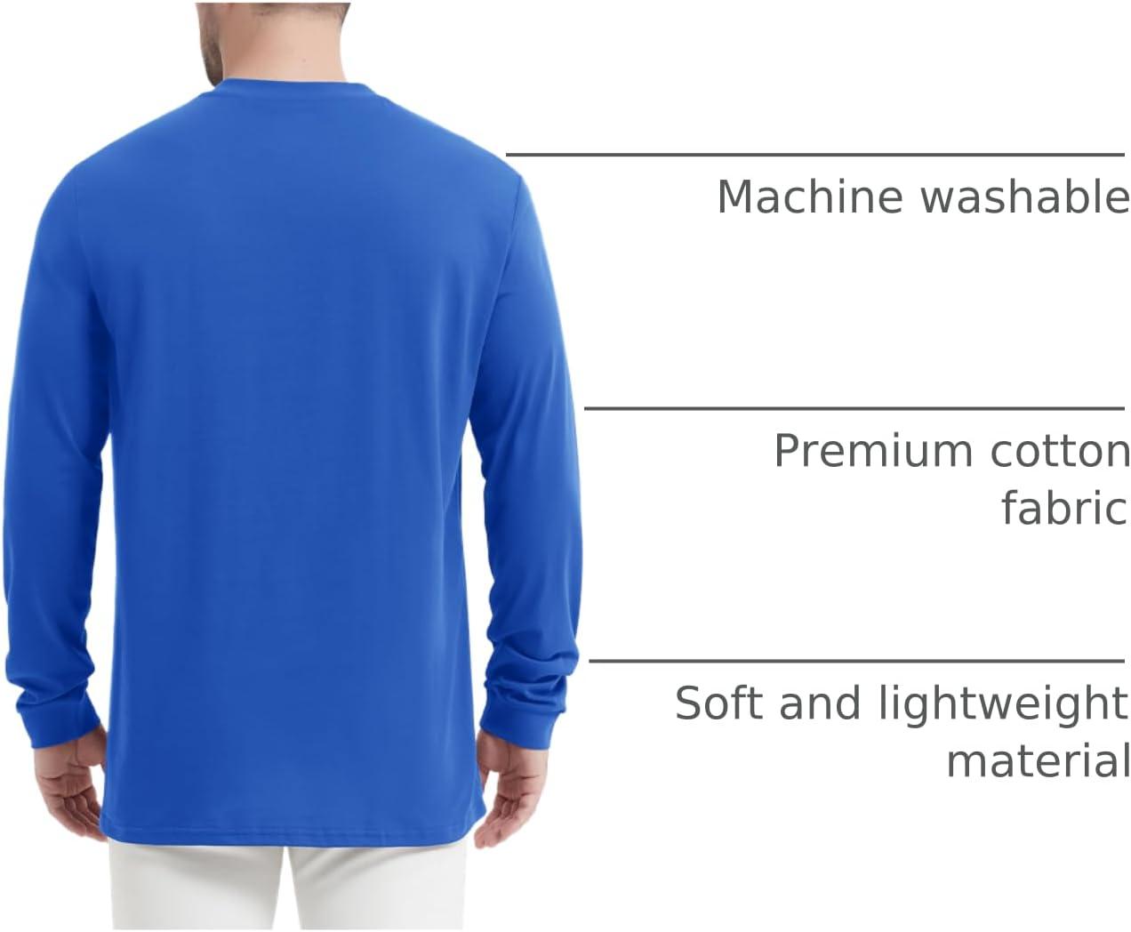 MAGCOMSEN Men’s Henley Long Sleeve Shirt Cotton Lightweight Tee Shirts Casual Basic Tees with Pocket(Cloor Blue)