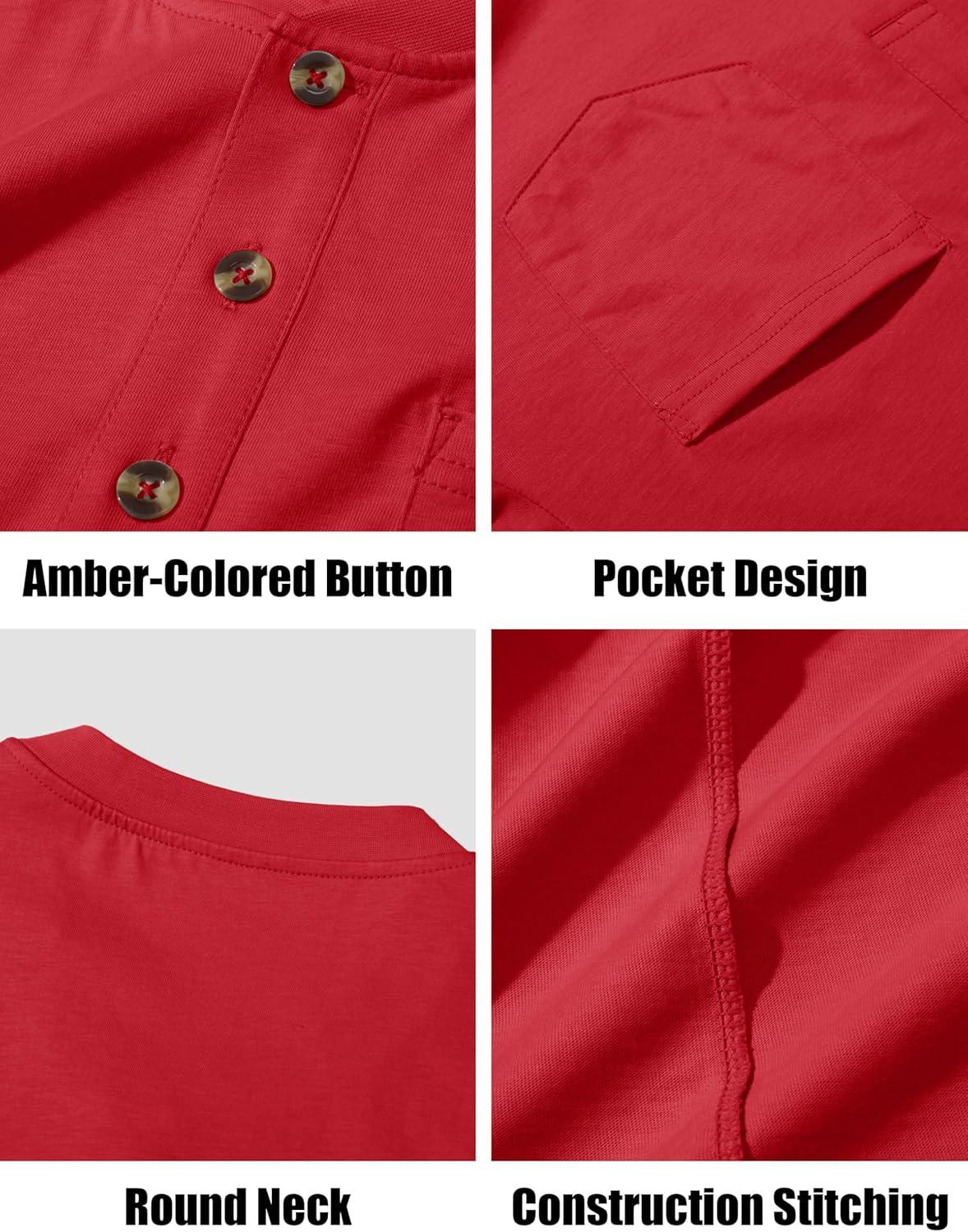 MAGCOMSEN Men’s Henley Long Sleeve Shirt Cotton Lightweight Tee Shirts Casual Basic Tees with Pocket(Tomato Red)