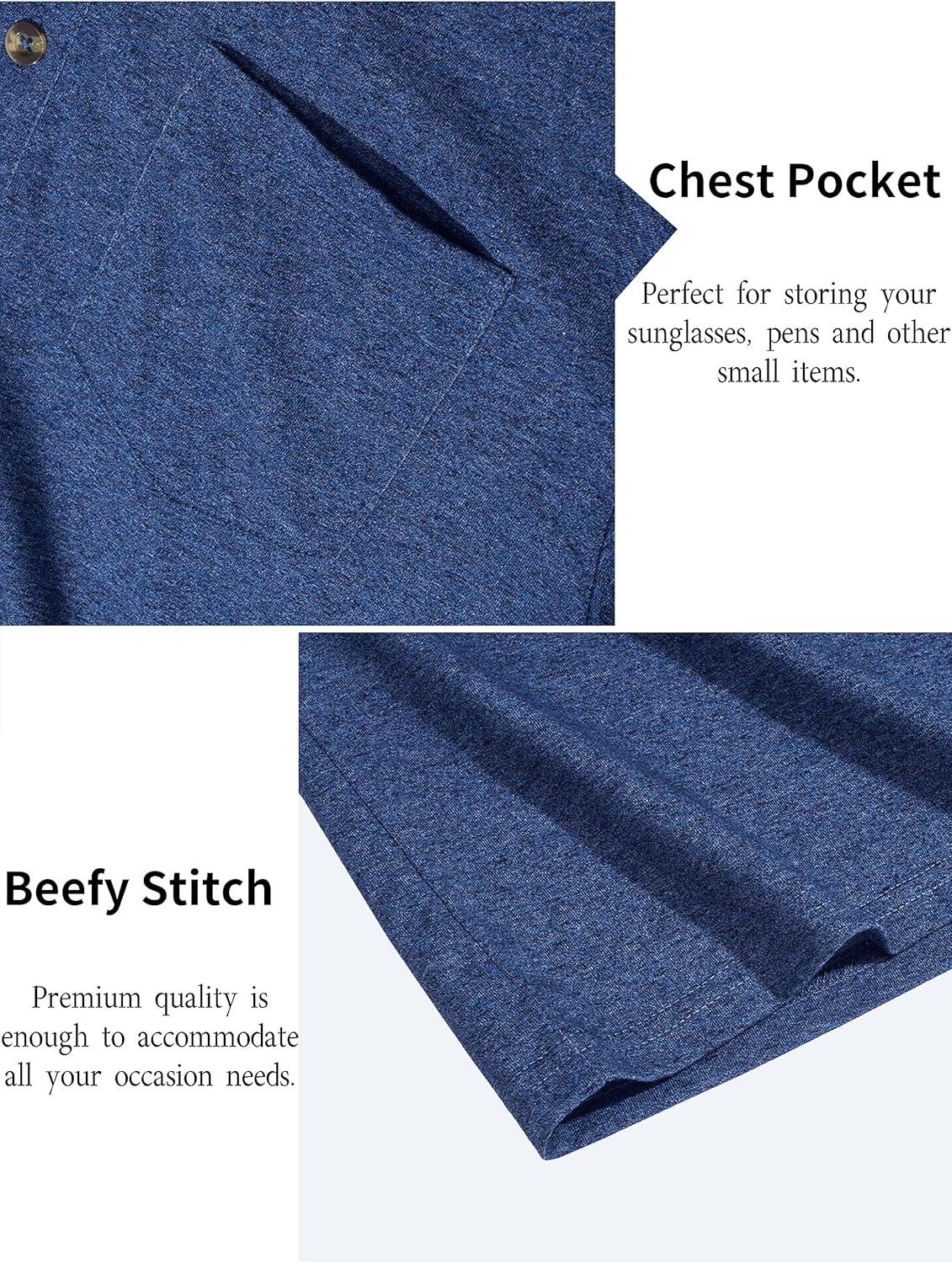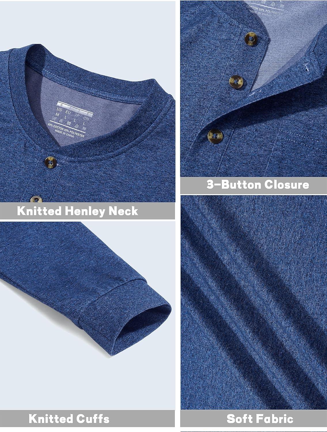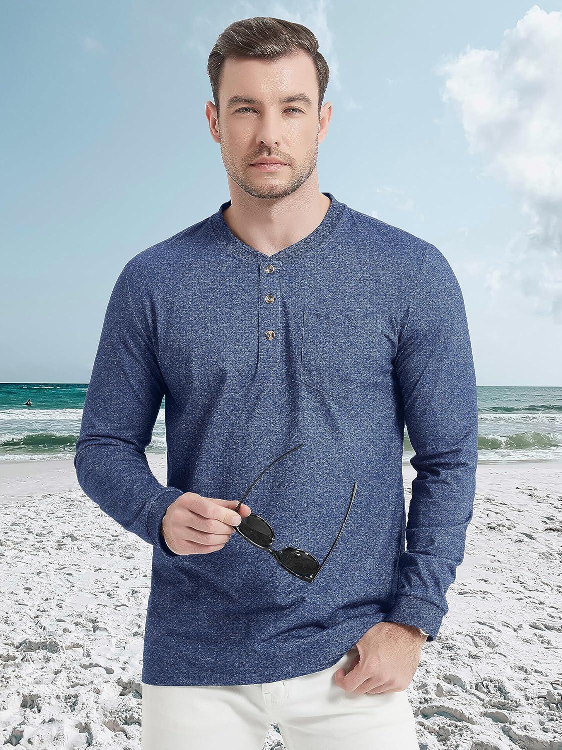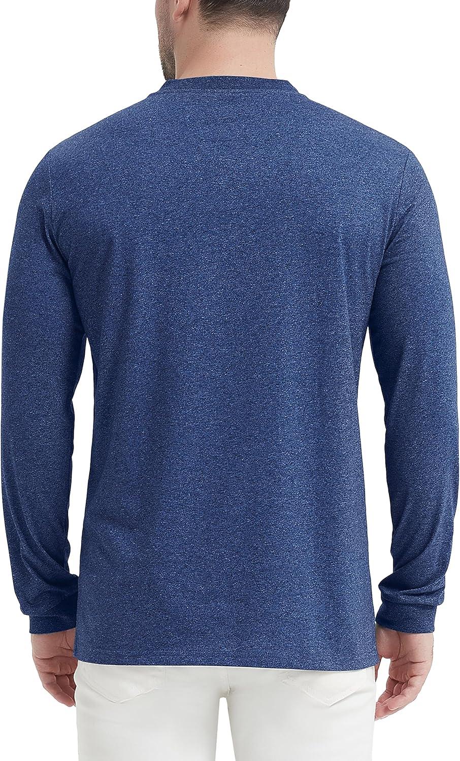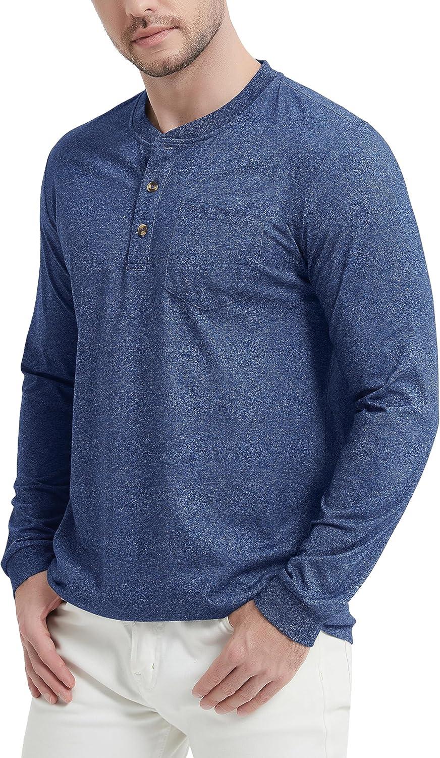 MAGCOMSEN Men’s Henley Shirt Long Sleeve Cotton Casual Shirts with Pocket Button Placket Daily Wear(Dark Blue)
