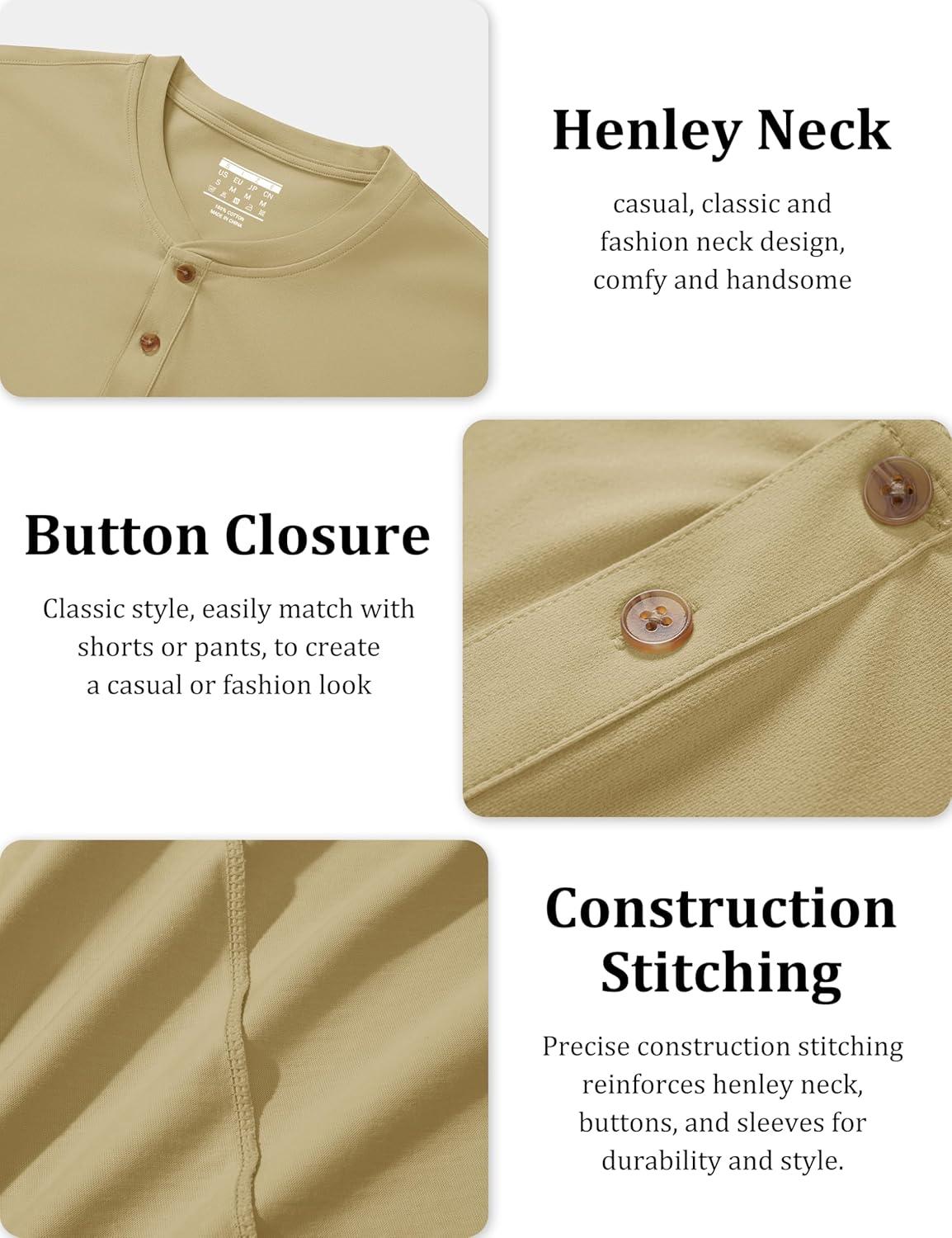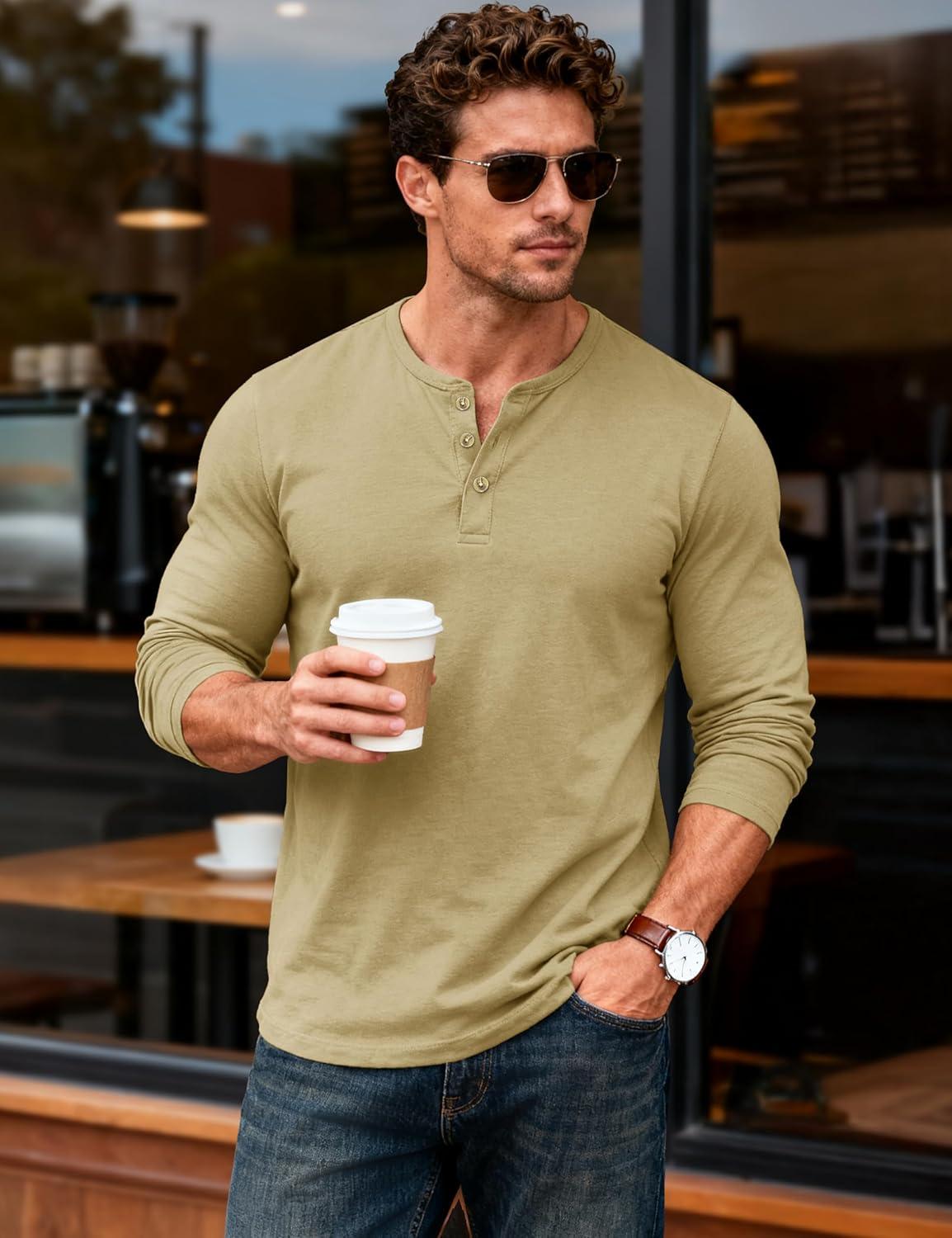 MAGCOMSEN Men’s Henley Shirts Long Sleeve Button Shirts Moisture Wicking Tees Casual Basic Solid Pullover Shirt(Khaki)