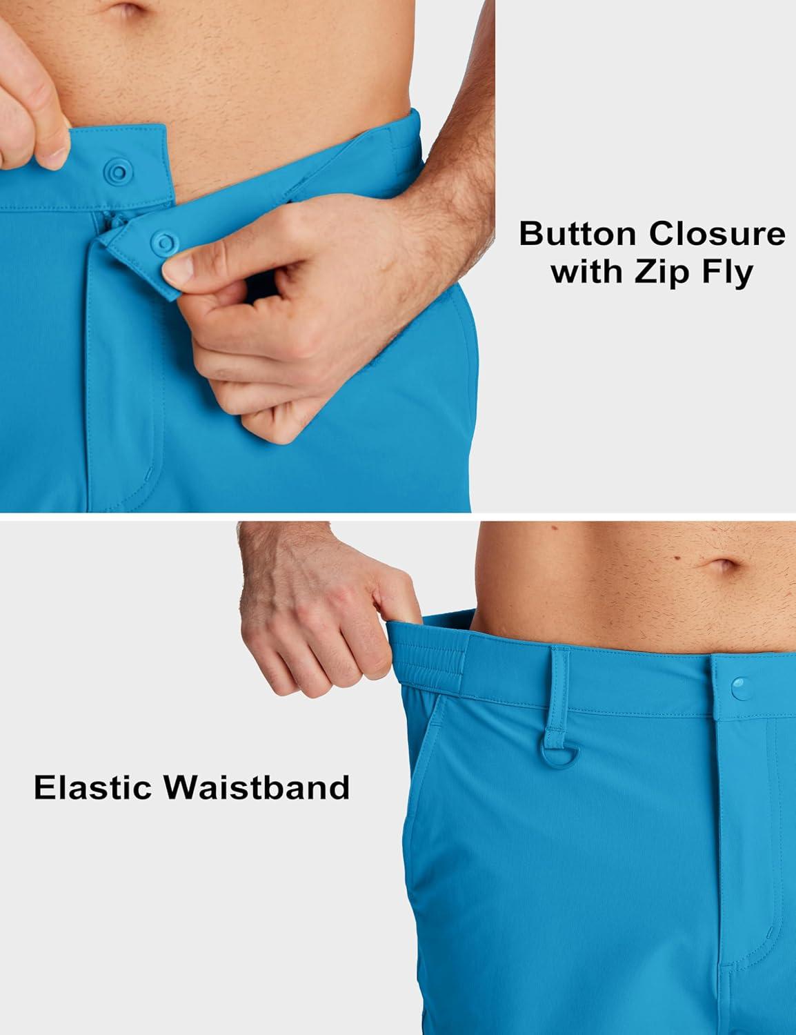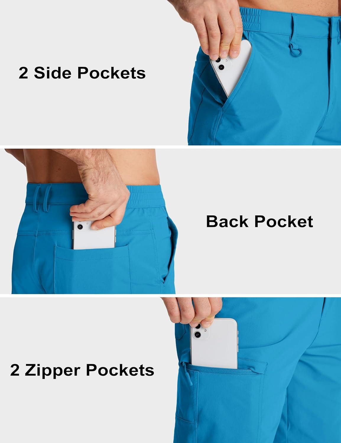 MAGCOMSEN Men’s Hiking Cargo Shorts Quick Dry Lightweight 9″ Golf Shorts Summer Casual Work Outdoor with 5 Zipper Pockets(Ice Blue)