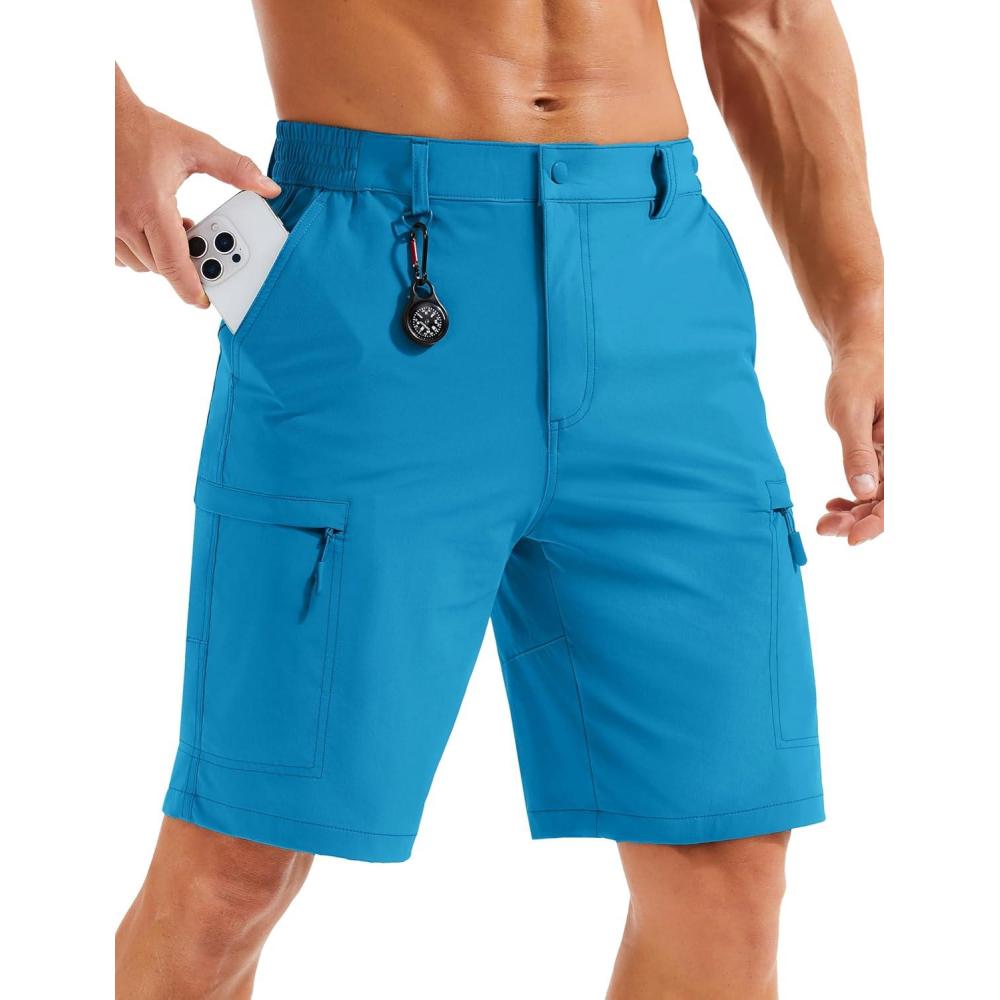 MAGCOMSEN Men’s Hiking Cargo Shorts Quick Dry Lightweight 9″ Golf Shorts Summer Casual Work Outdoor with 5 Zipper Pockets(Lake Blue)