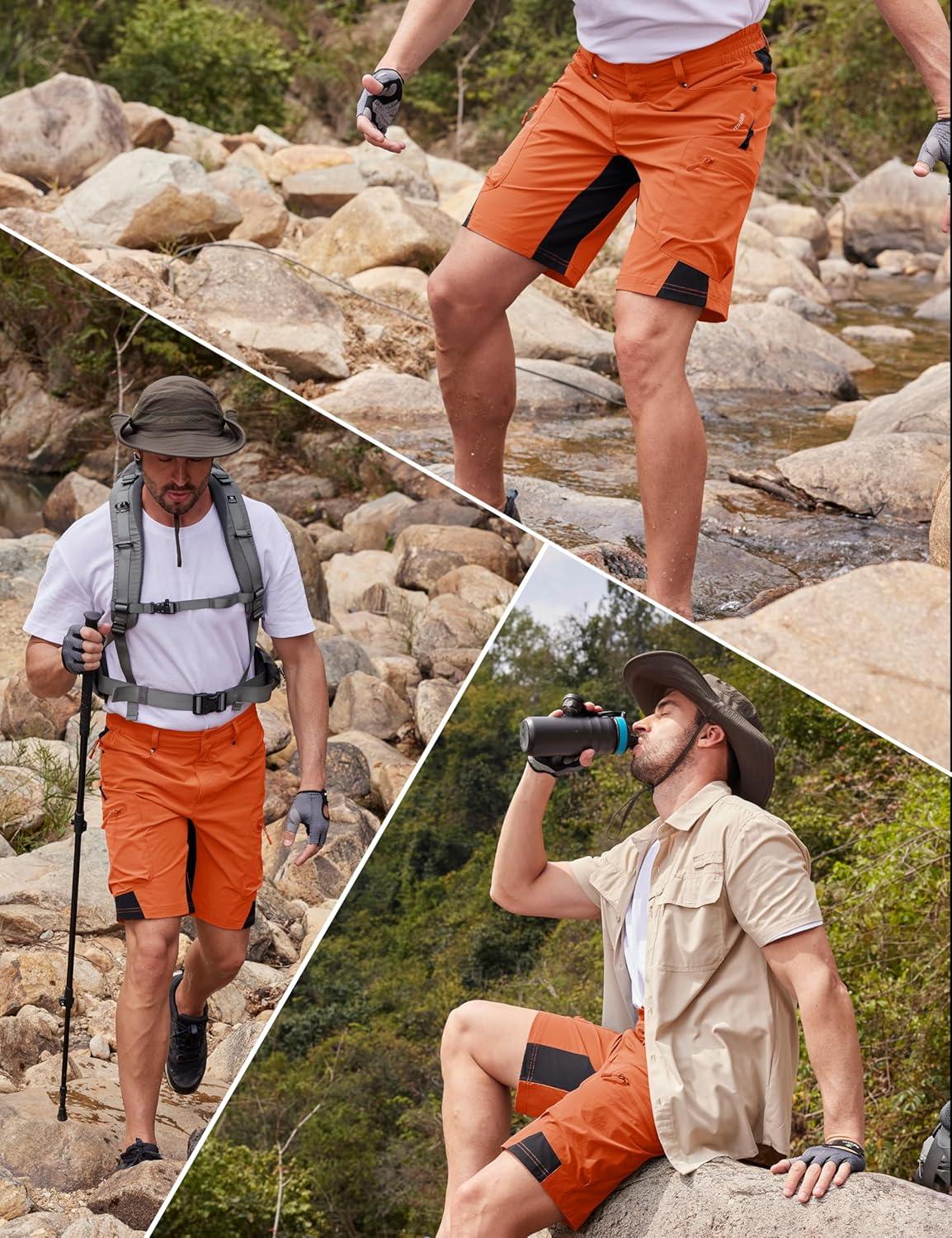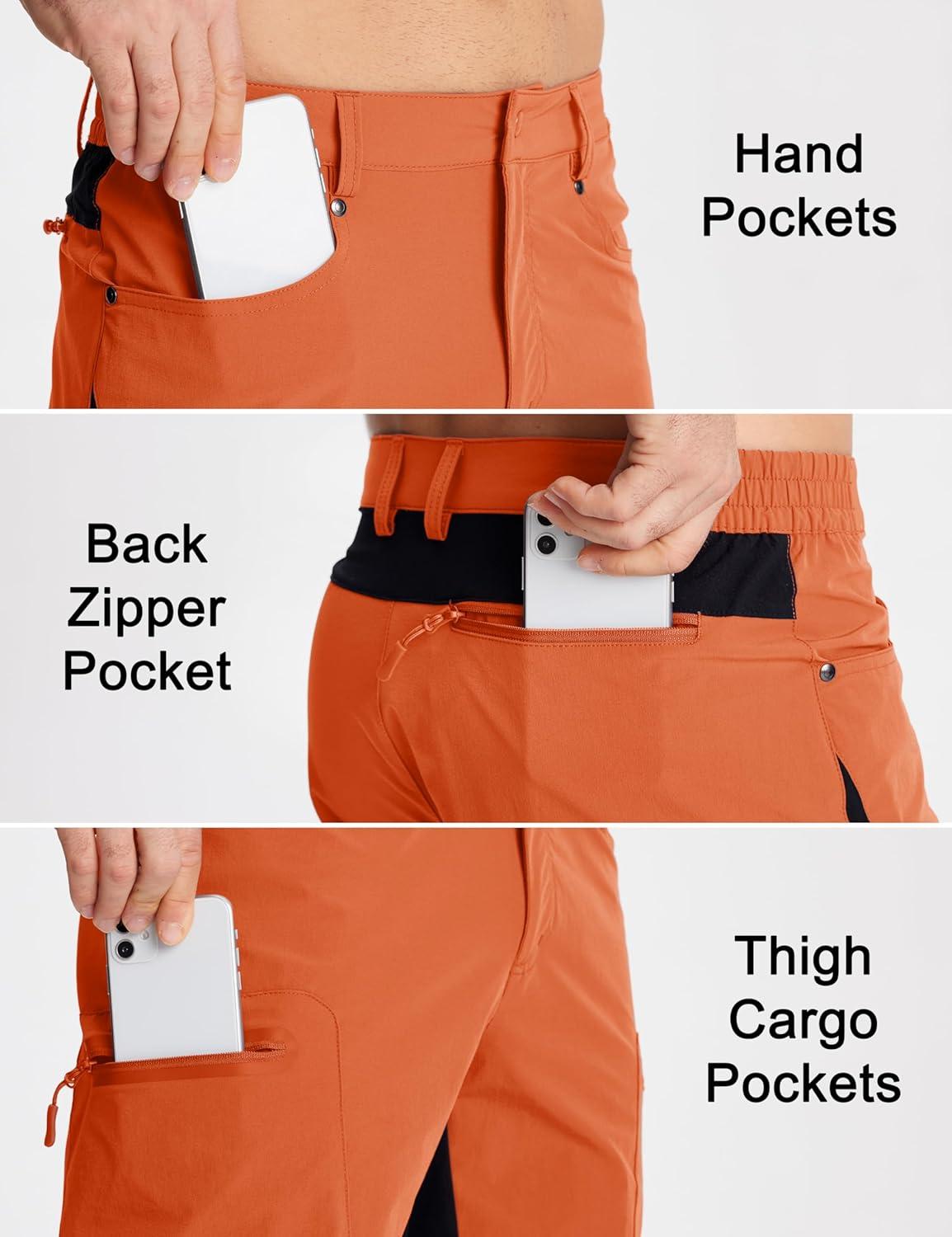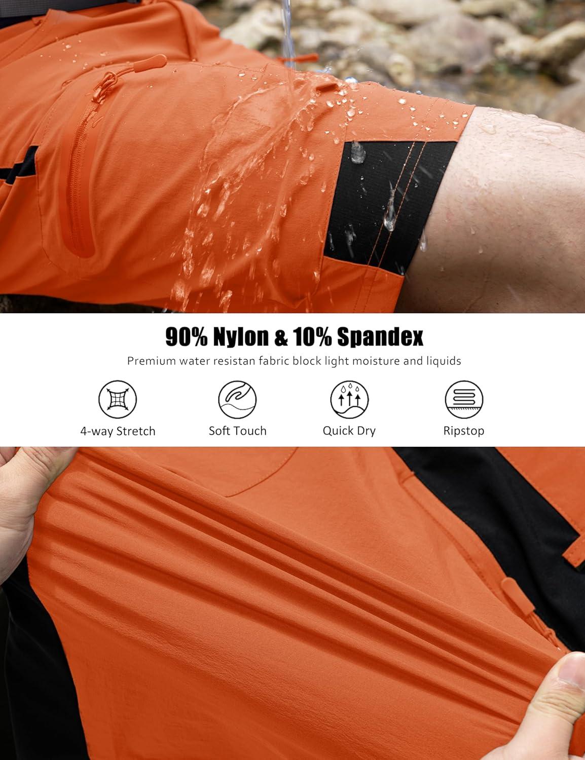 MAGCOMSEN Men’s Hiking Shorts 5 Pockets Ripstop, Quick Dry, Summer Athletic Shorts for Workout, Hiking, Cycling(Orange)