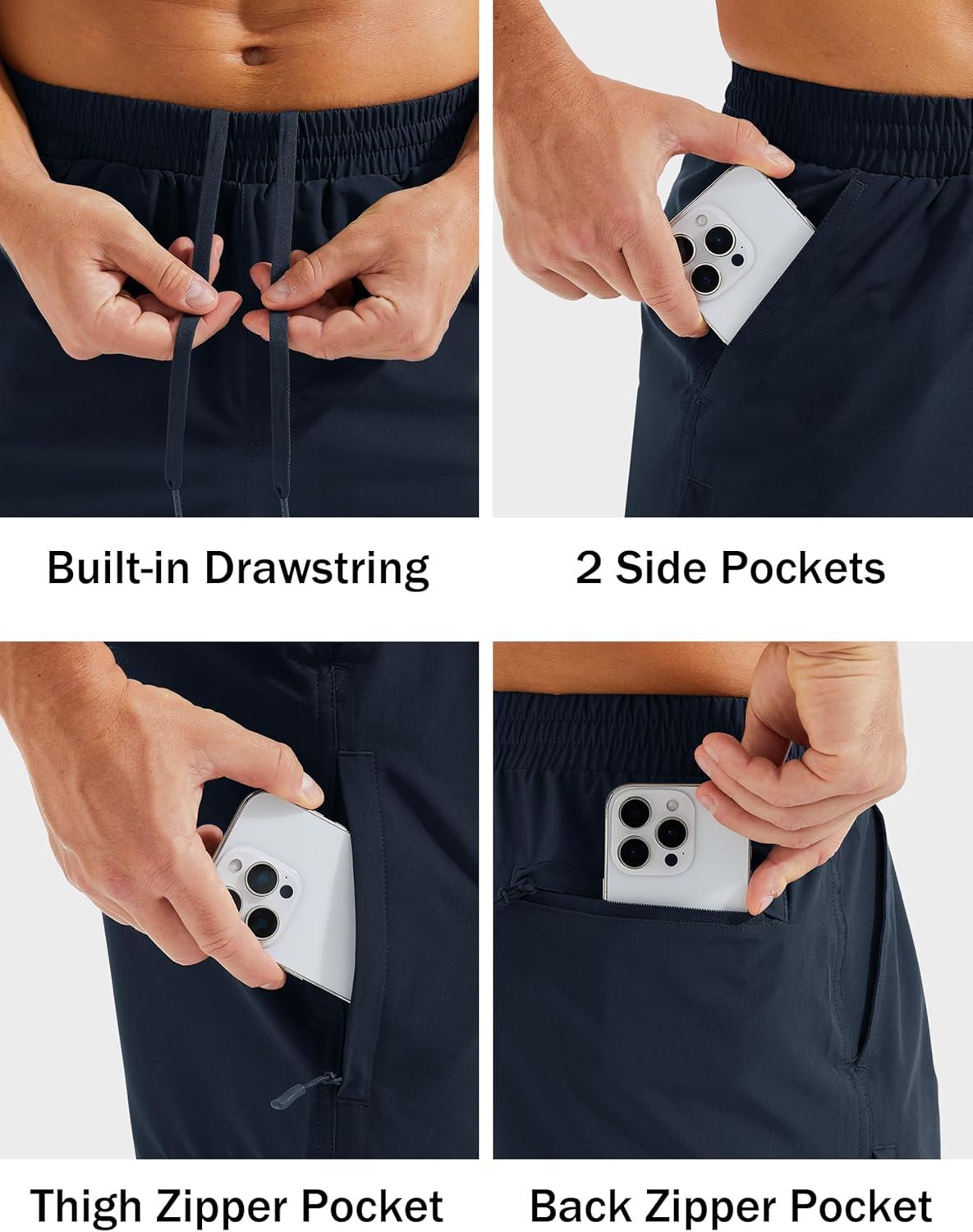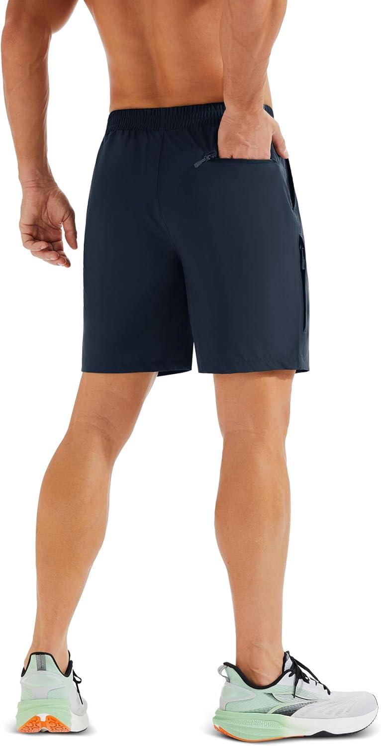 MAGCOMSEN Mens Hiking Shorts 7 Inch Quick Dry Lightweight Fishing Workout Athletic Water Resistant Shorts with Zipper Pockets(Navy Blue)