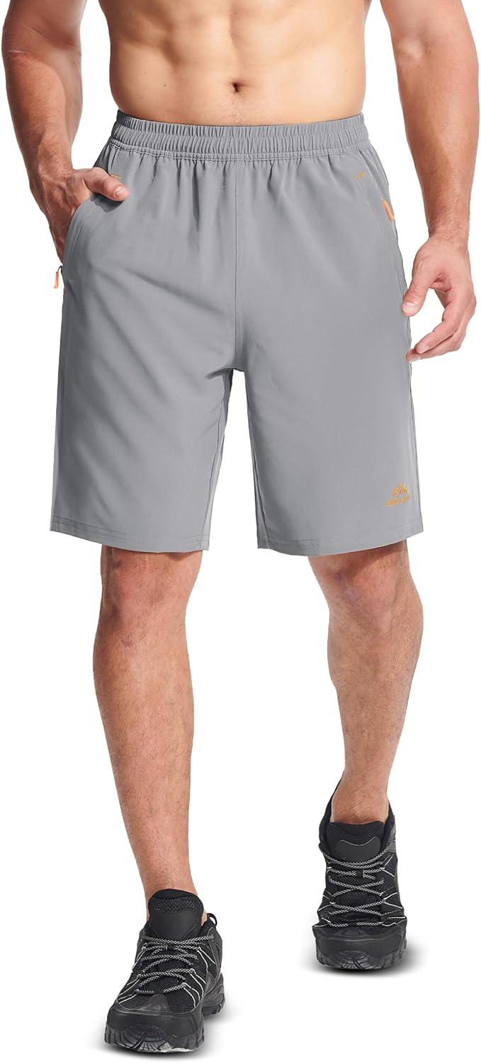 MAGCOMSEN Men’s Hiking Shorts 9″ Quick Dry Lightweight Running Shorts with Zipper Pockets for Workout Athletic Sport(3-light Grey)