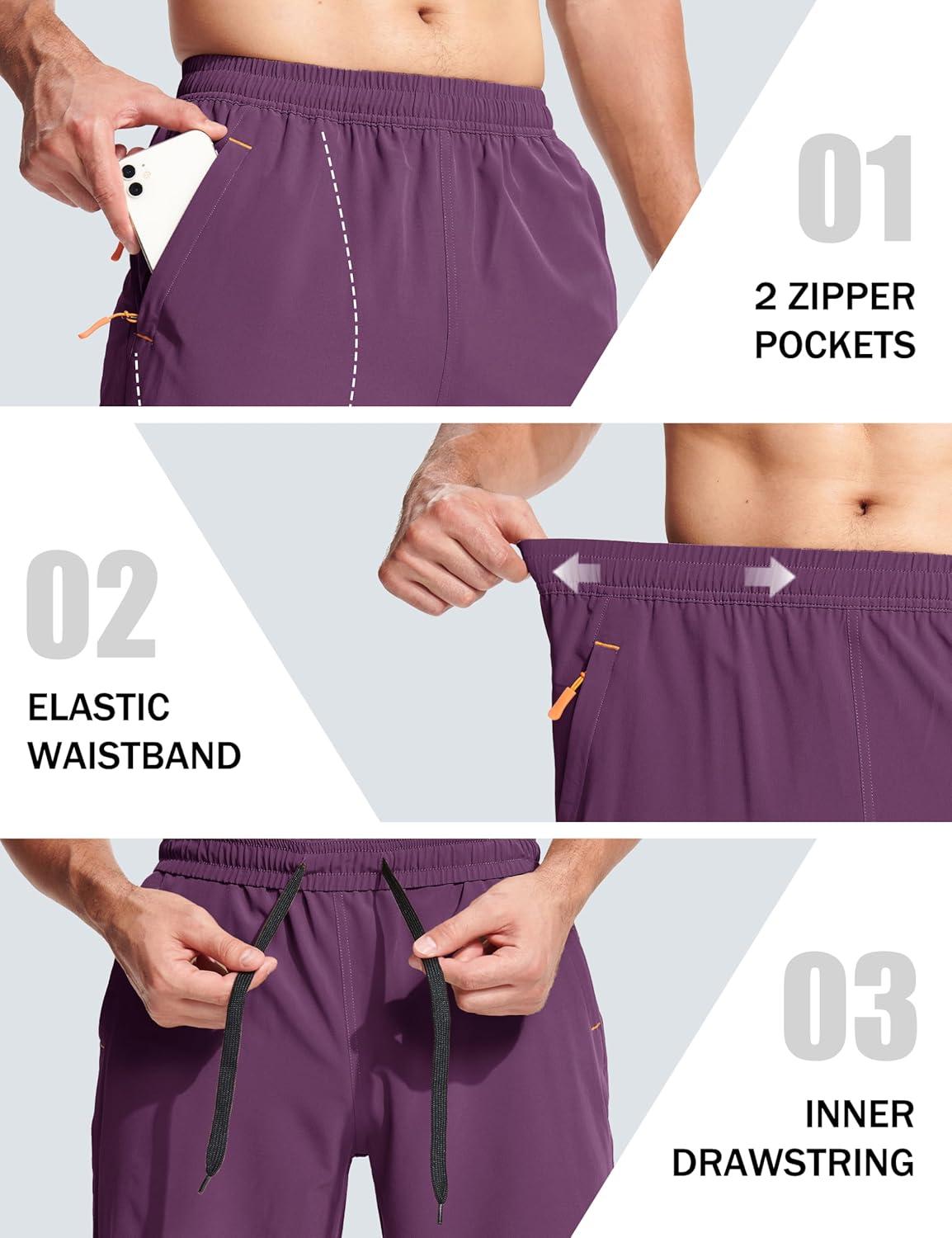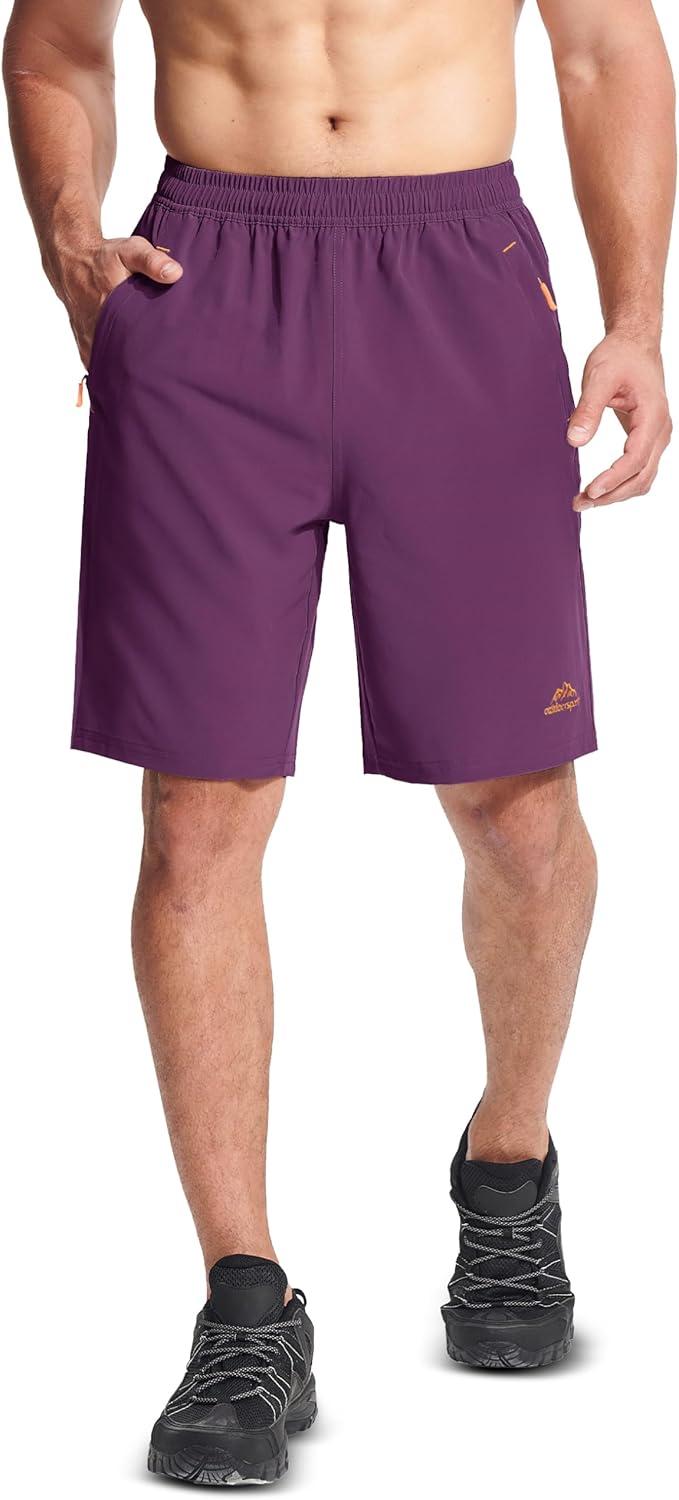 MAGCOMSEN Men’s Hiking Shorts 9″ Quick Dry Lightweight Running Shorts with Zipper Pockets for Workout Athletic Sport(Purple Red)