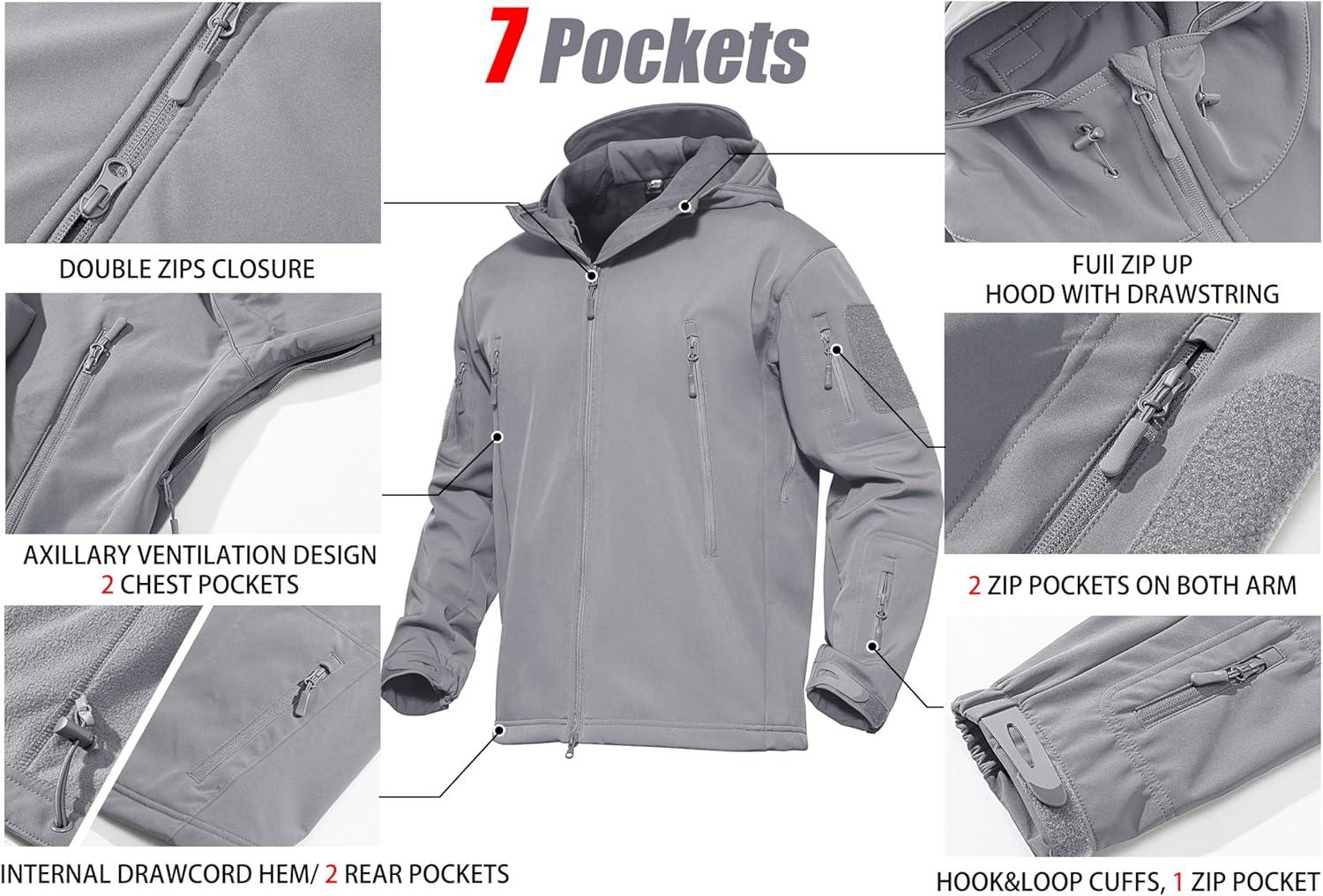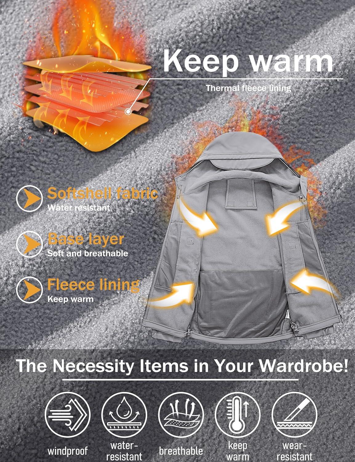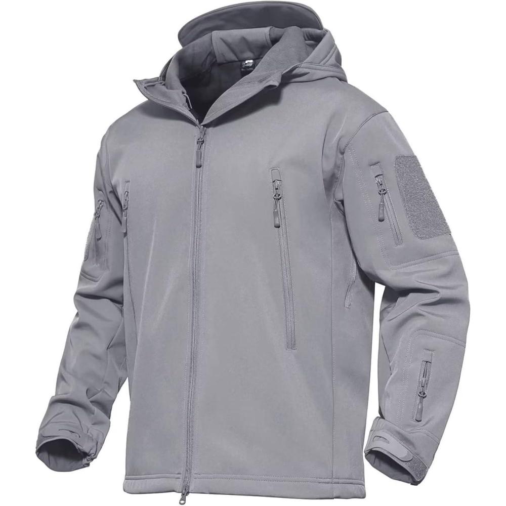 MAGCOMSEN Men’s Jacket Tactical Performance Waterproof Softshell Jackets Fleece Lined Ski Snow Winter Windbreaker(Light Grey)