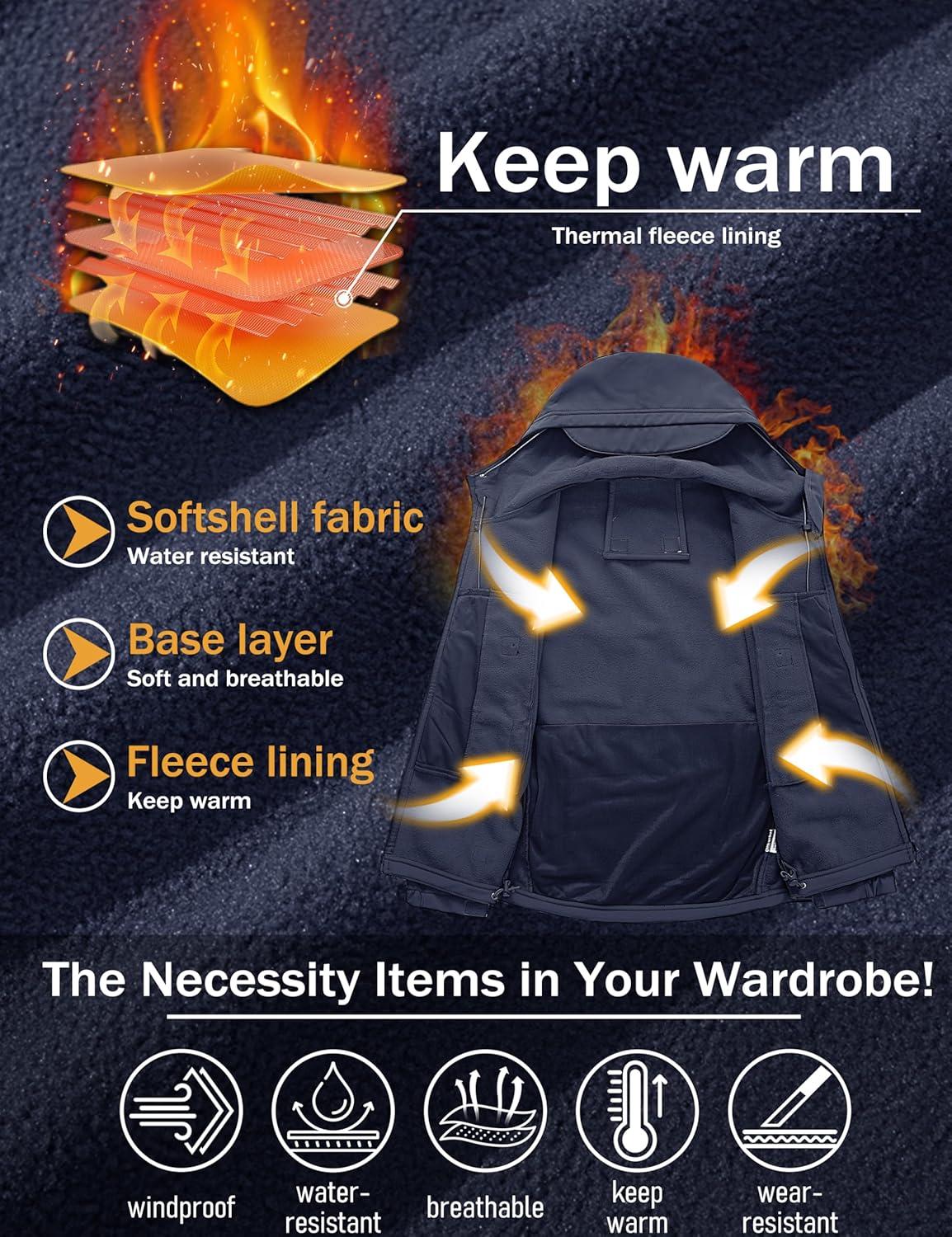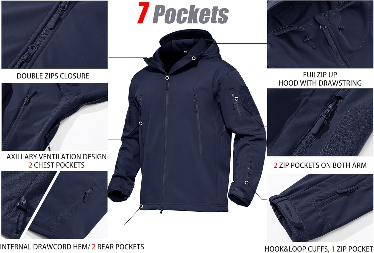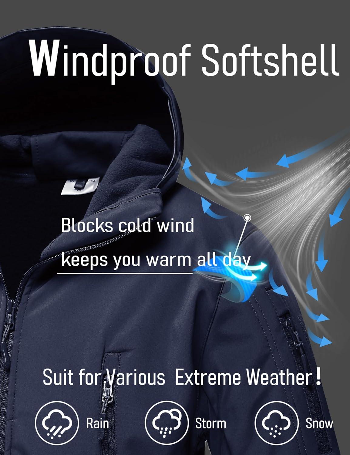 MAGCOMSEN Men’s Jacket Tactical Performance Waterproof Softshell Jackets Fleece Lined Ski Snow Winter Windbreaker(Navy)