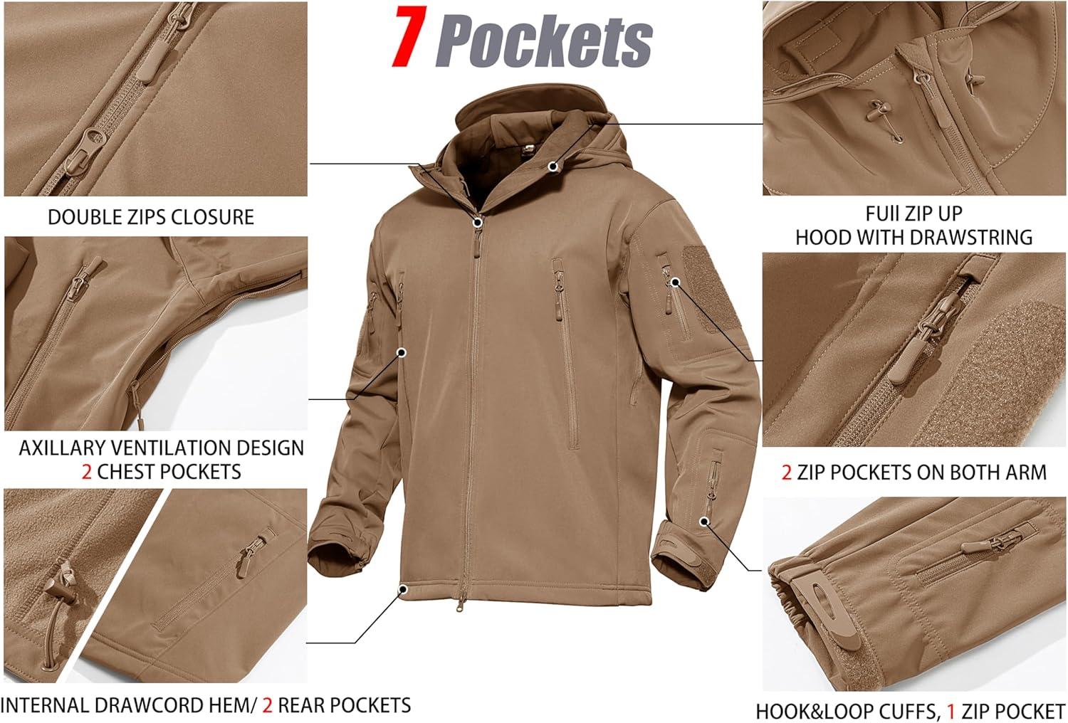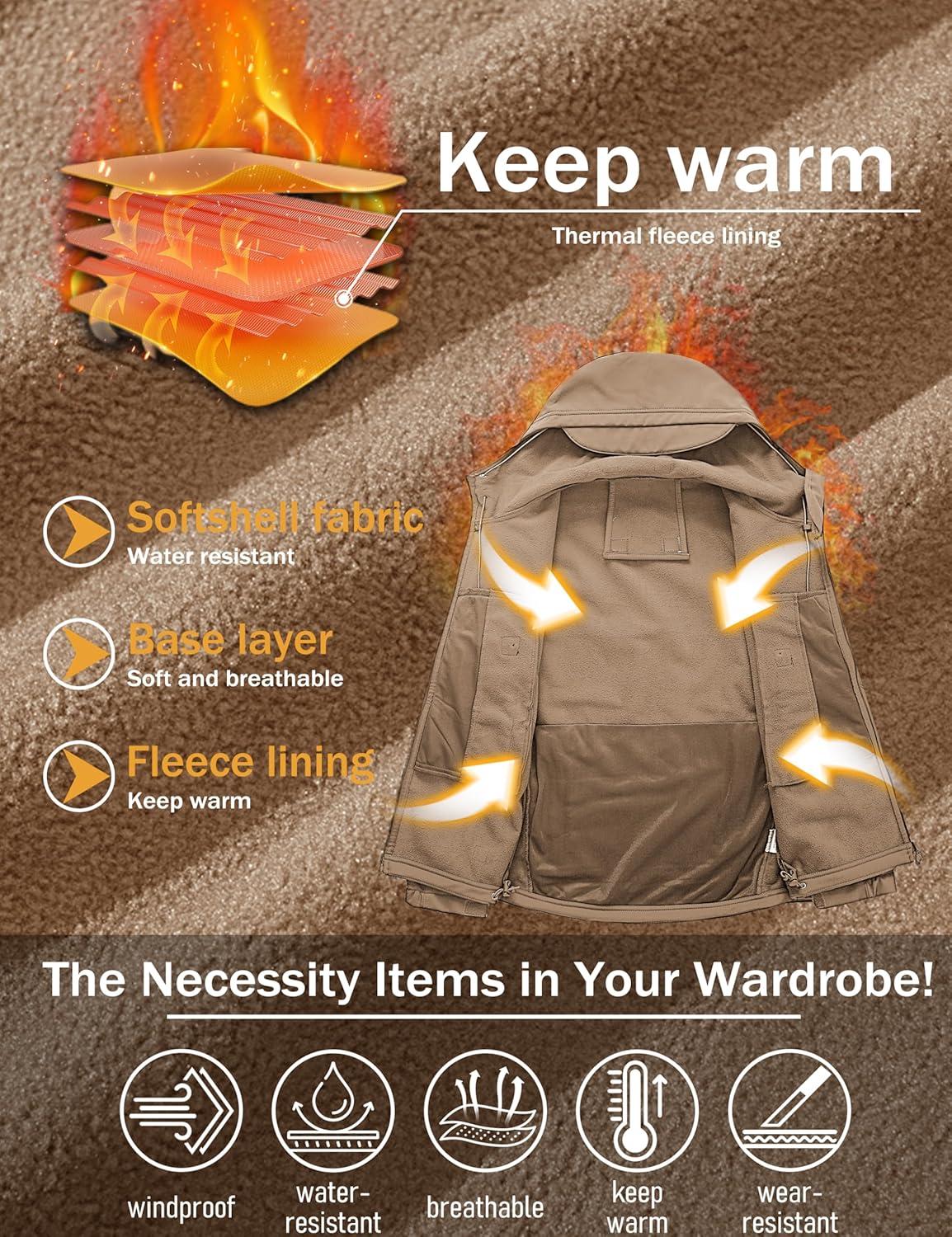 MAGCOMSEN Men’s Jacket Tactical Performance Waterproof Softshell Jackets Fleece Lined Ski Snow Winter Windbreaker(Sand)