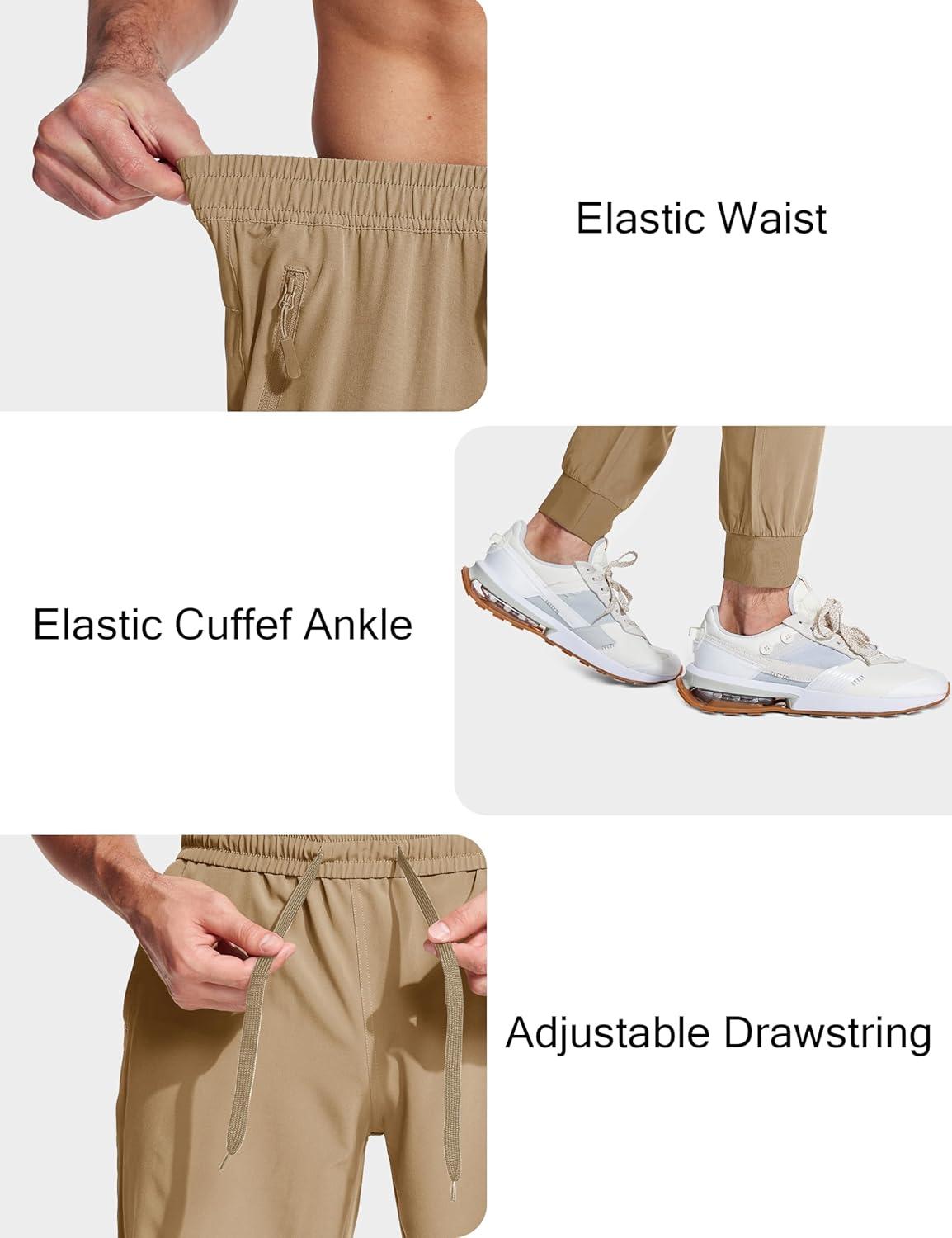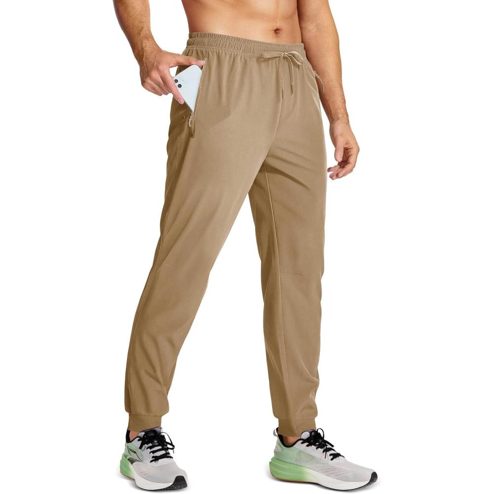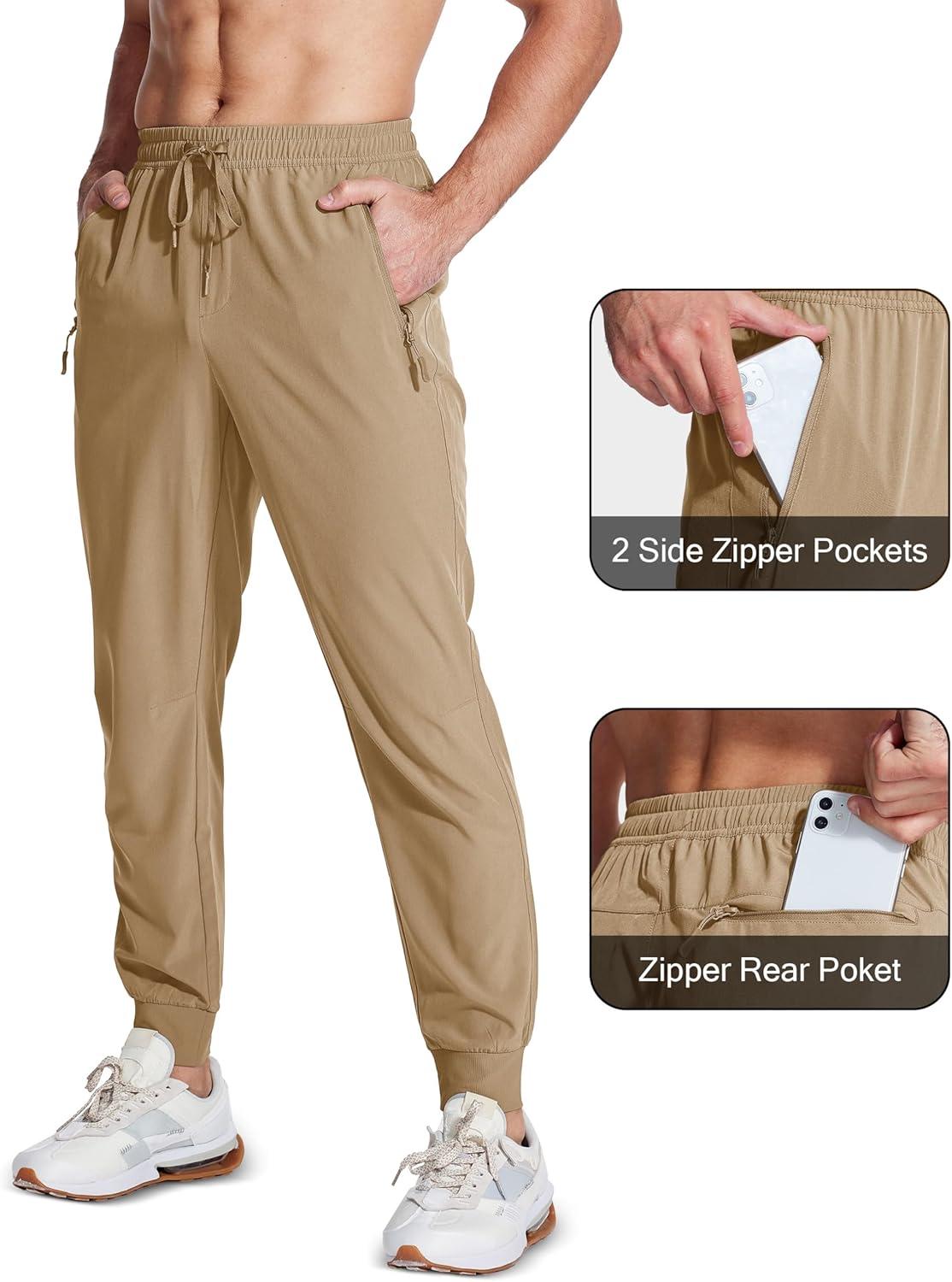 MAGCOMSEN Men’s Joggers with Zipper Pockets Lightweight Hiking Sweatpants Athletic Pants for Men Running Workout Traning Gym(Khaki)