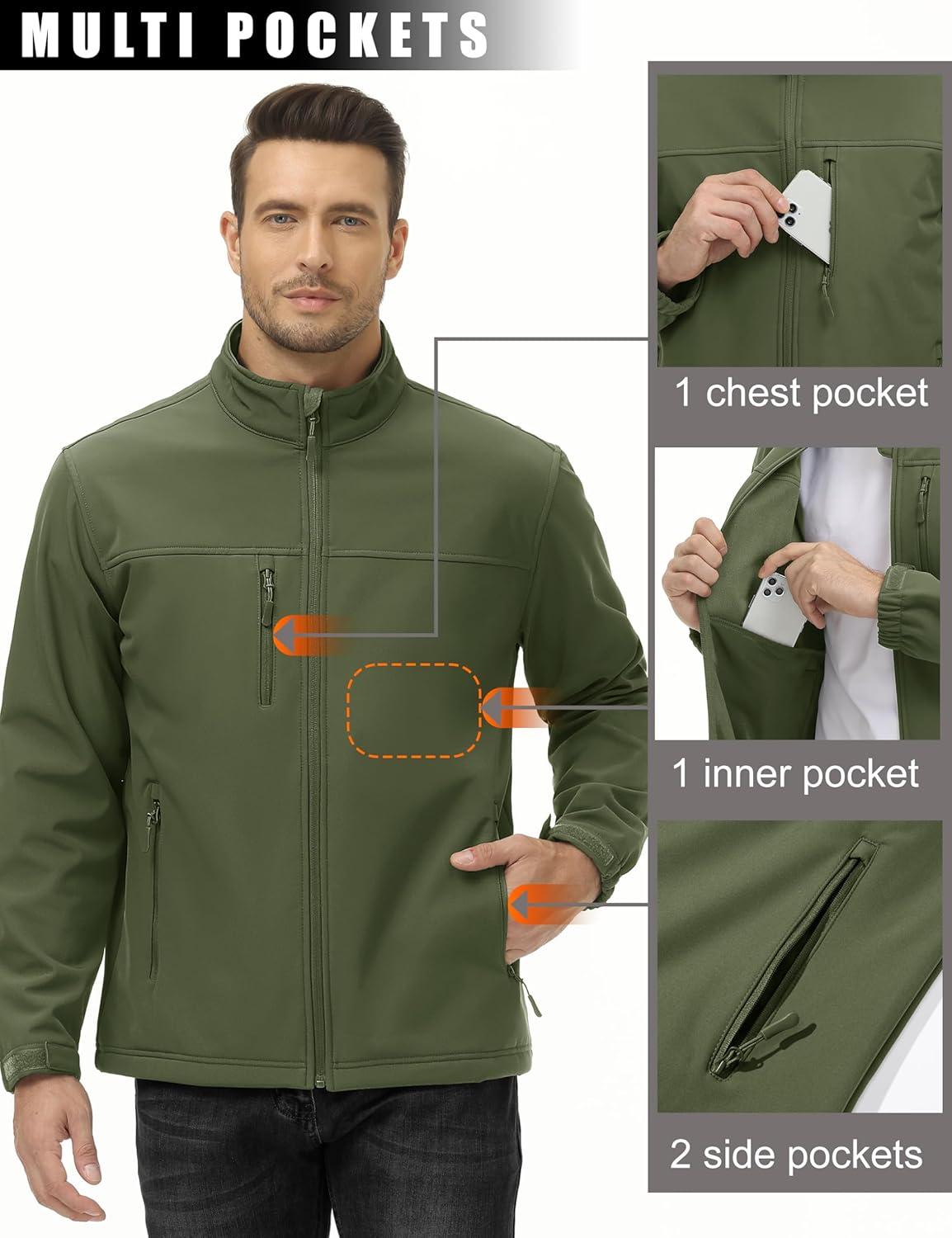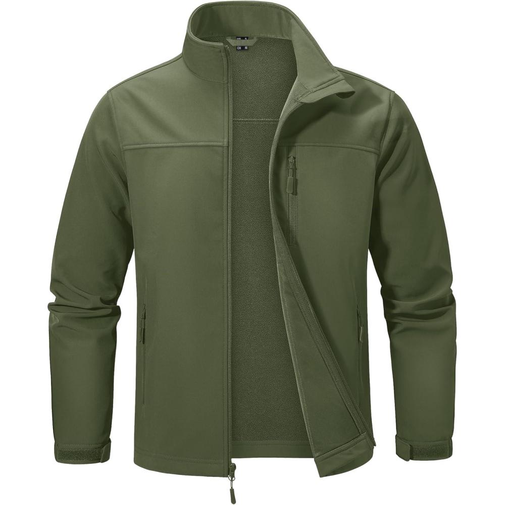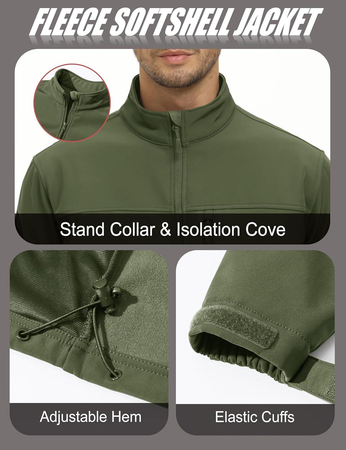 MAGCOMSEN Men’s Lightweight Softshell Jacket Fleece Lined Tactical Waterproof Windbreaker Rain Jacket for Outdoor Hiking(Army Green)
