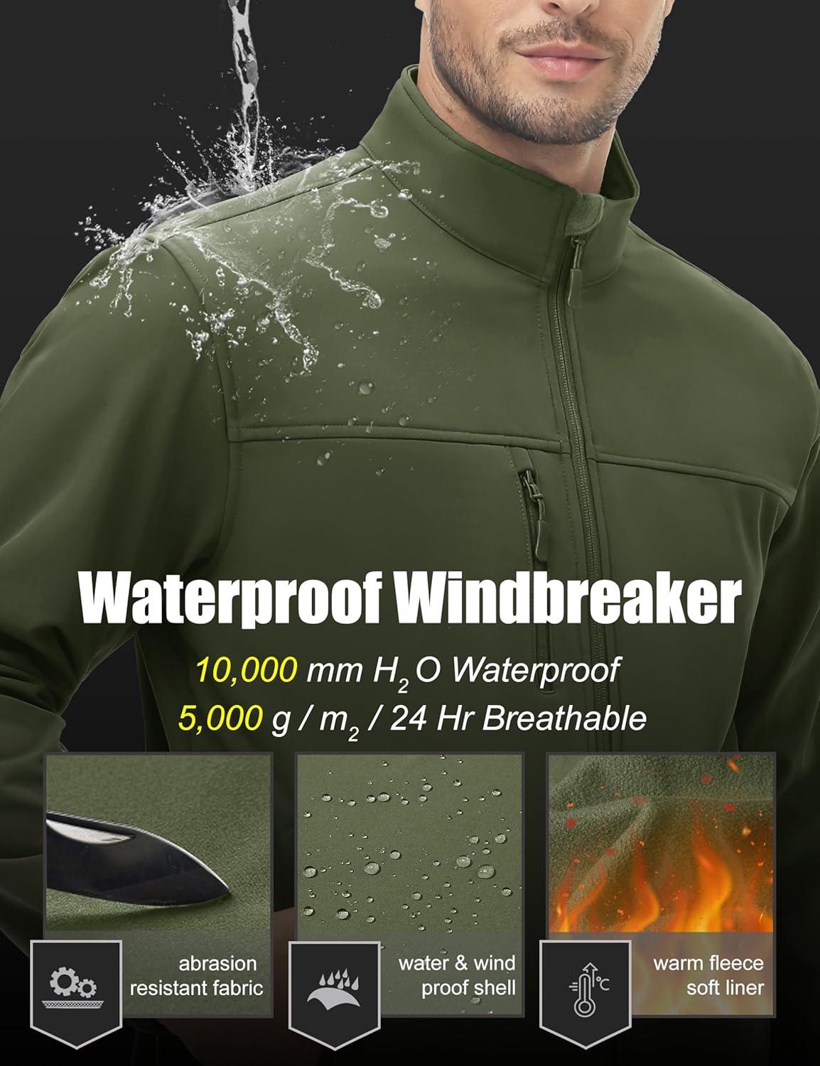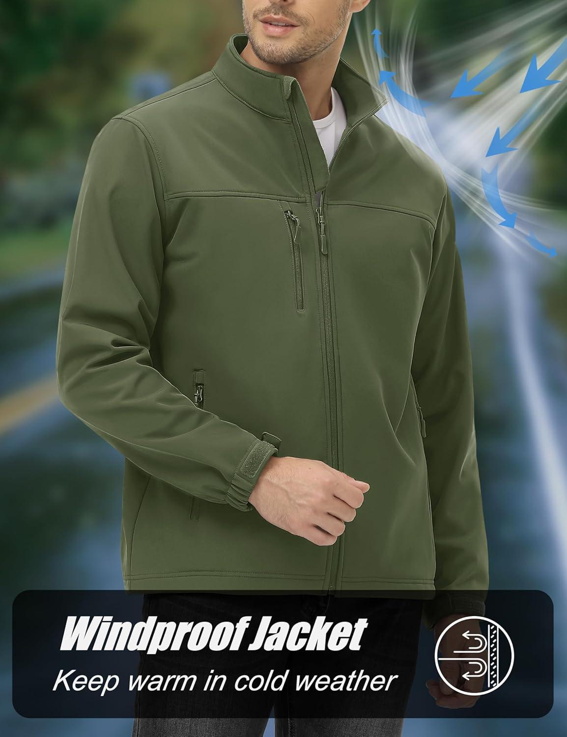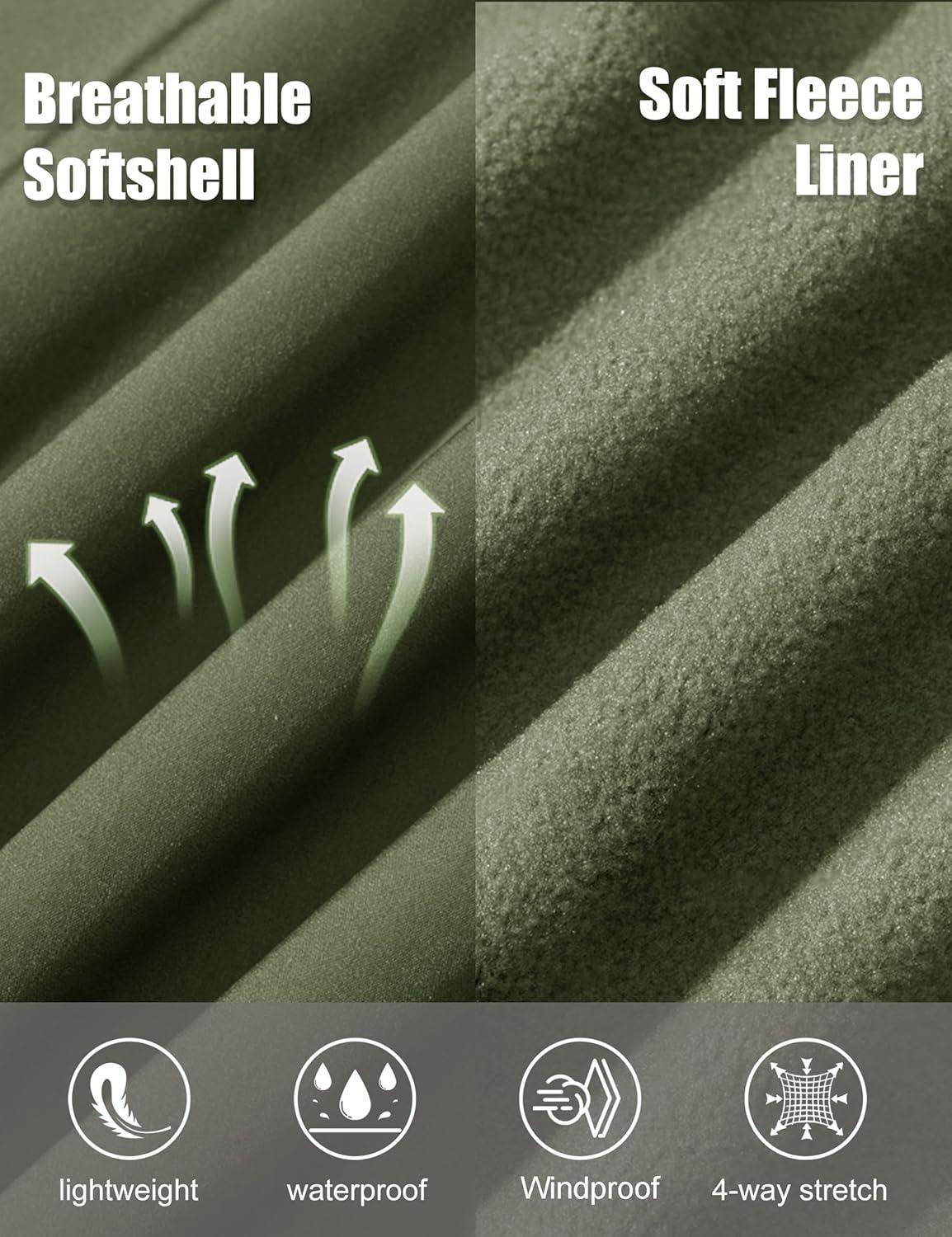 MAGCOMSEN Men’s Lightweight Softshell Jacket Fleece Lined Tactical Waterproof Windbreaker Rain Jacket for Outdoor Hiking(Army Green)