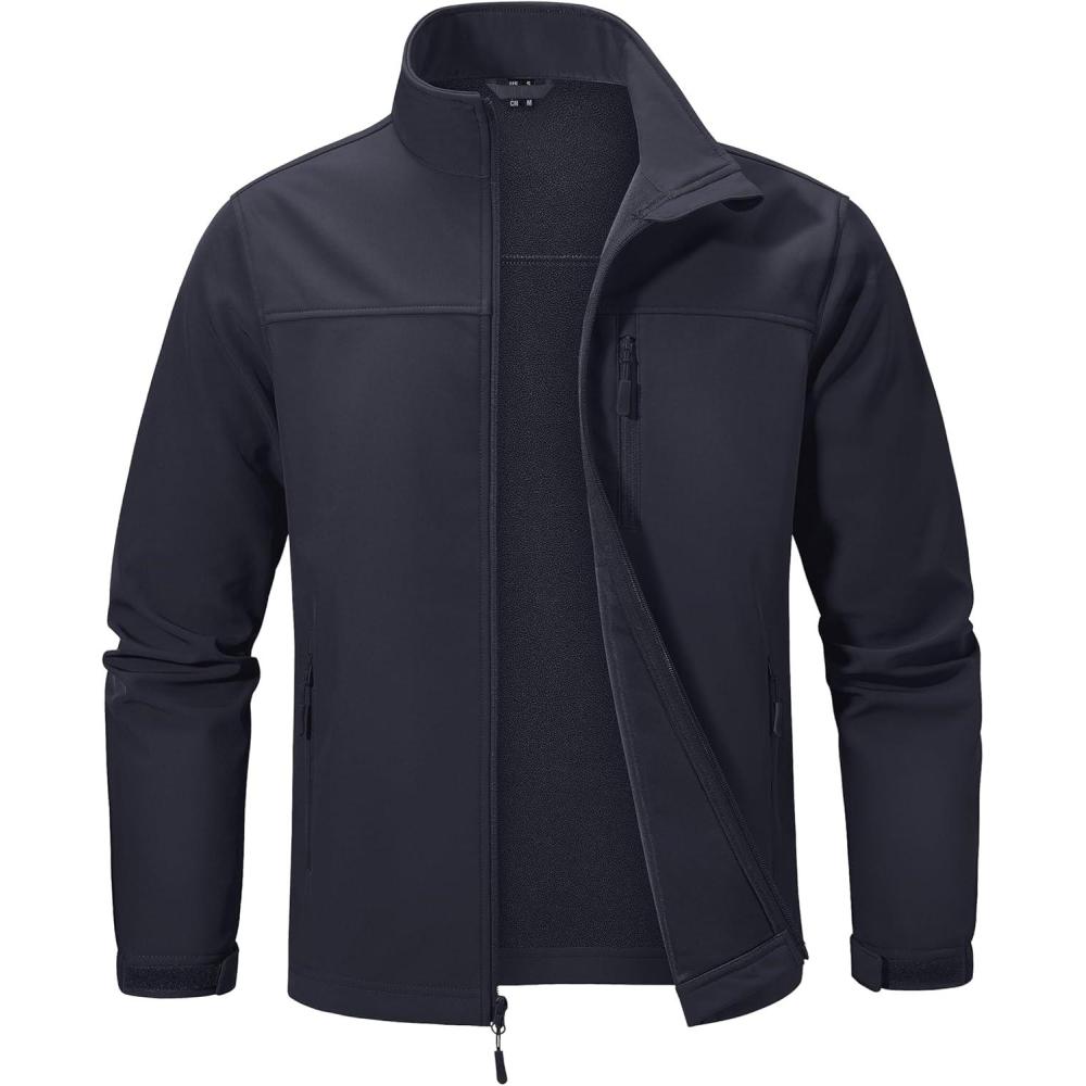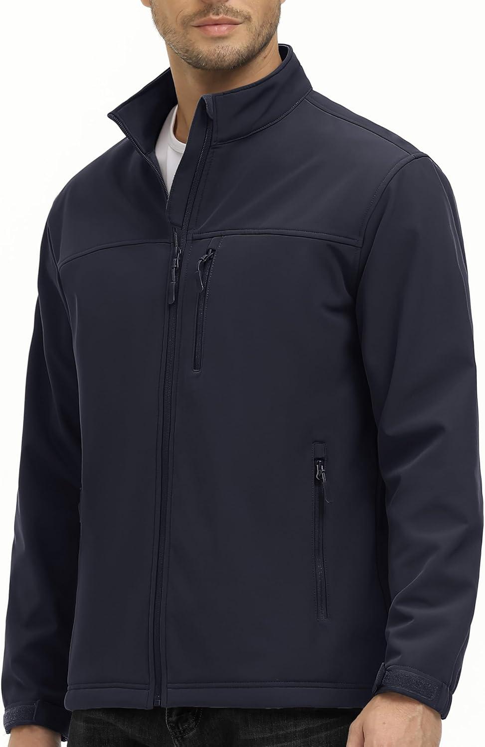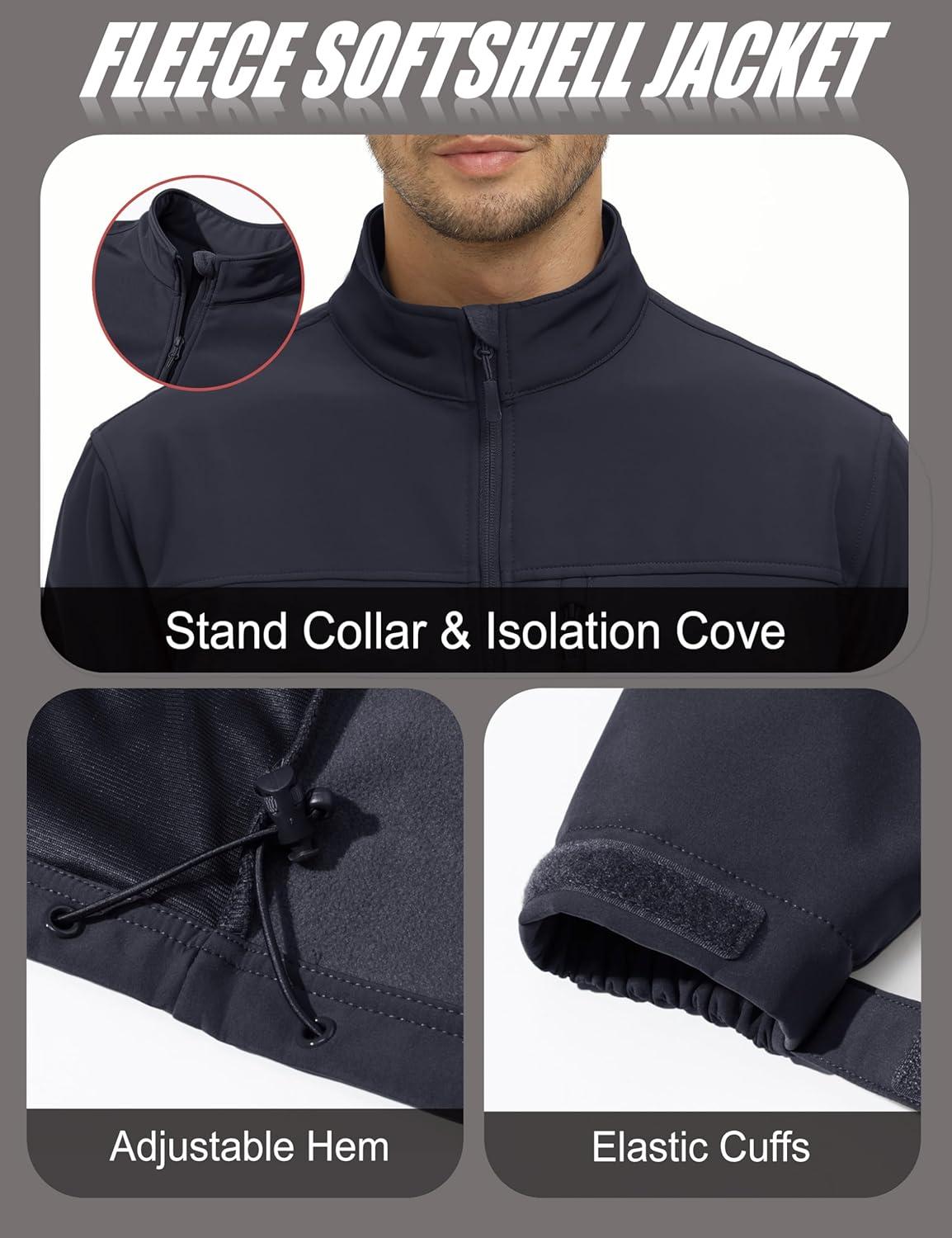 MAGCOMSEN Men’s Lightweight Softshell Jacket Fleece Lined Tactical Waterproof Windbreaker Rain Jacket for Outdoor Hiking(Black)
