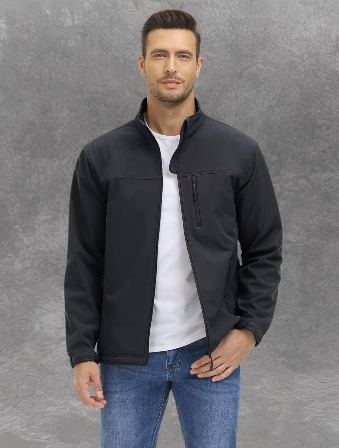 MAGCOMSEN Men’s Lightweight Softshell Jacket Fleece Lined Tactical Waterproof Windbreaker Rain Jacket for Outdoor Hiking(Dark Grey)