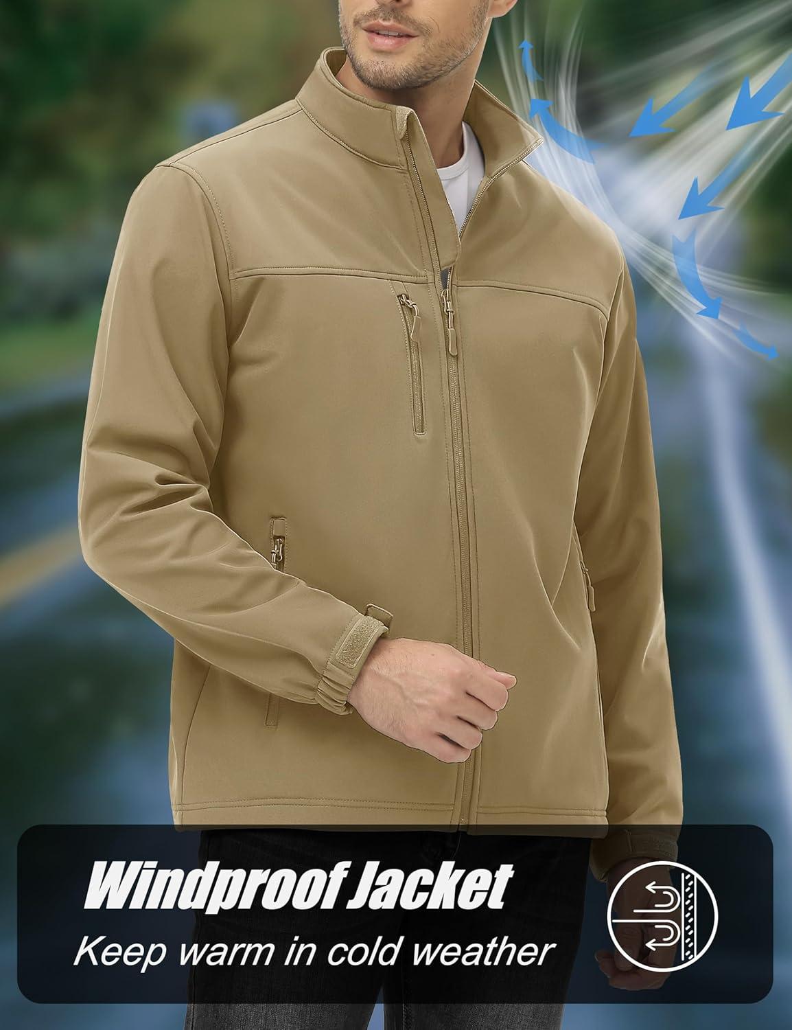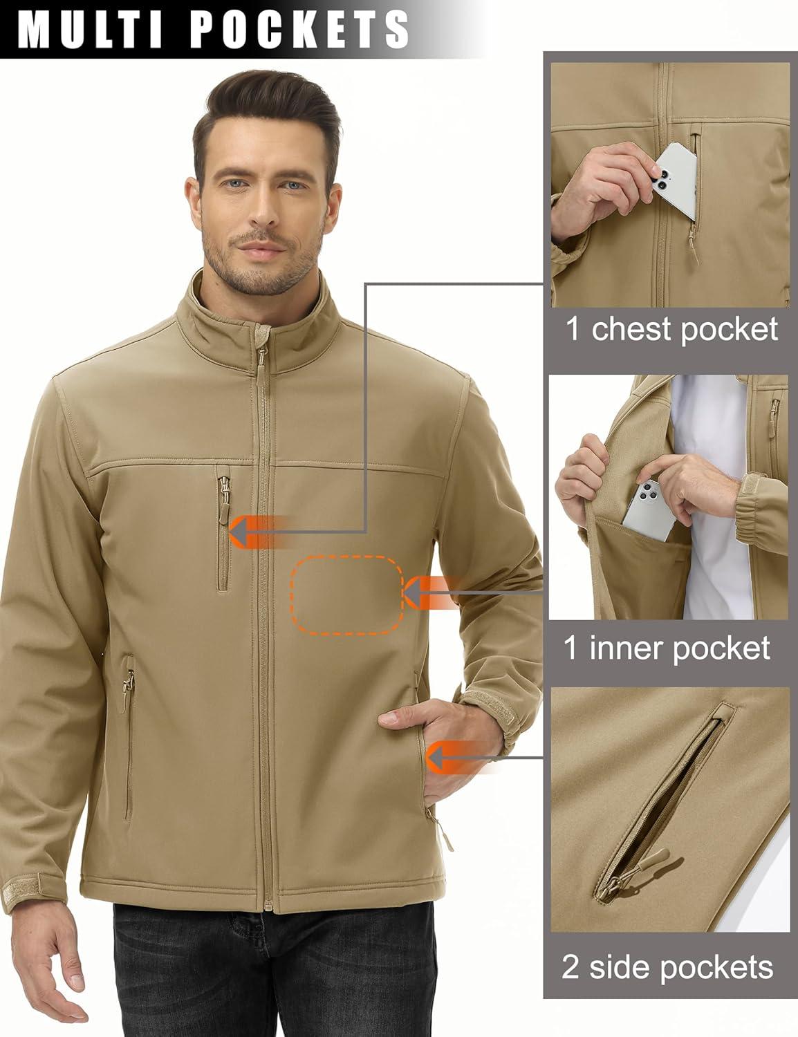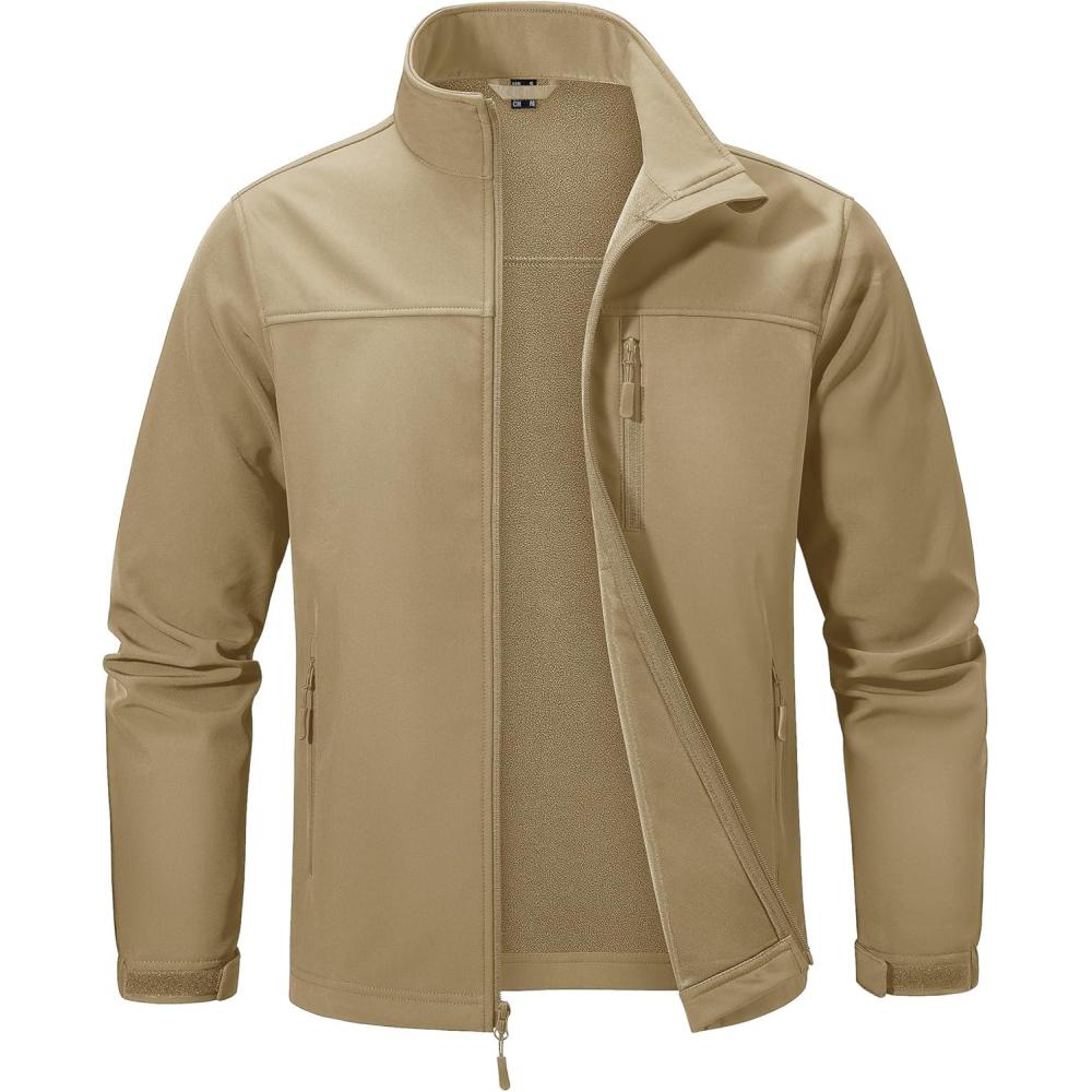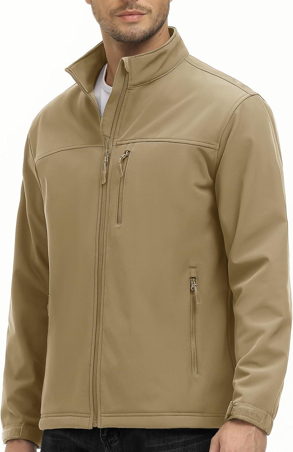 MAGCOMSEN Men’s Lightweight Softshell Jacket Fleece Lined Tactical Waterproof Windbreaker Rain Jacket for Outdoor Hiking(Khaki)