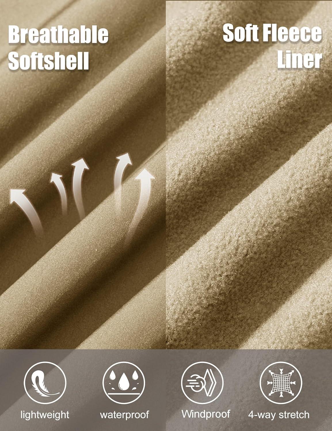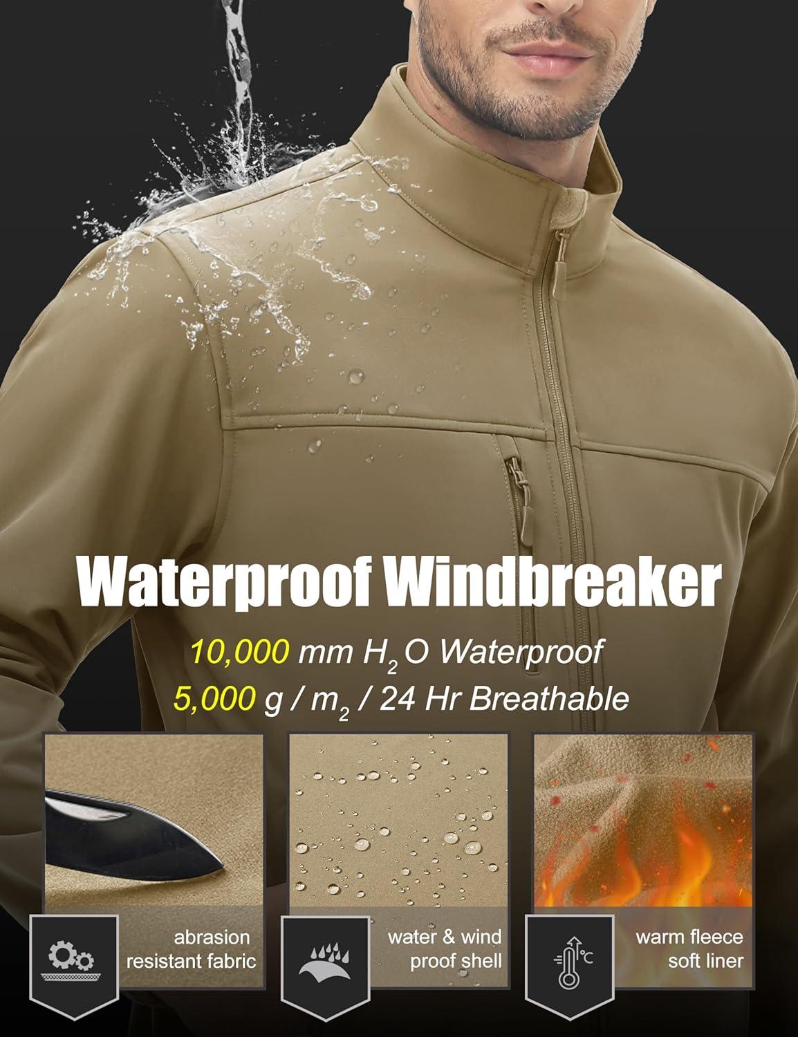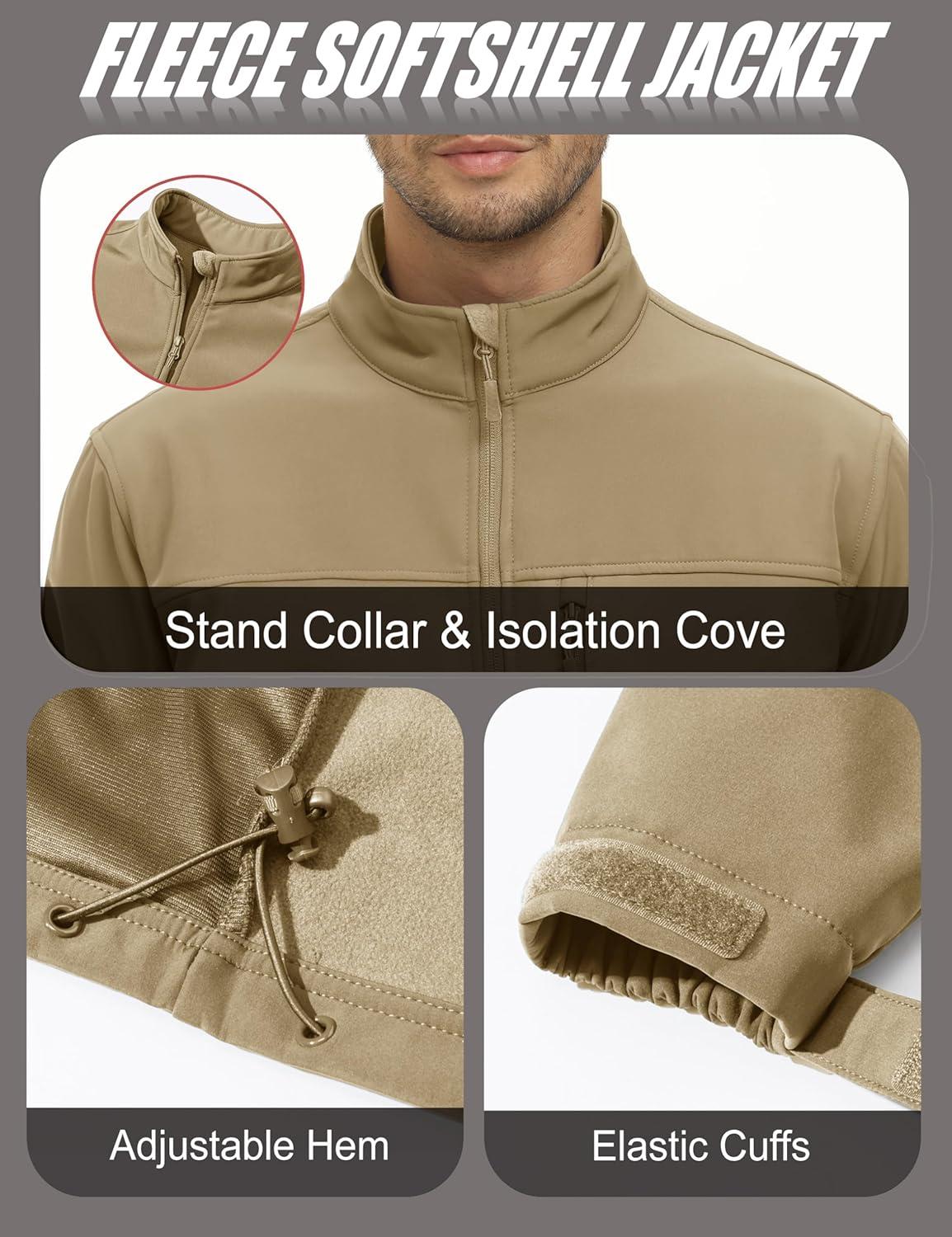 MAGCOMSEN Men’s Lightweight Softshell Jacket Fleece Lined Tactical Waterproof Windbreaker Rain Jacket for Outdoor Hiking(Khaki)