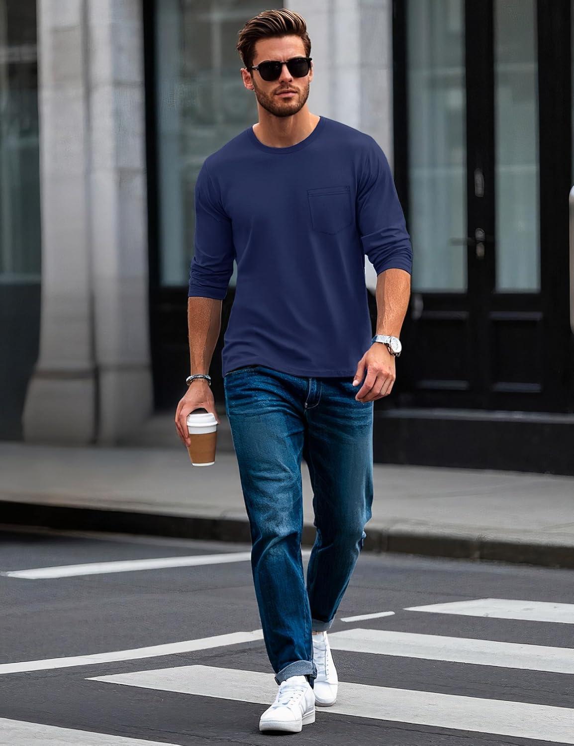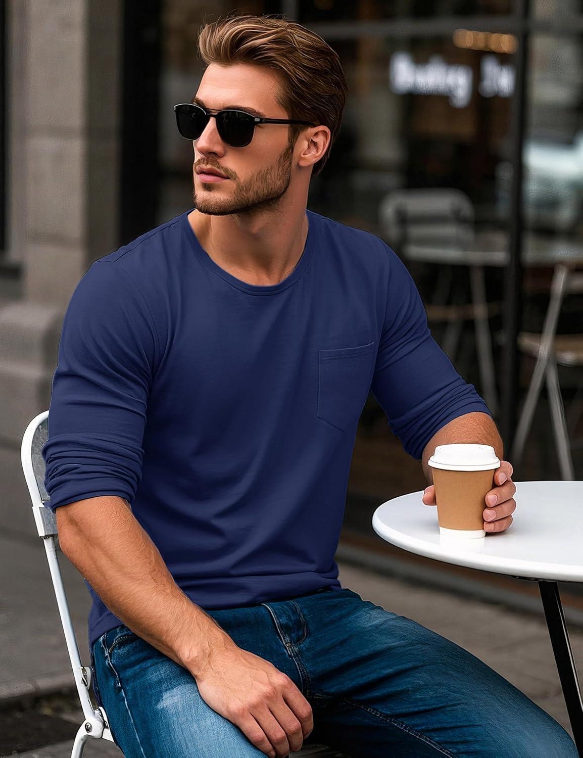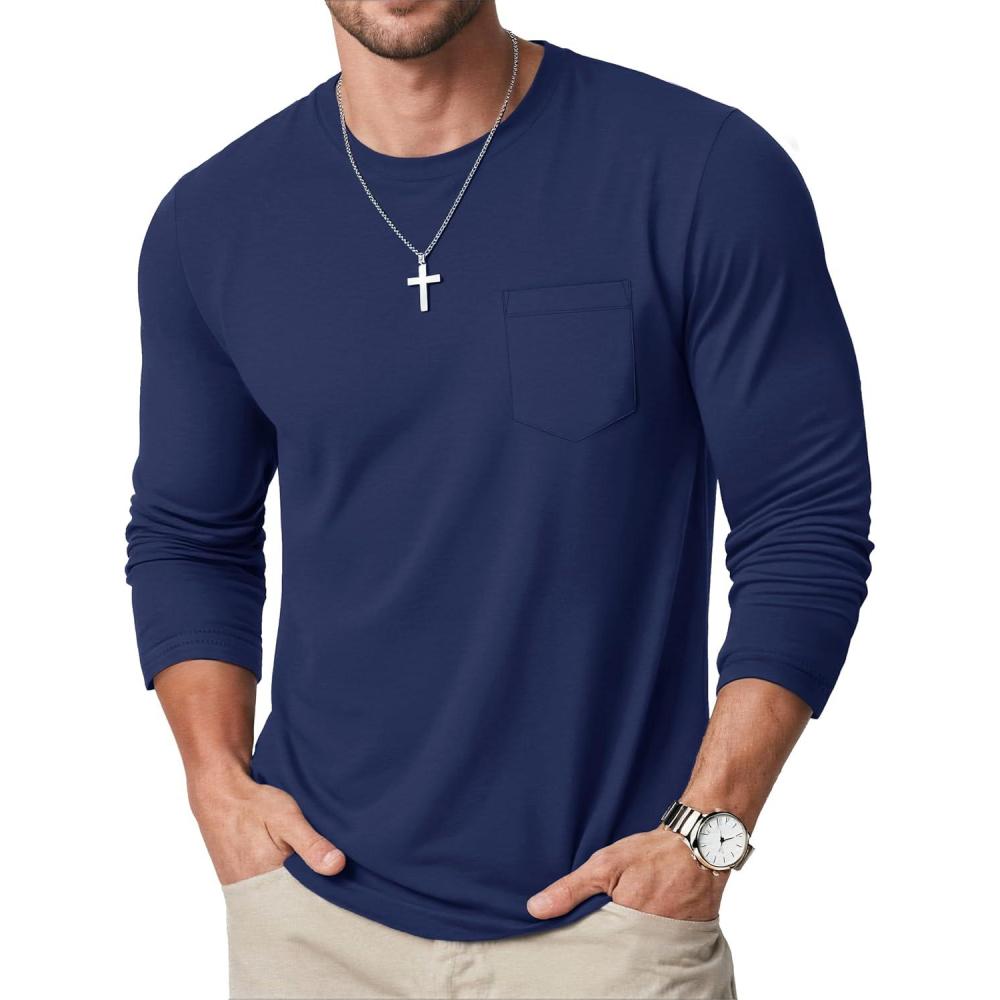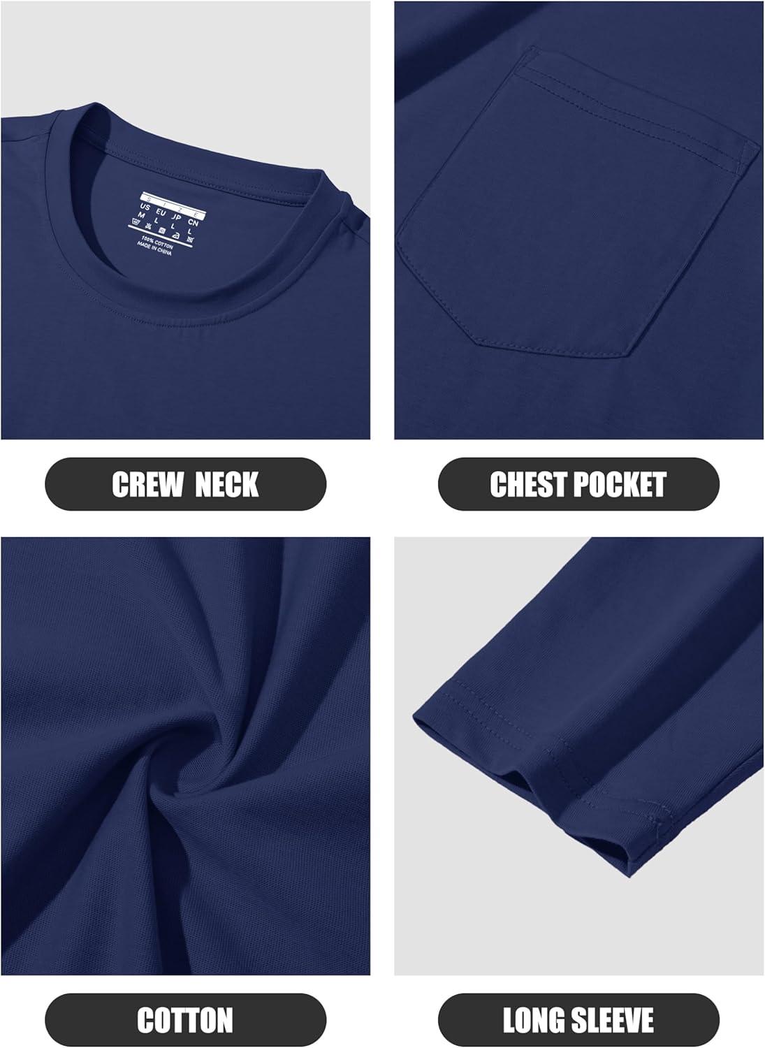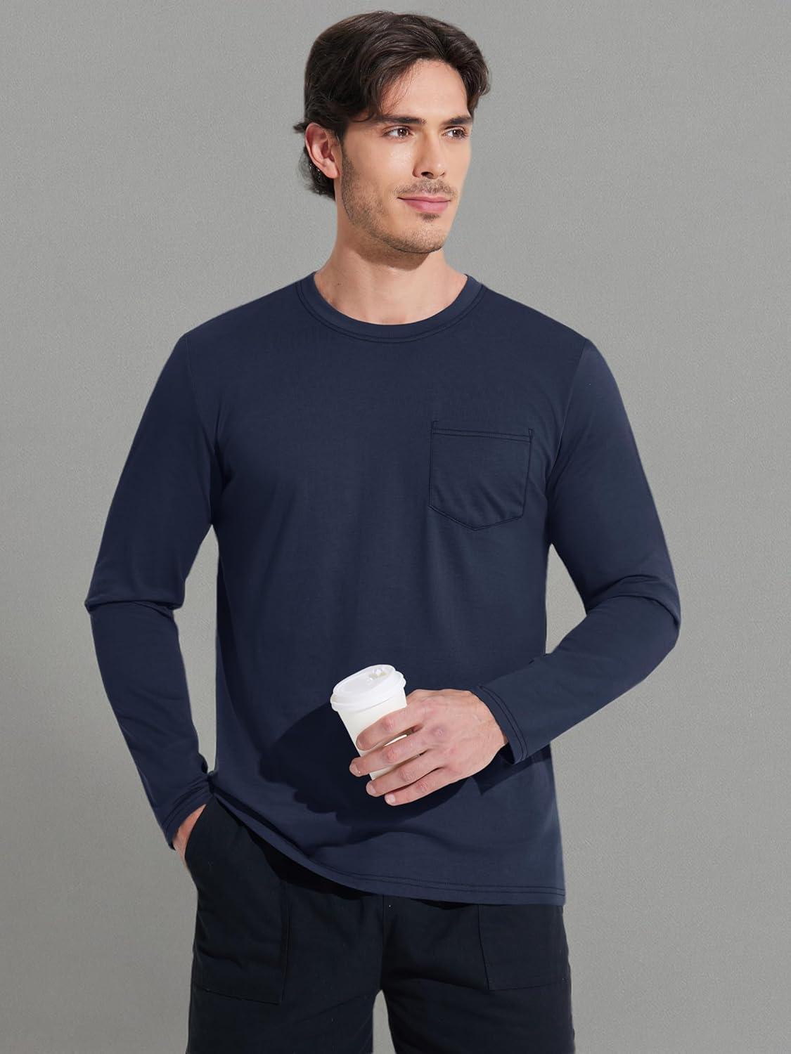 MAGCOMSEN Men’s Long Sleeve Shirt with Pocket Cotton Crew Neck Shirts Casual Lightweight T-Shirt(#03-navy)