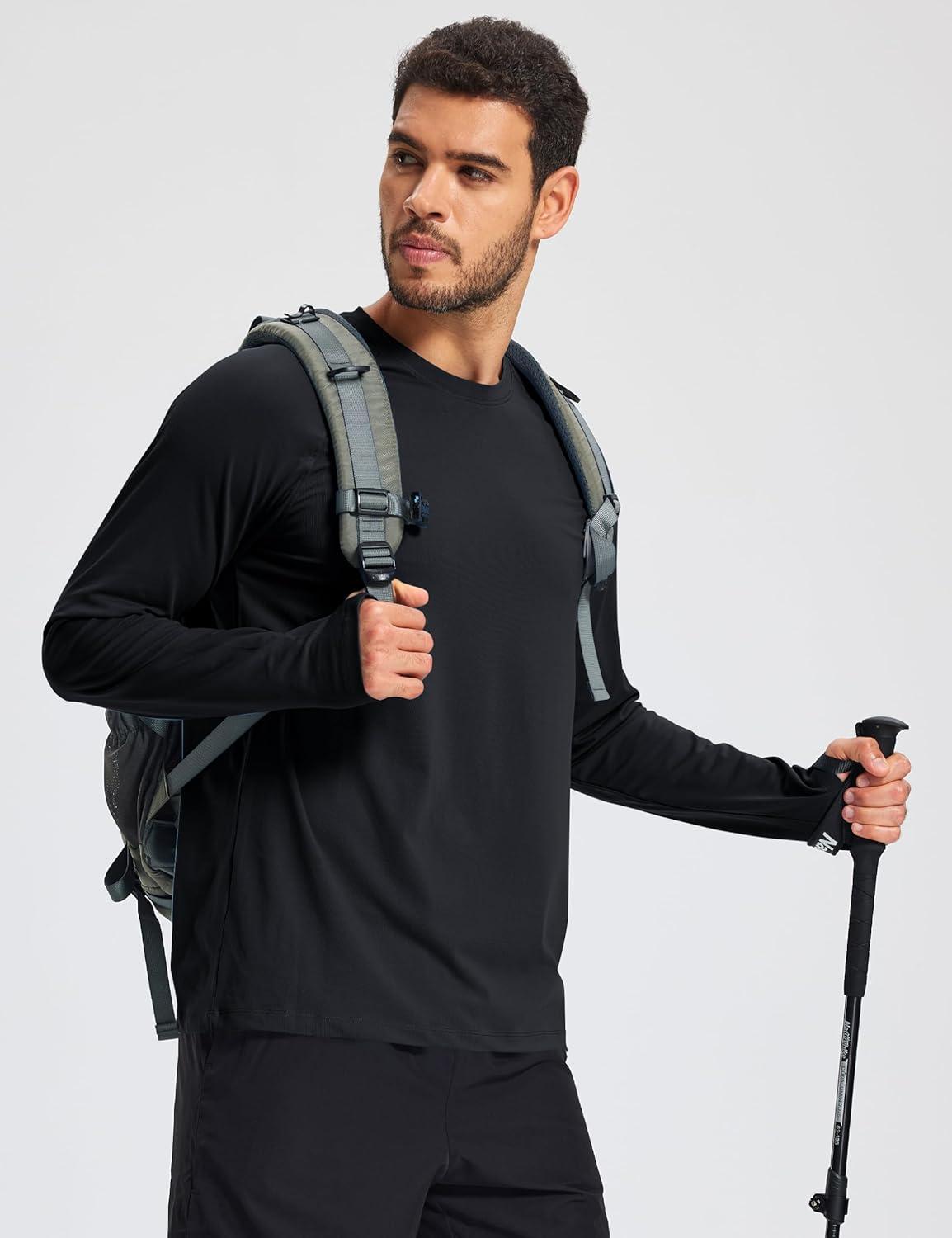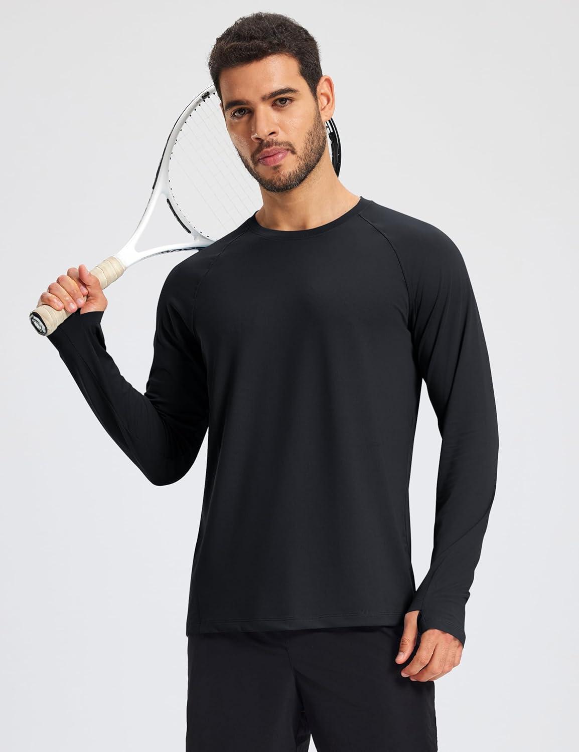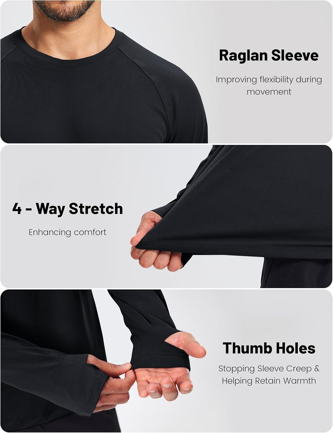 MAGCOMSEN Men’s Long Sleeve Shirts Dry Fit Workout Running Athletic Moisture Wicking Casual Tshirts with Thumb Holes(Black)