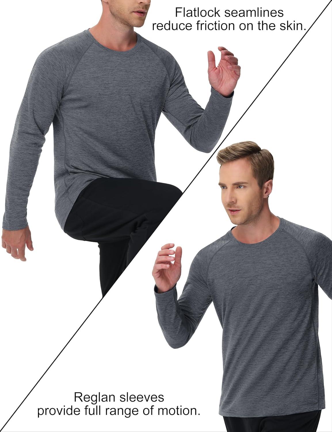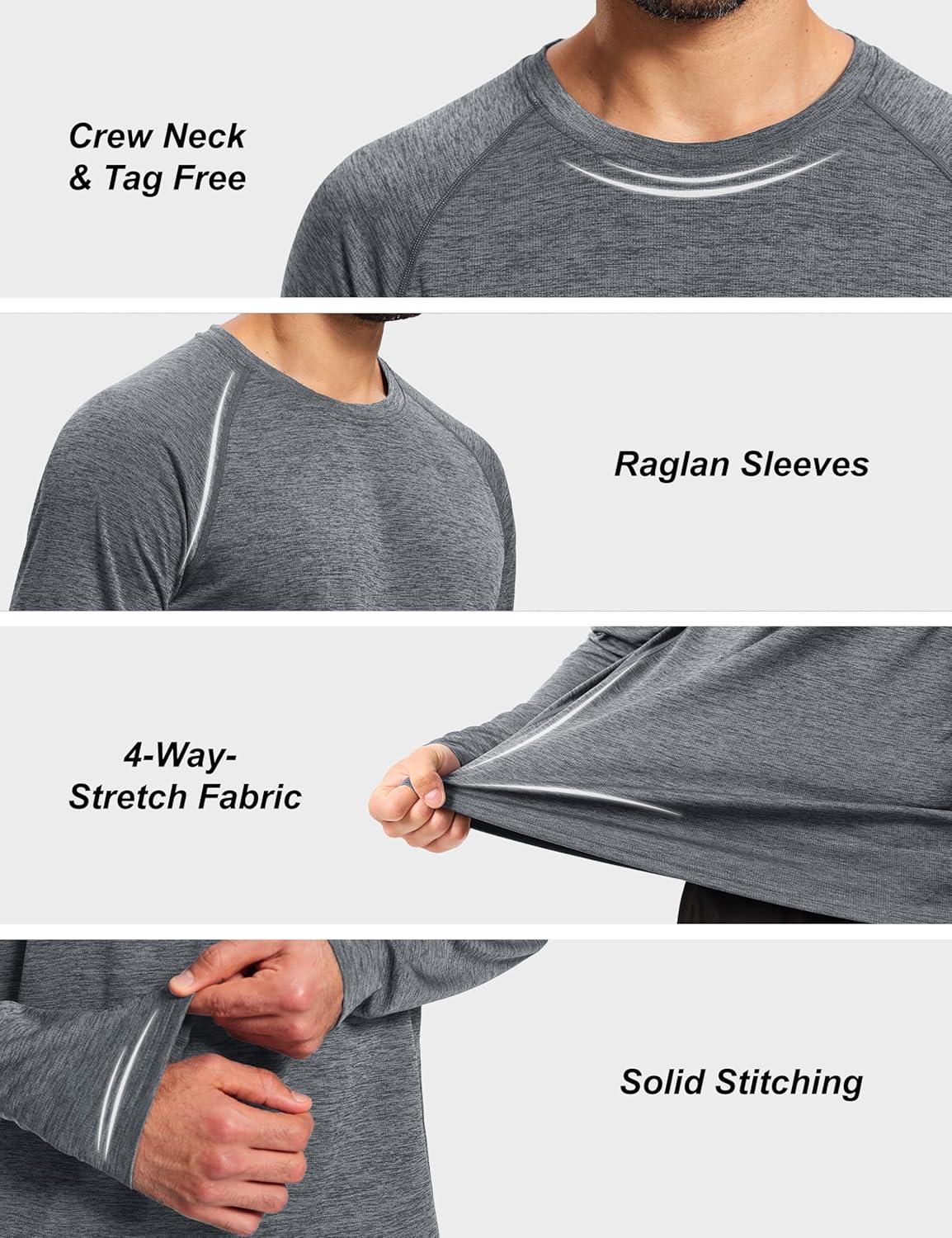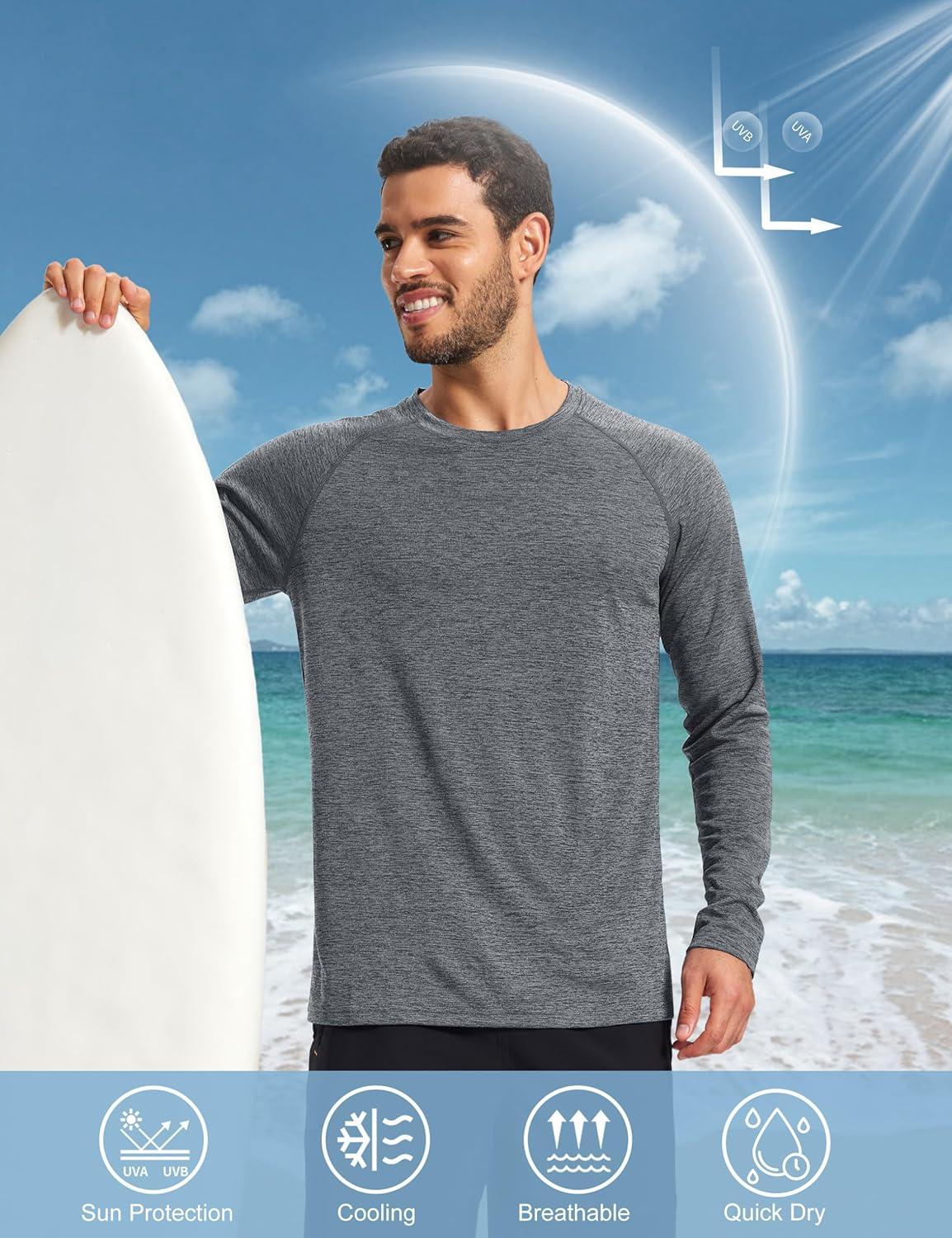 MAGCOMSEN Men’s Long Sleeve Shirts UPF 50+ Sun Protection Dry Fit Shirts Athletic Fishing Hiking Workout Rash Guard(Dark Grey)