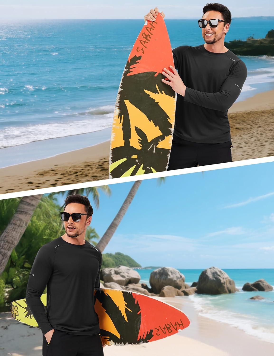 MAGCOMSEN Men’s Long Sleeve Shirts UPF 50+ Sun Protection UV Shirt Dry Fit T-Shirts for Hiking Running Athletic(Black)