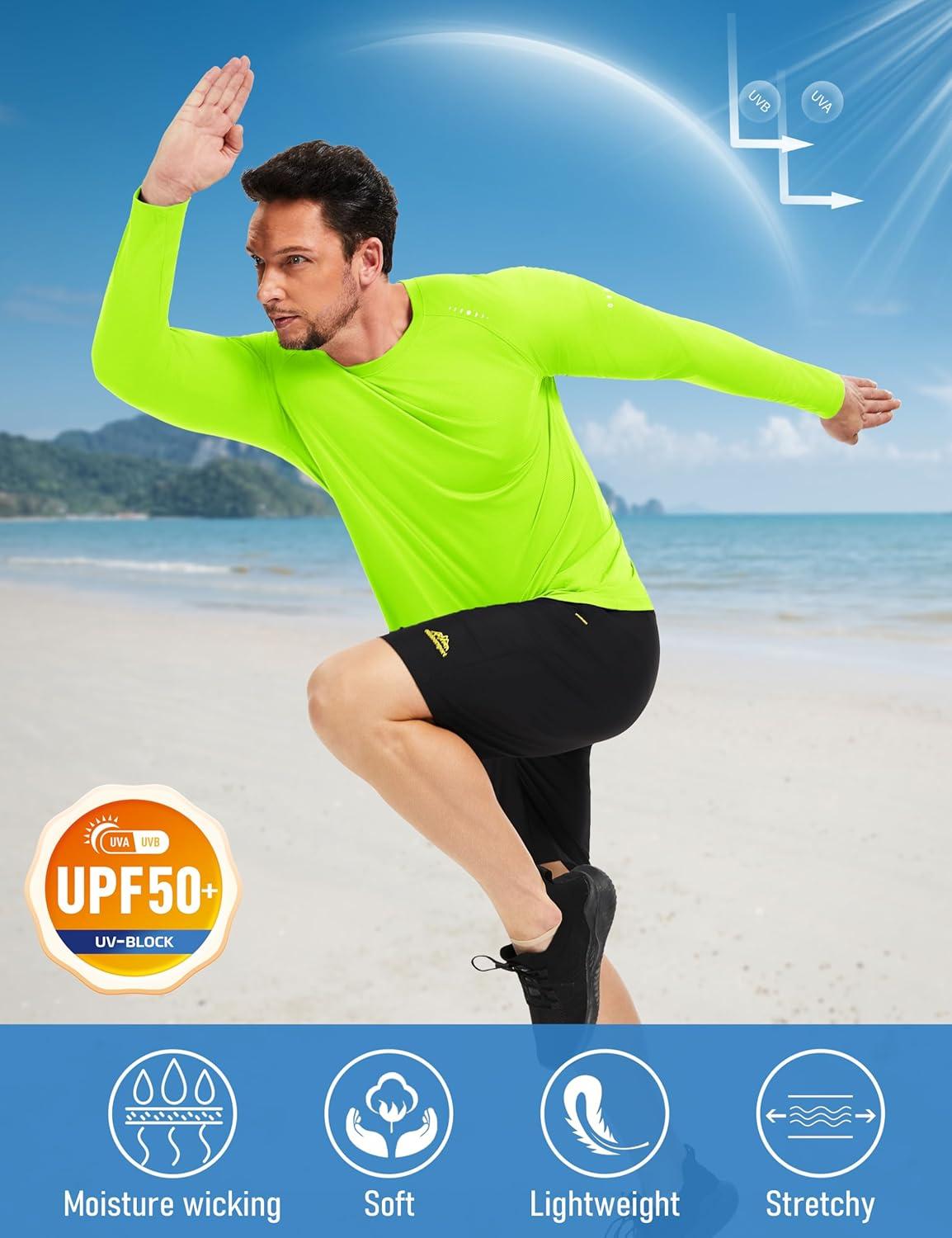 MAGCOMSEN Men’s Long Sleeve Shirts UPF 50+ Sun Protection UV Shirt Dry Fit T-Shirts for Hiking Running Athletic(Flgreen)