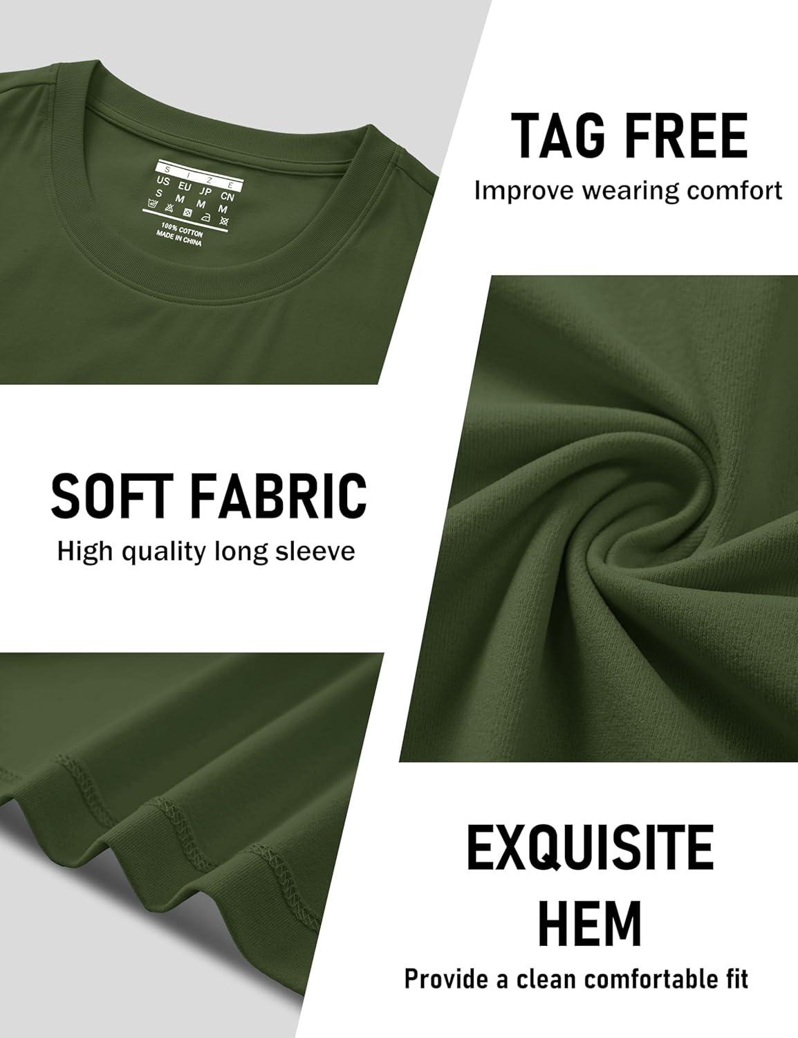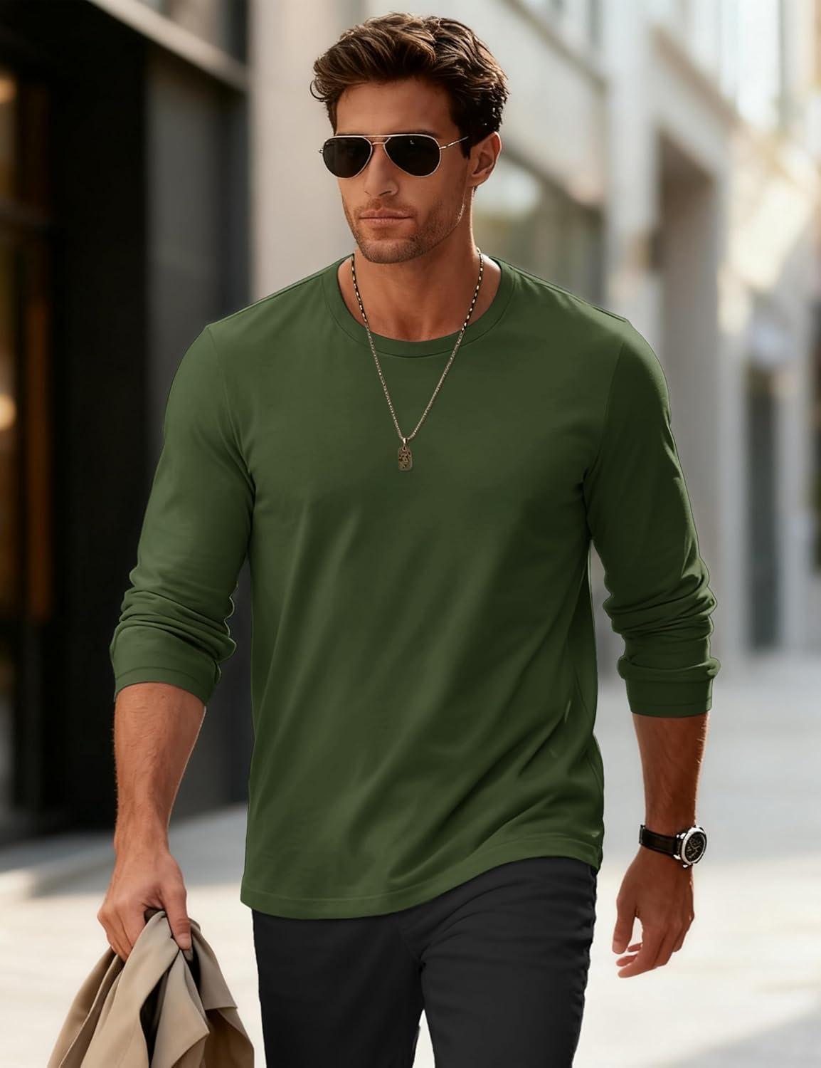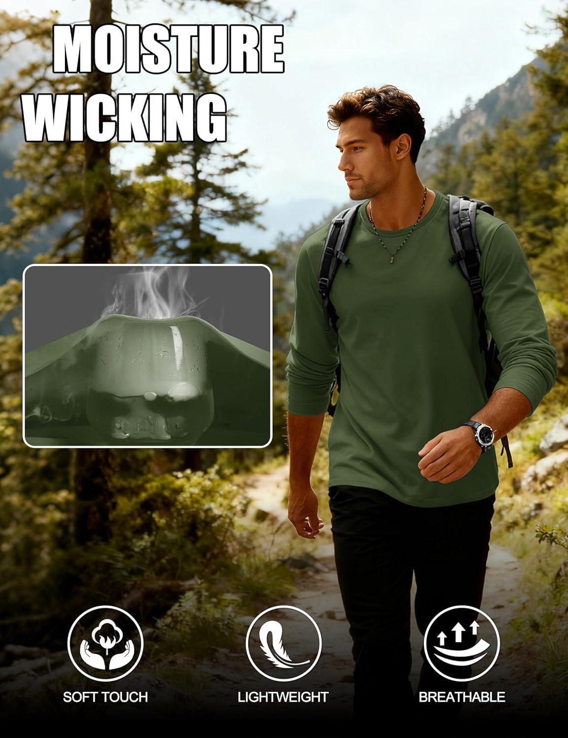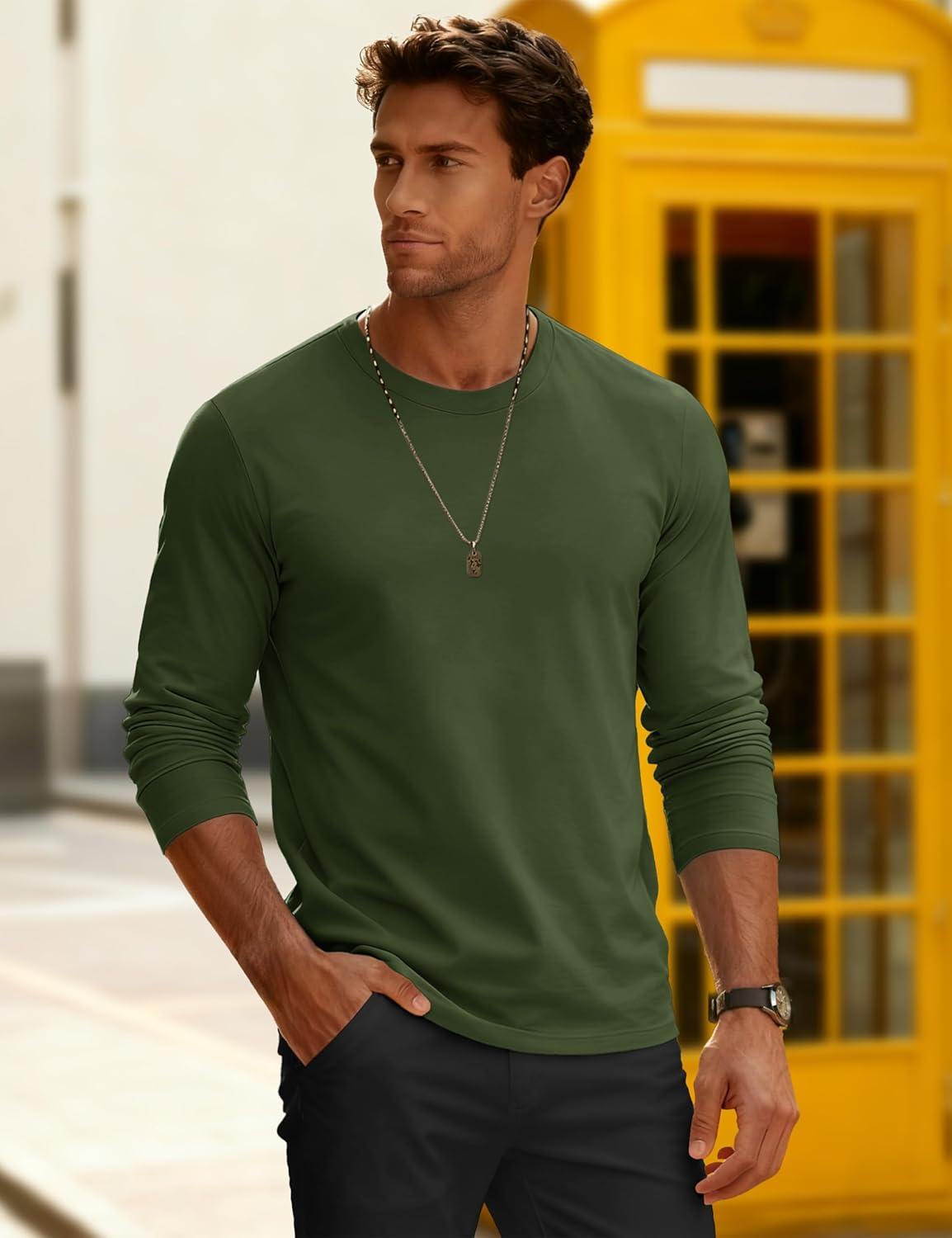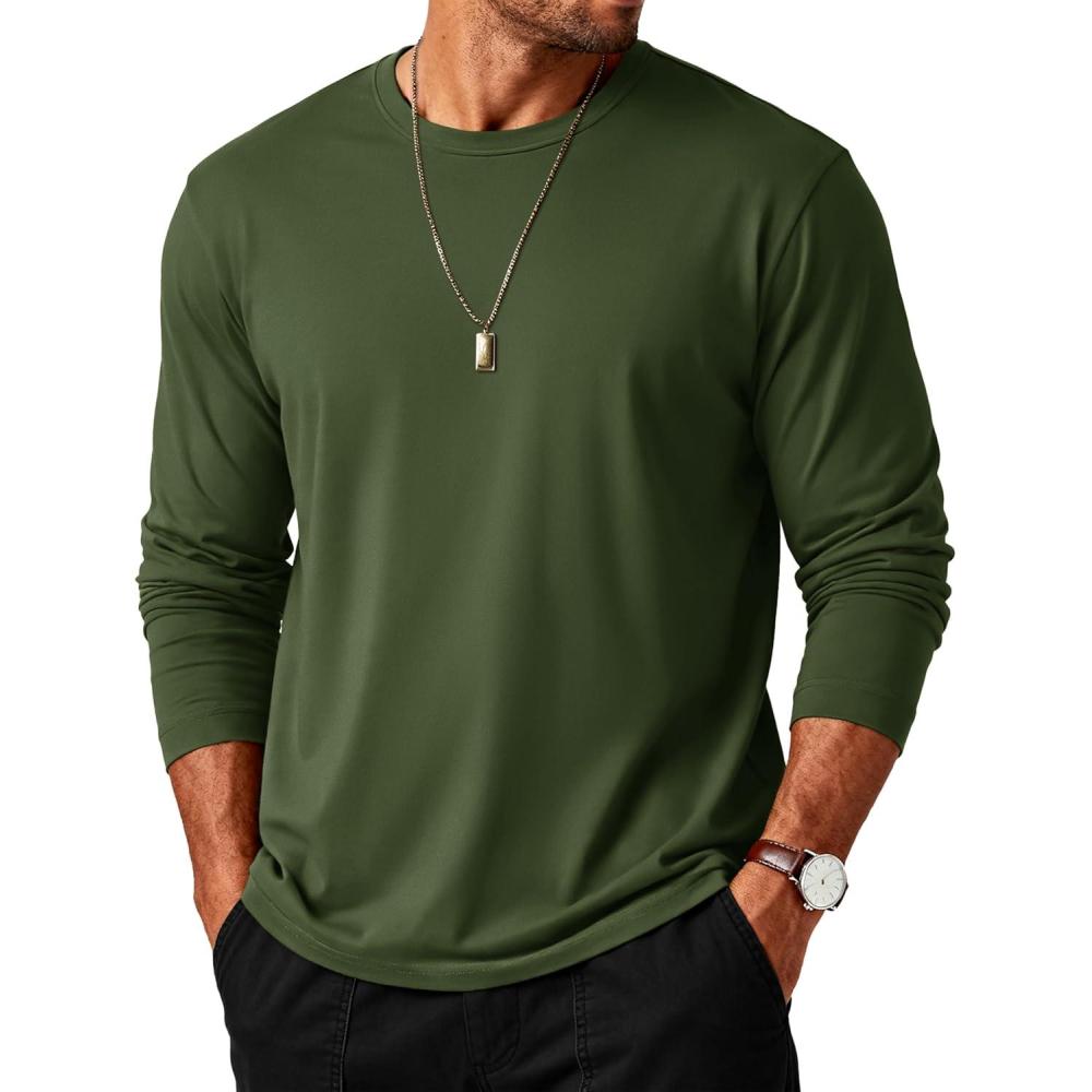MAGCOMSEN Mens Long Sleeve Tee Shirts Lightweight Moisture Wicking Casual Comfort Crewneck Plain Long Sleeve Shirts(Army Green)