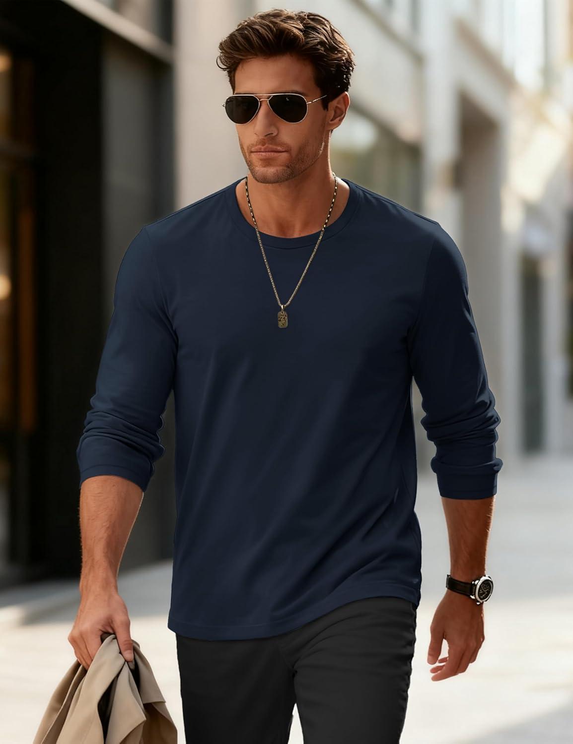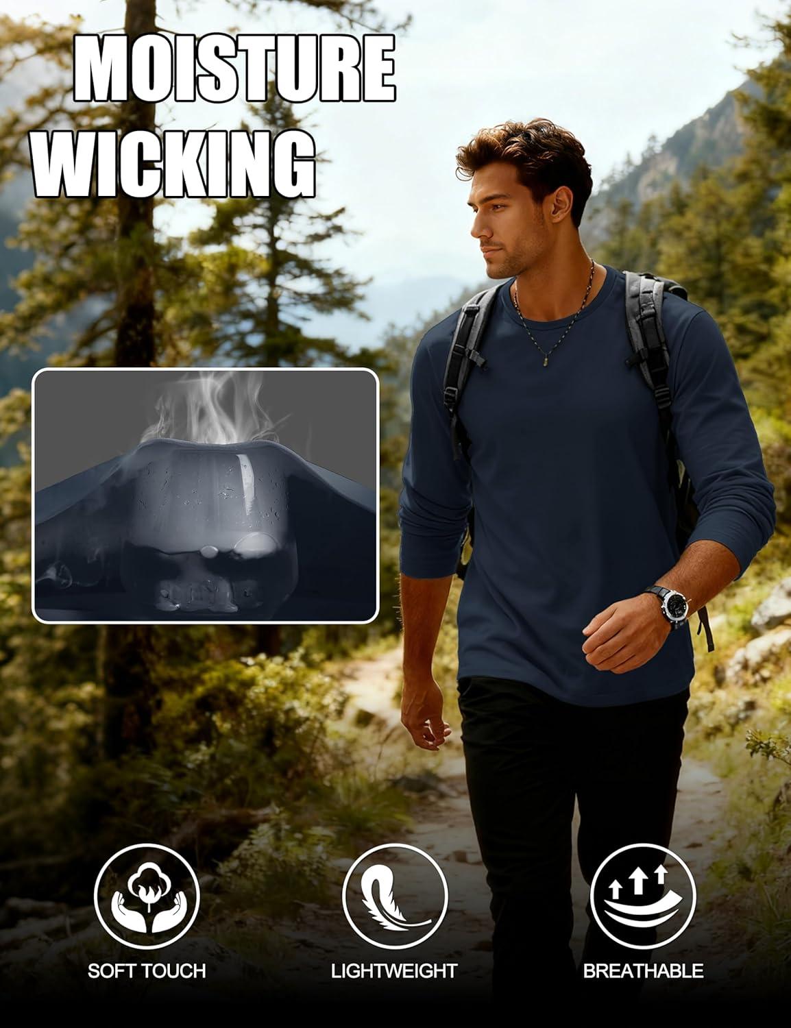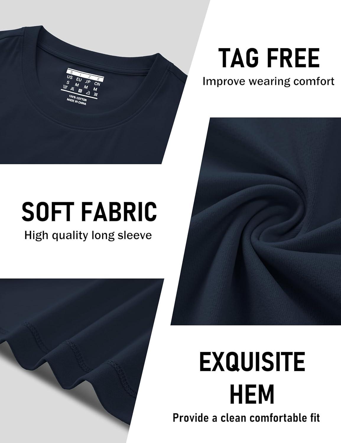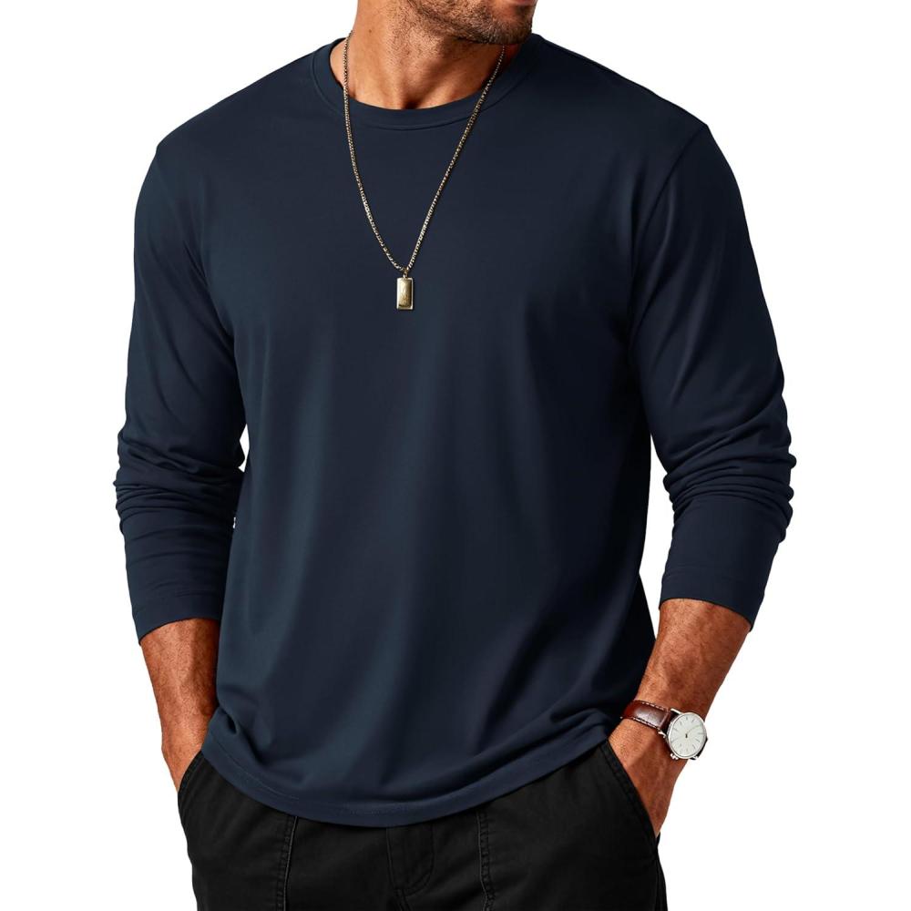 MAGCOMSEN Mens Long Sleeve Tee Shirts Lightweight Moisture Wicking Casual Comfort Crewneck Plain Long Sleeve Shirts(Navy Blue)