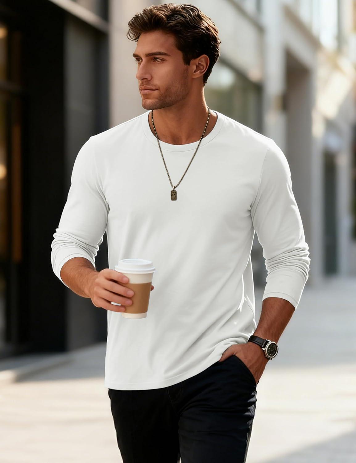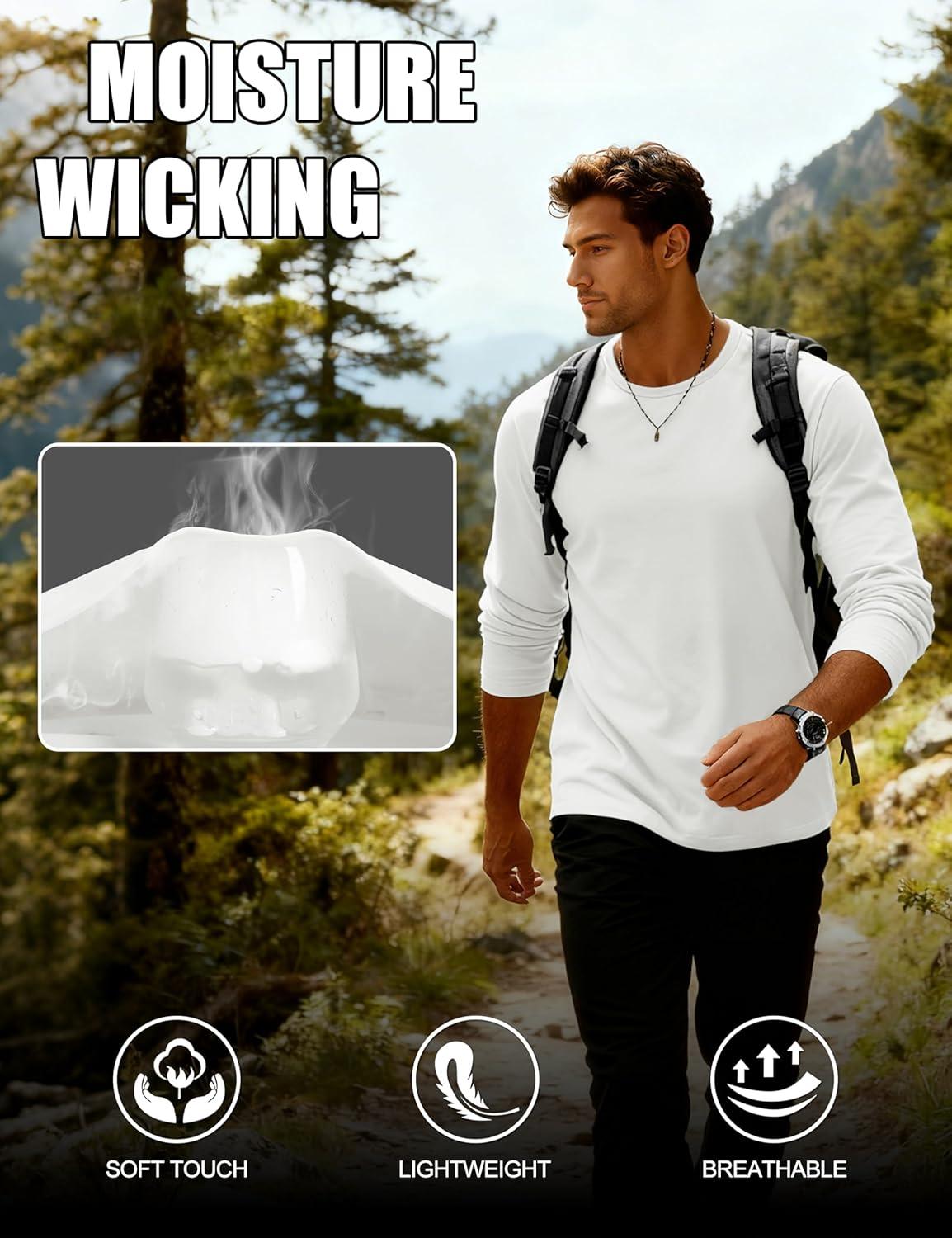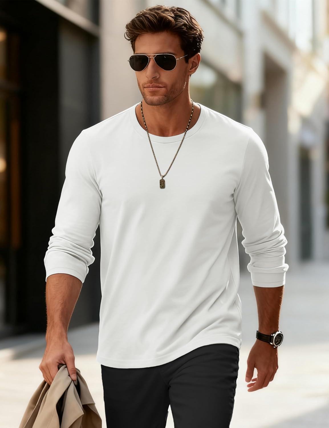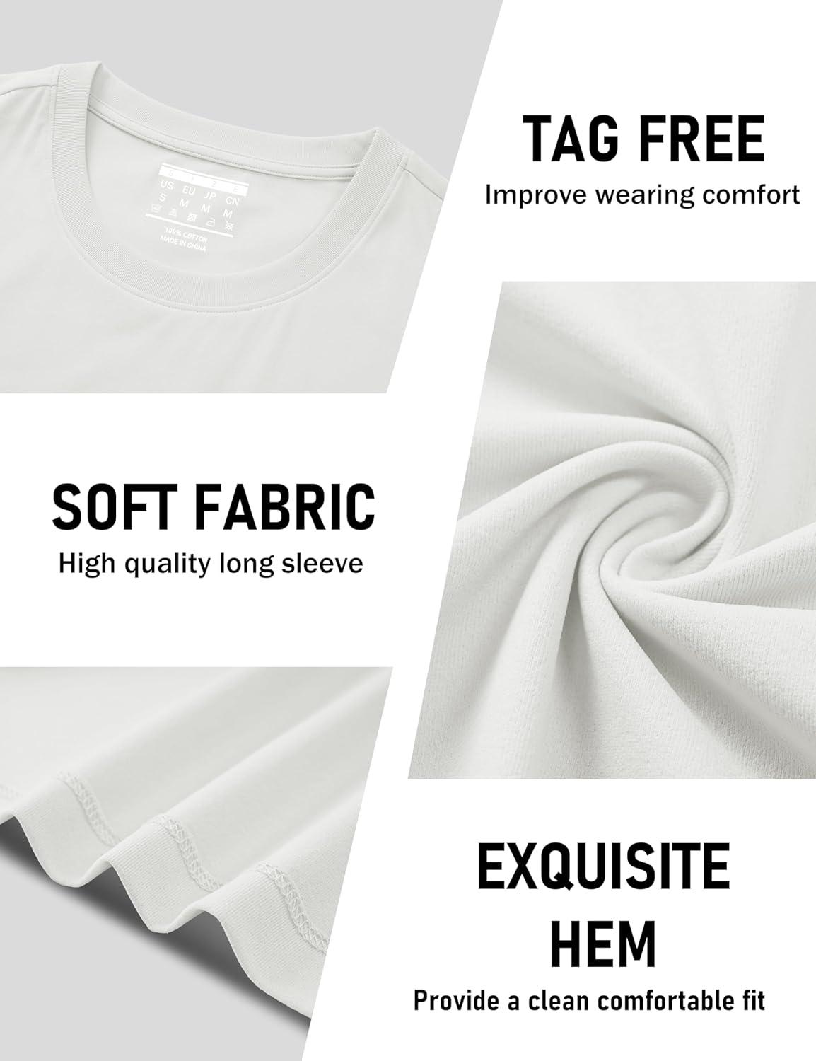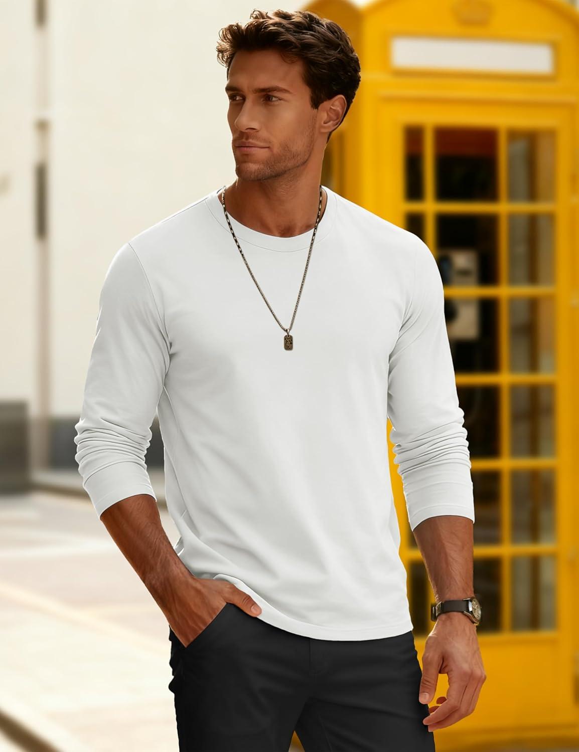 MAGCOMSEN Mens Long Sleeve Tee Shirts Lightweight Moisture Wicking Casual Comfort Crewneck Plain Long Sleeve Shirts(White)