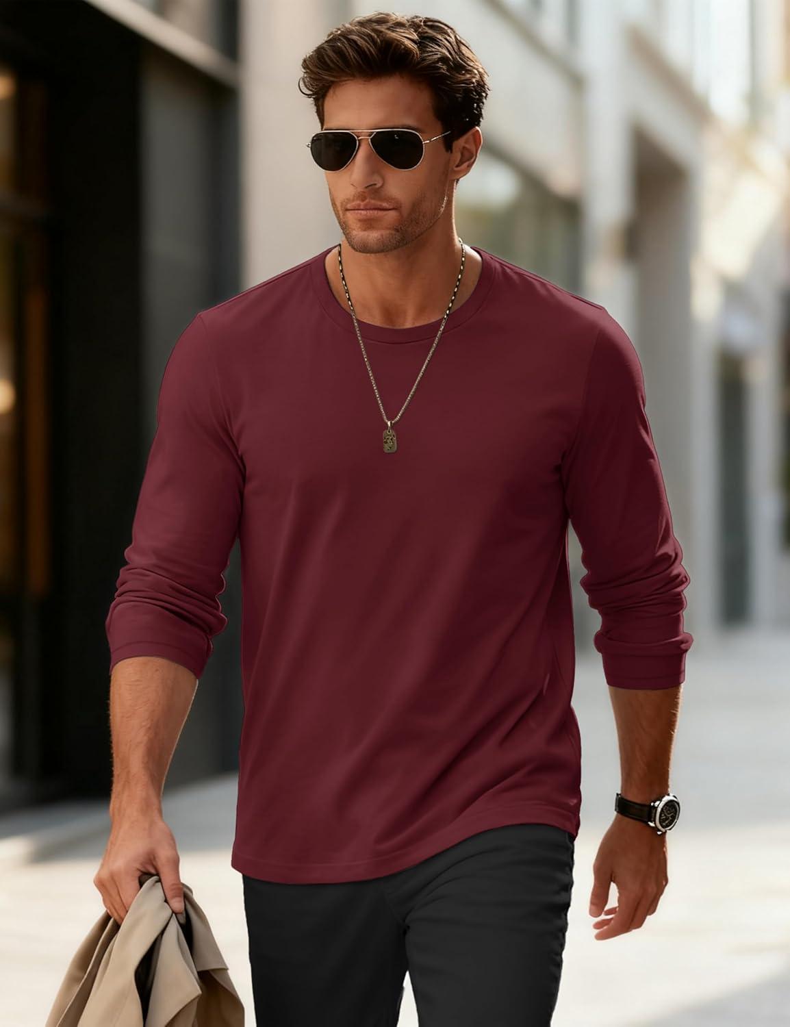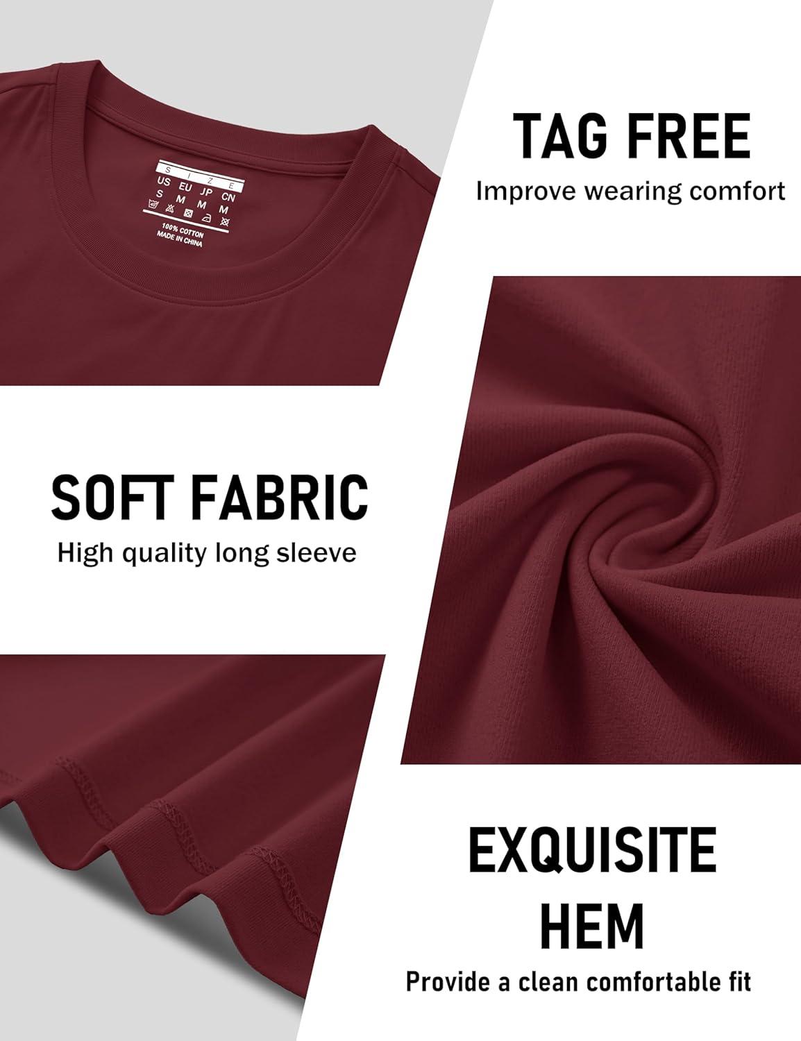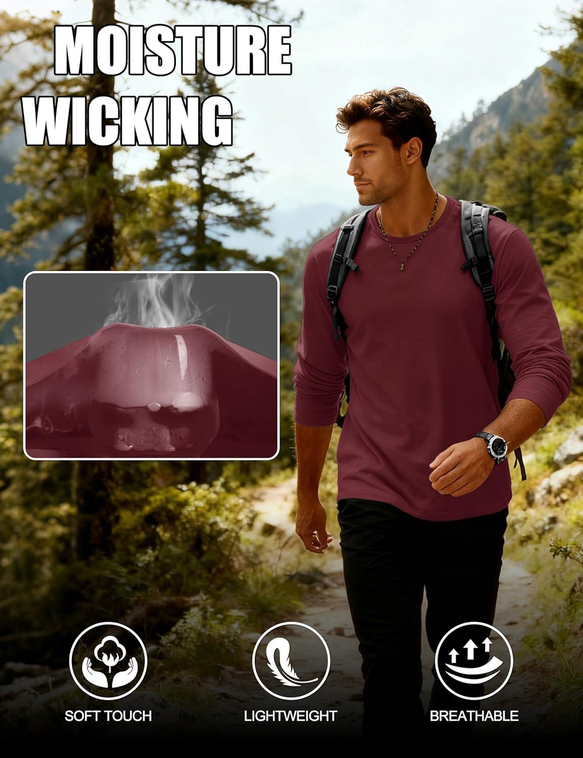 MAGCOMSEN Mens Long Sleeve Tee Shirts Lightweight Moisture Wicking Casual Comfort Crewneck Plain Long Sleeve Shirts(Winered)