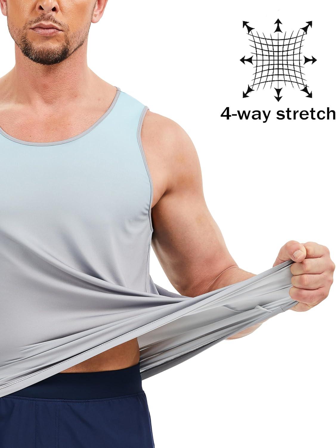 MAGCOMSEN Men’s Muscle Tank Tops UPF80+ Workout Tank Sleeveless Quick Dry Bodybuilding Shirts(Grey Blue)