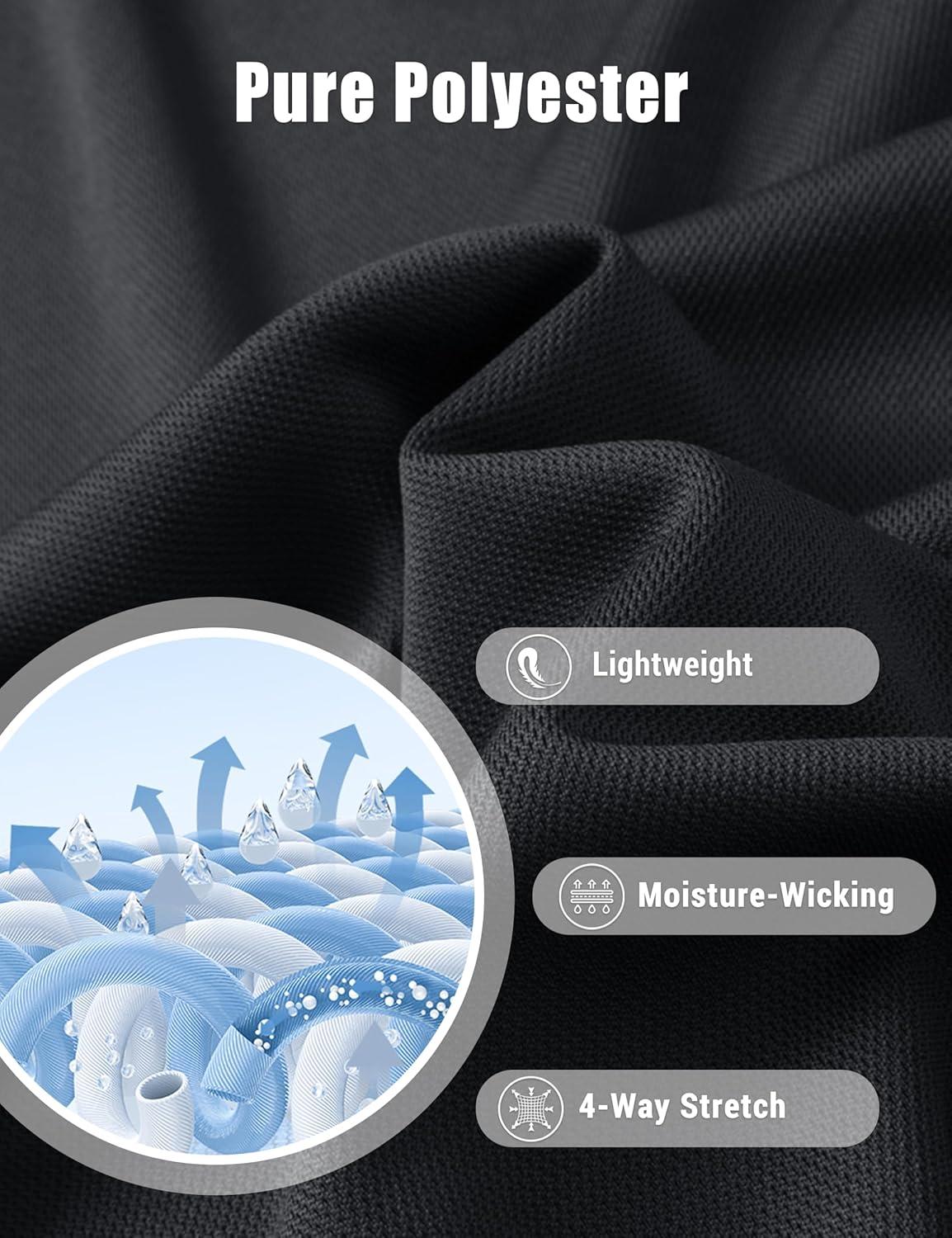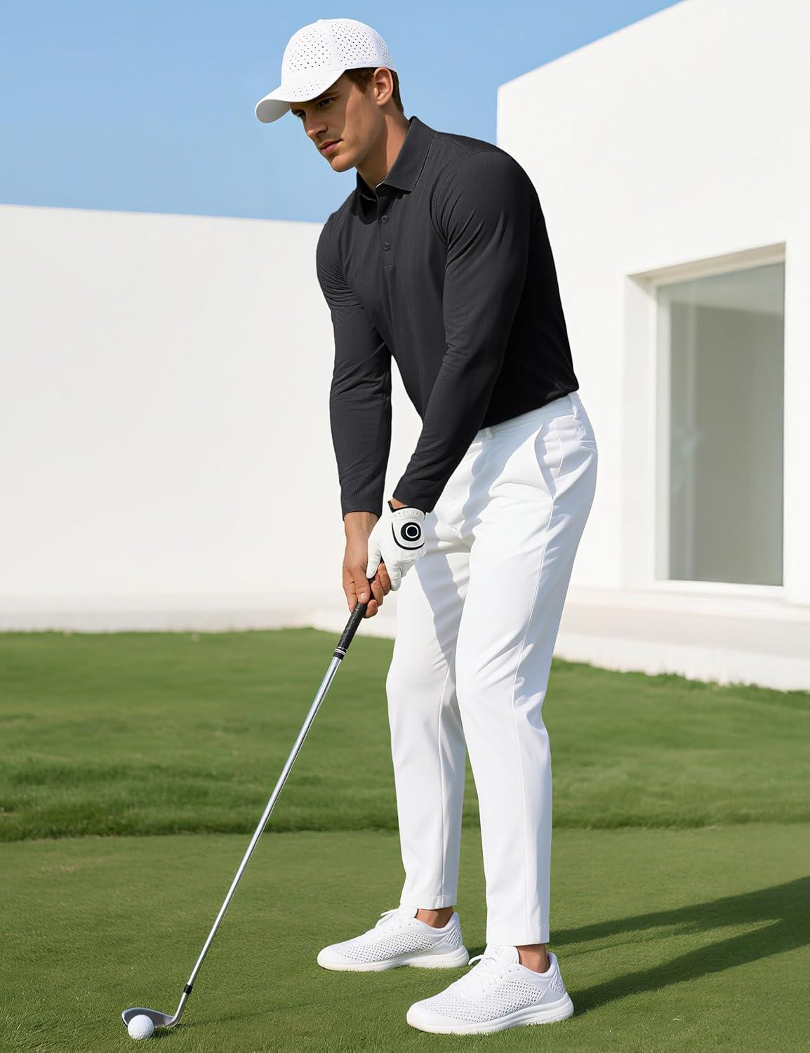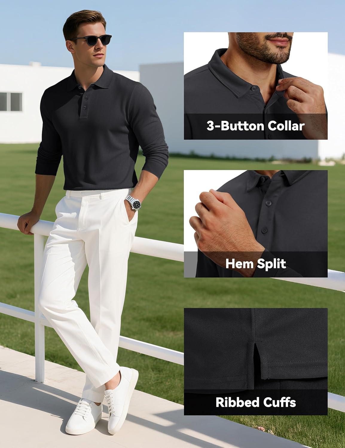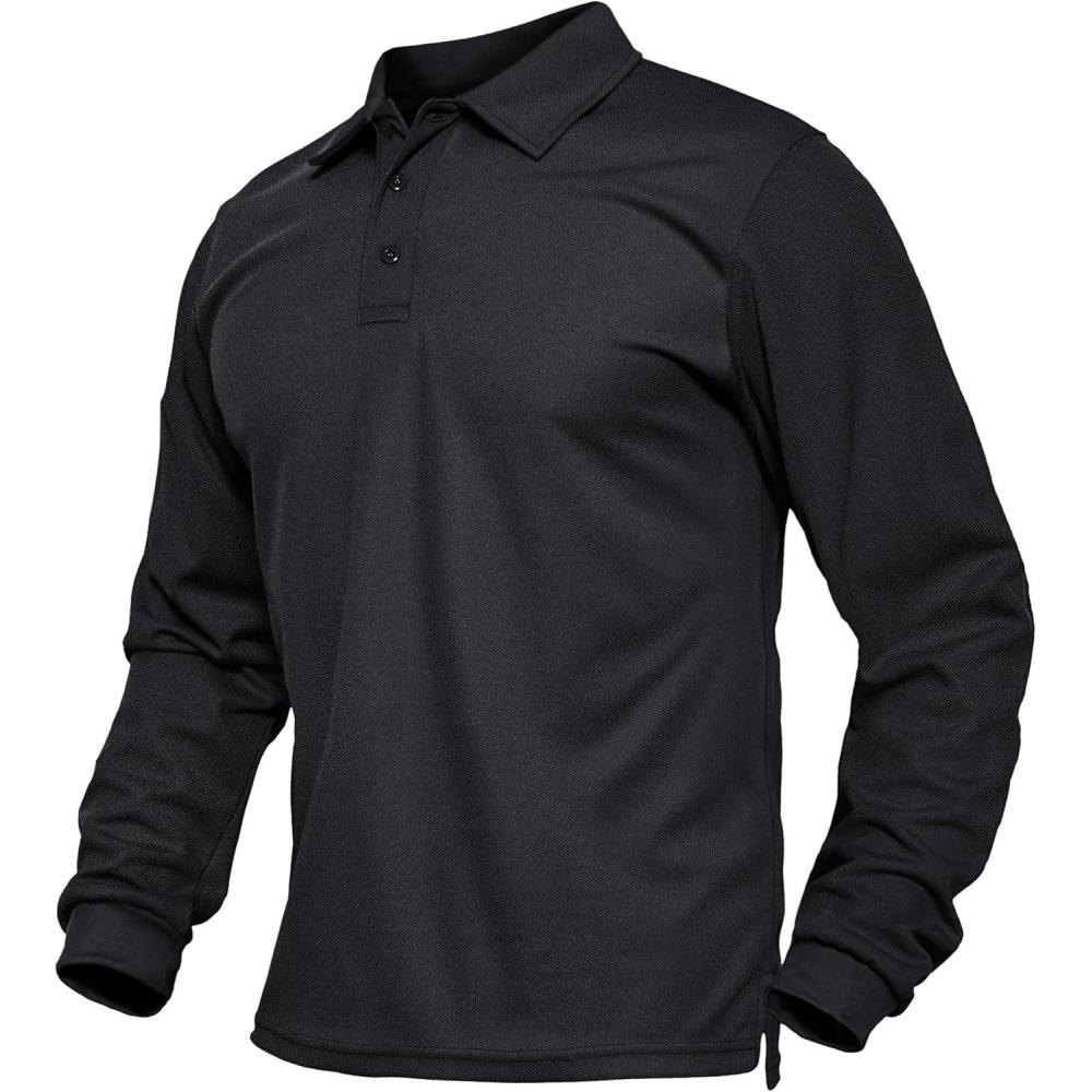 MAGCOMSEN Men’s Polo Shirts Long Sleeve Collared Moisture Wicking Performance Golf Athletic Casual Work(Black)