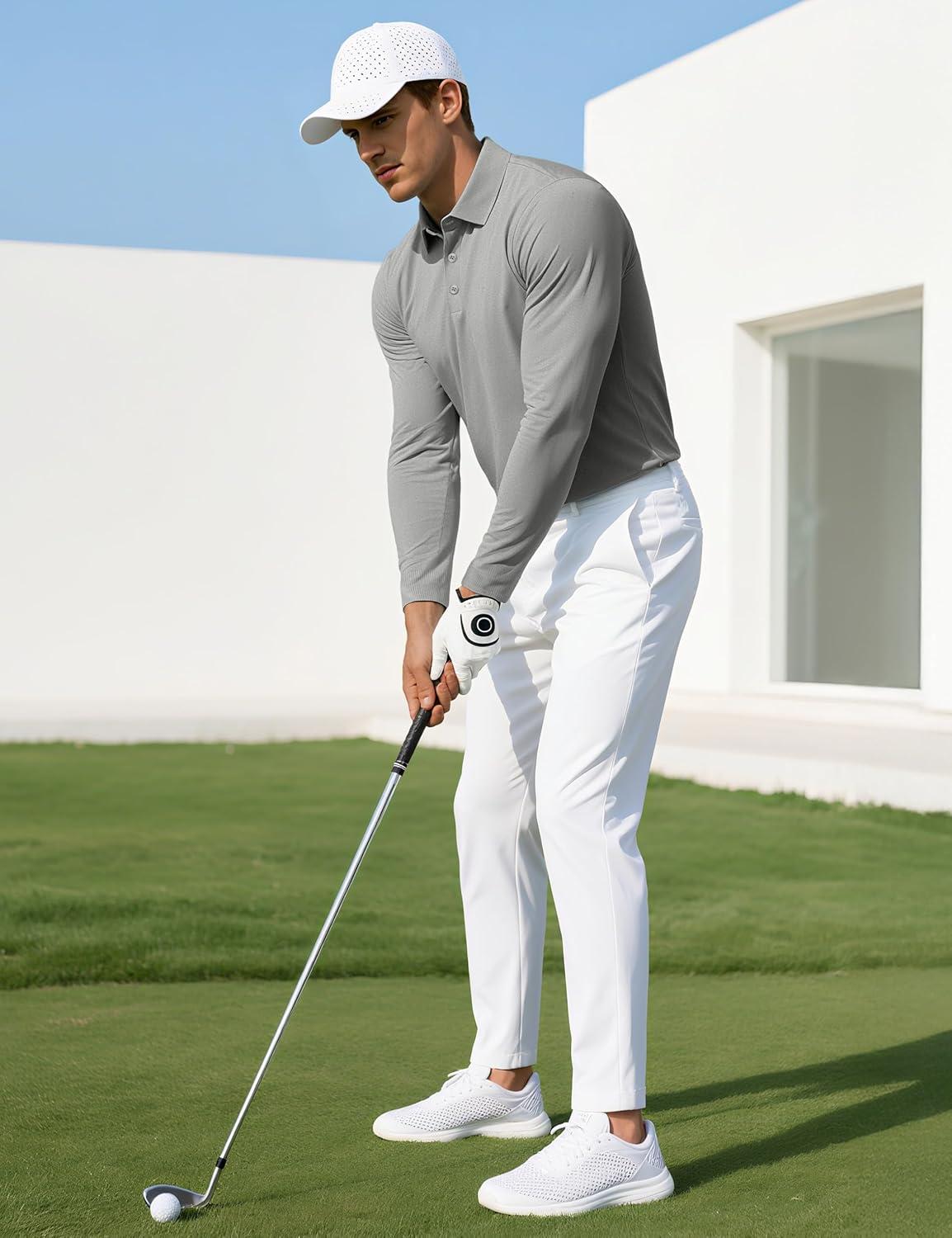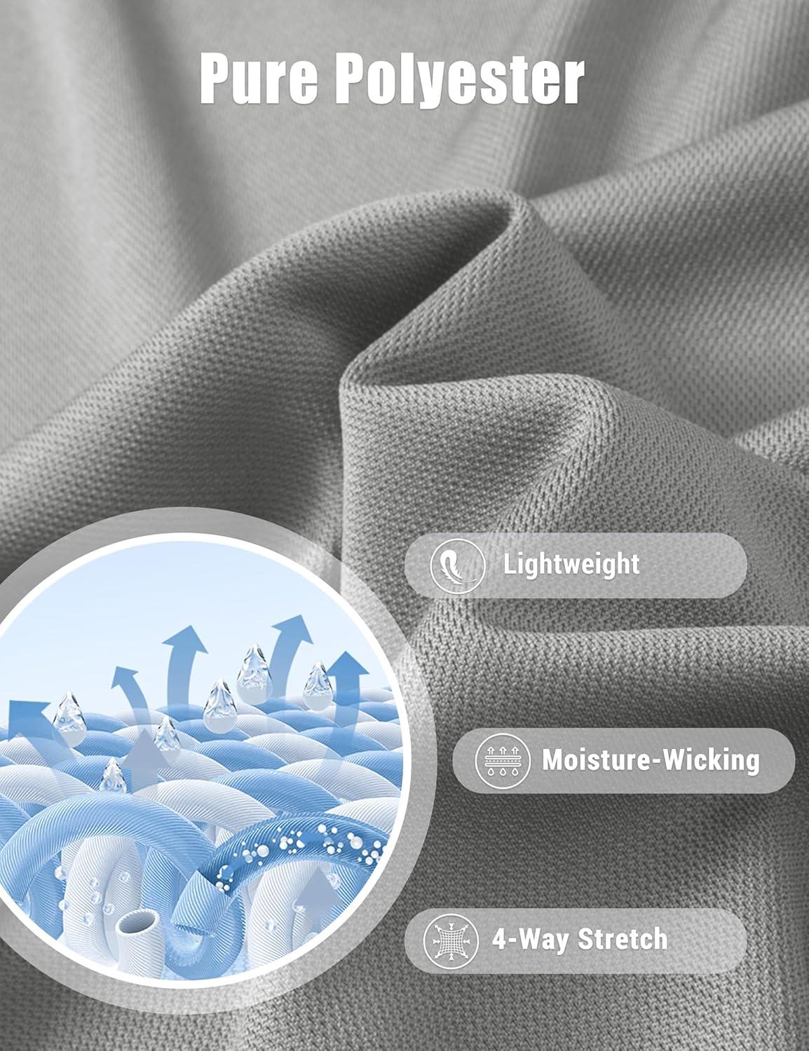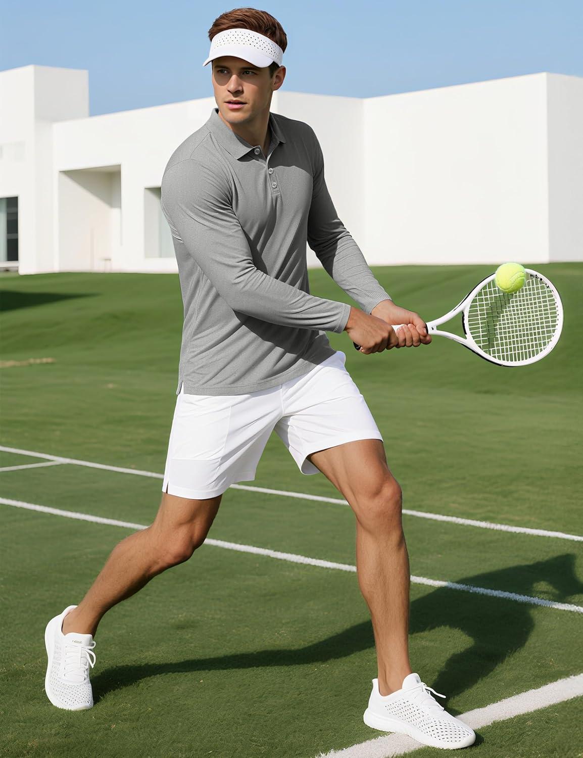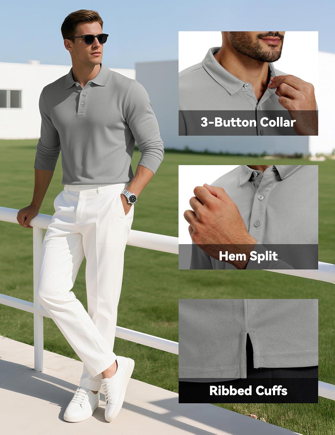 MAGCOMSEN Men’s Polo Shirts Long Sleeve Collared Moisture Wicking Performance Golf Athletic Casual Work(Lightgrey)