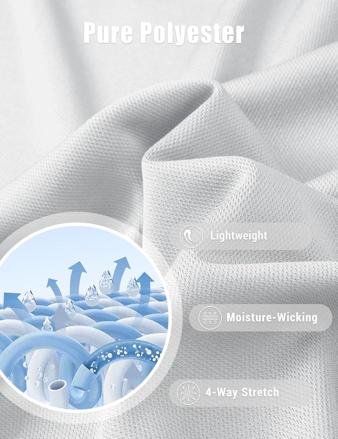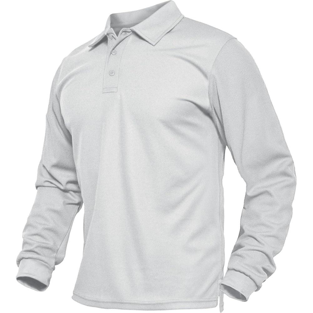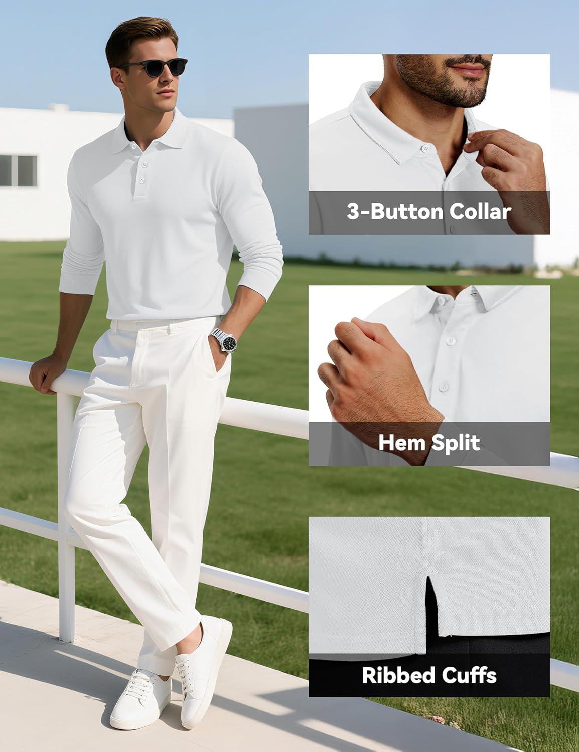 MAGCOMSEN Men’s Polo Shirts Long Sleeve Collared Moisture Wicking Performance Golf Athletic Casual Work(White)