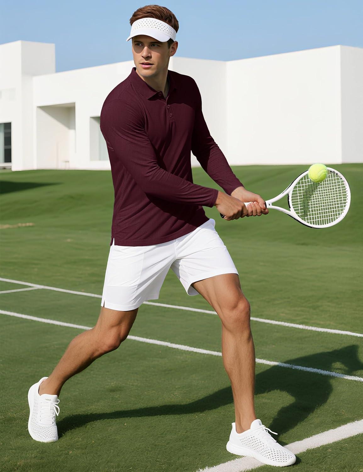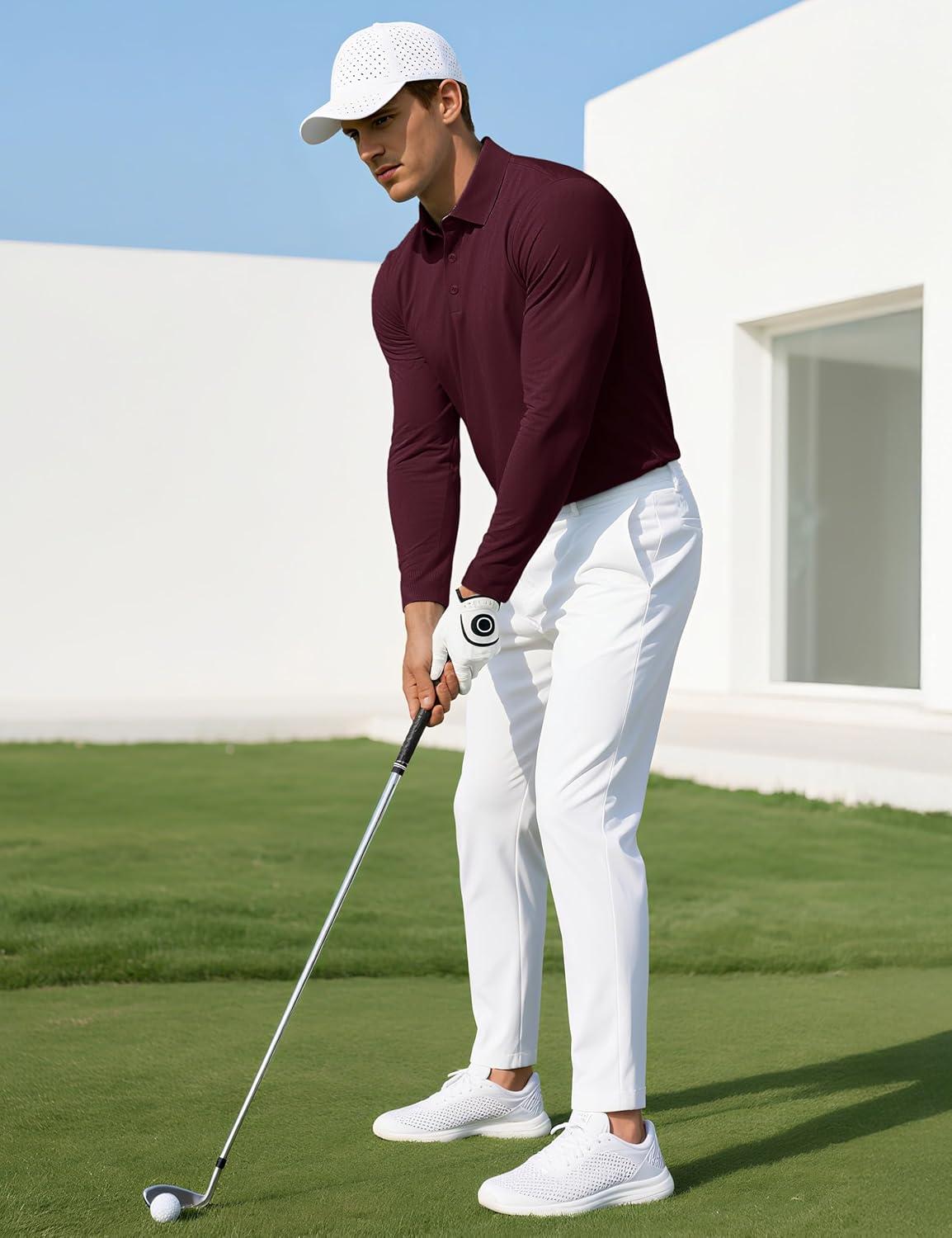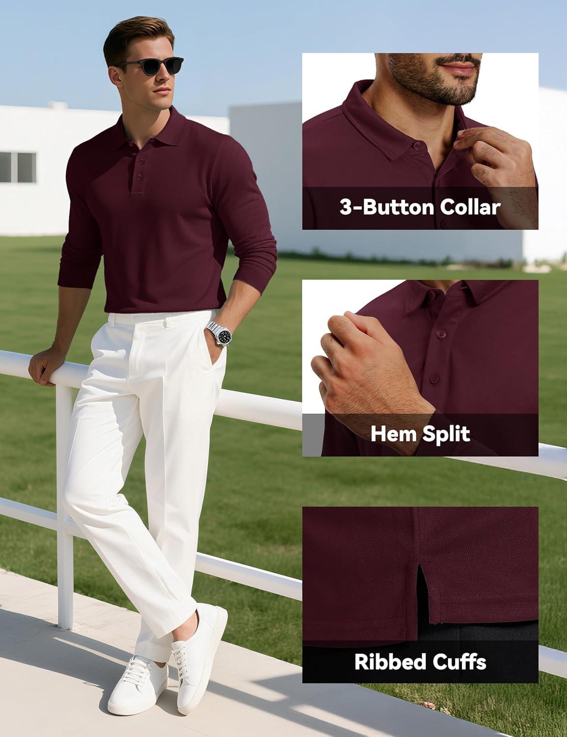 MAGCOMSEN Men’s Polo Shirts Long Sleeve Collared Moisture Wicking Performance Golf Athletic Casual Work(Winered)