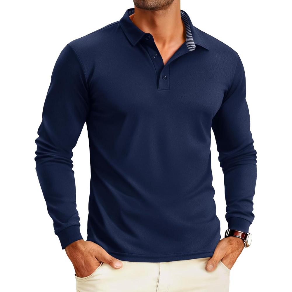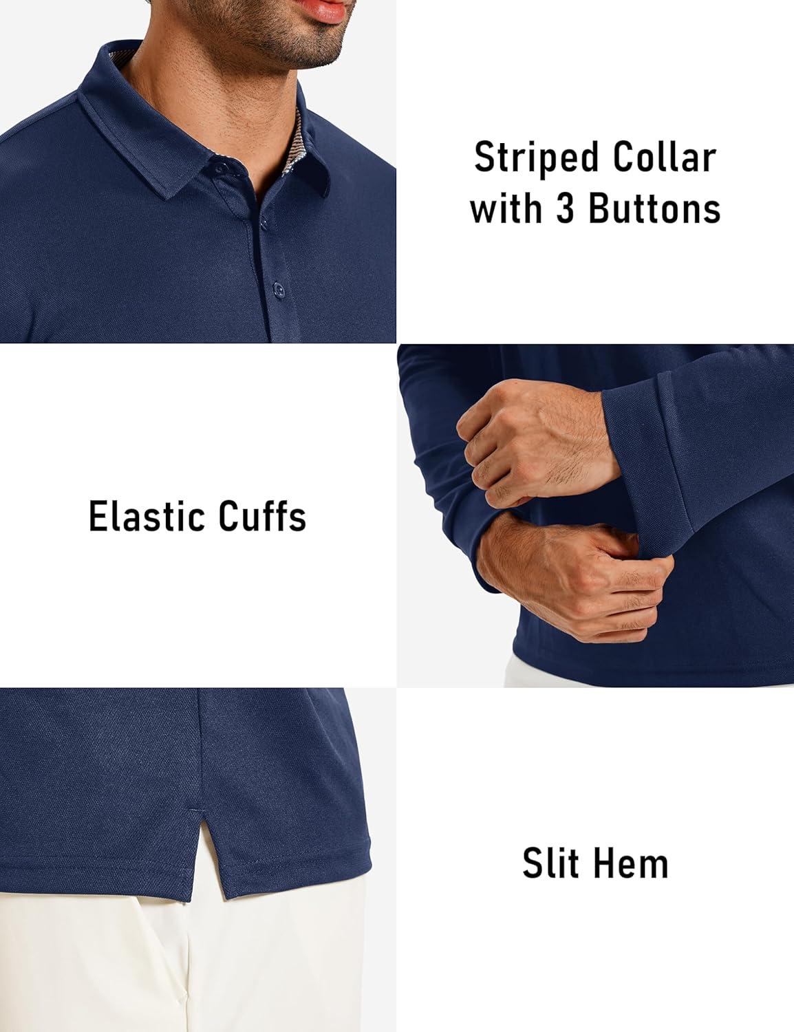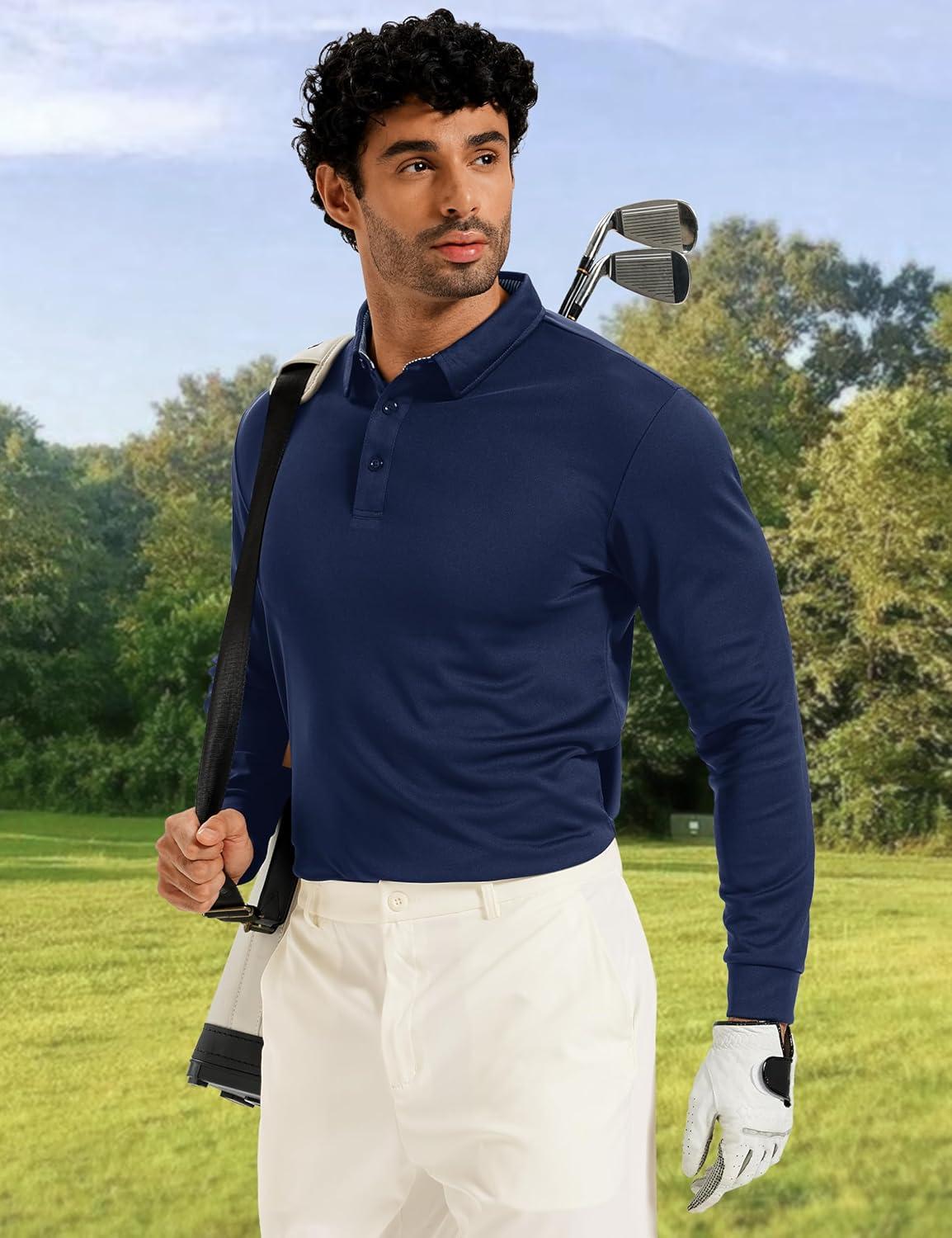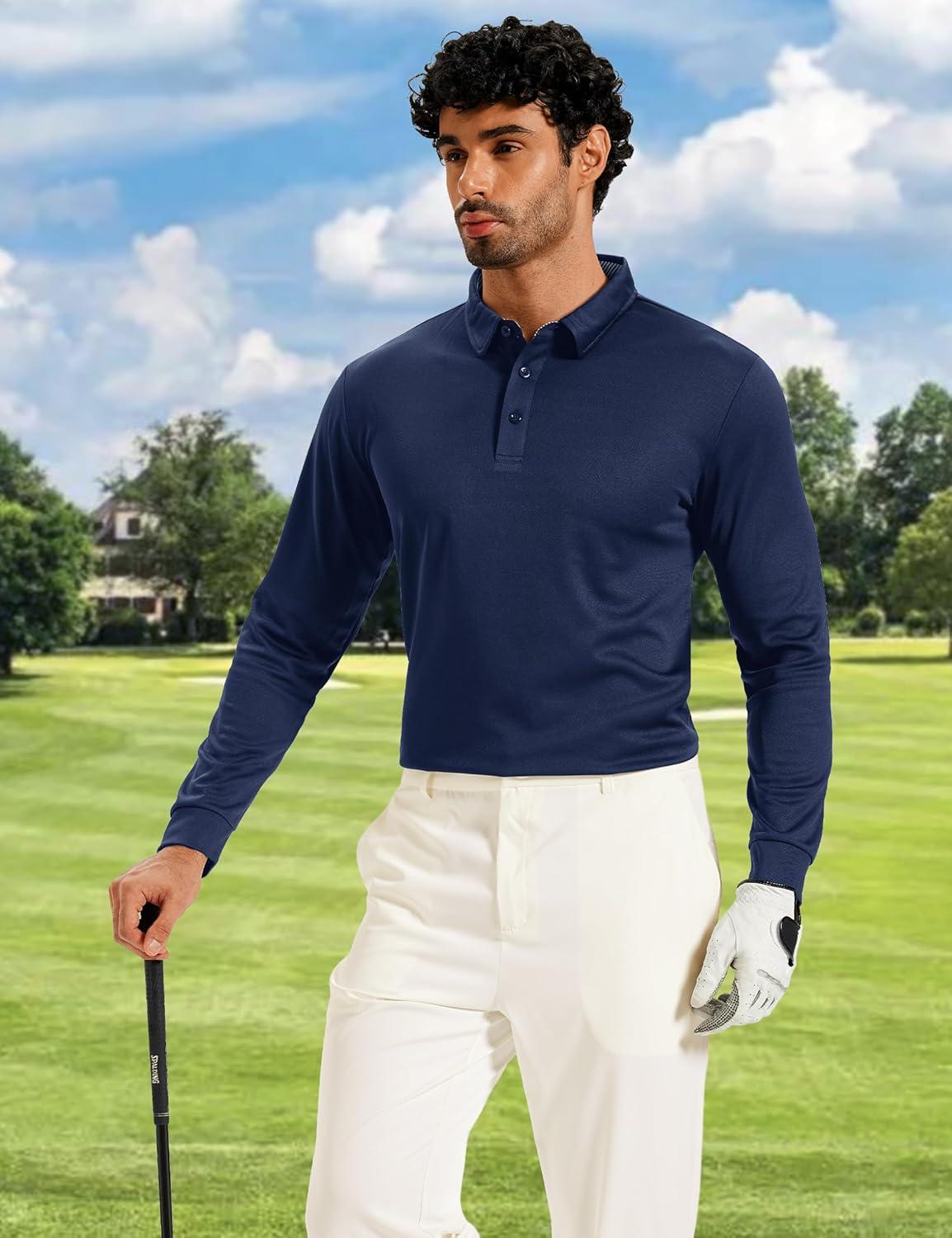 AGCOMSEN Men's Polo Shirts Long Sleeve Performance Golf Shirt Dry Fit Moisture Wicking Collared Tennis Shirts