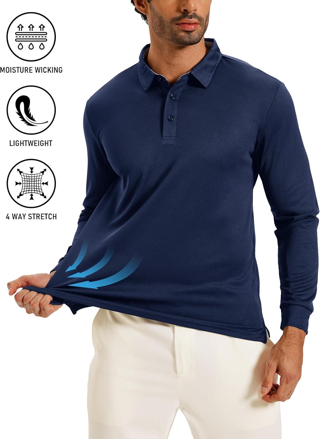 MAGCOMSEN Men’s Polo Shirts Long Sleeve Golf Shirt Performance Quick Dry Moisture Wicking Casual Collared Shirts(Navy)