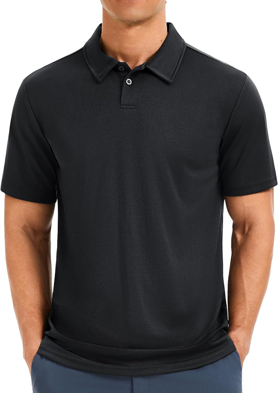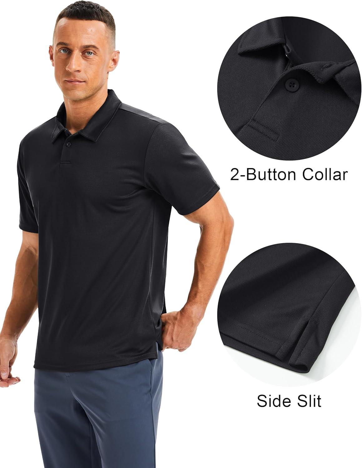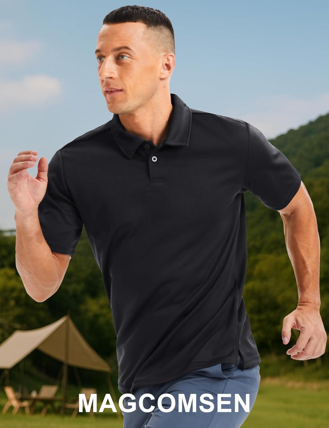 MAGCOMSEN Men’s Polo Shirts Short Sleeve Collared Performance Dry Fit Breathable Golf Athletic Casual(Black)
